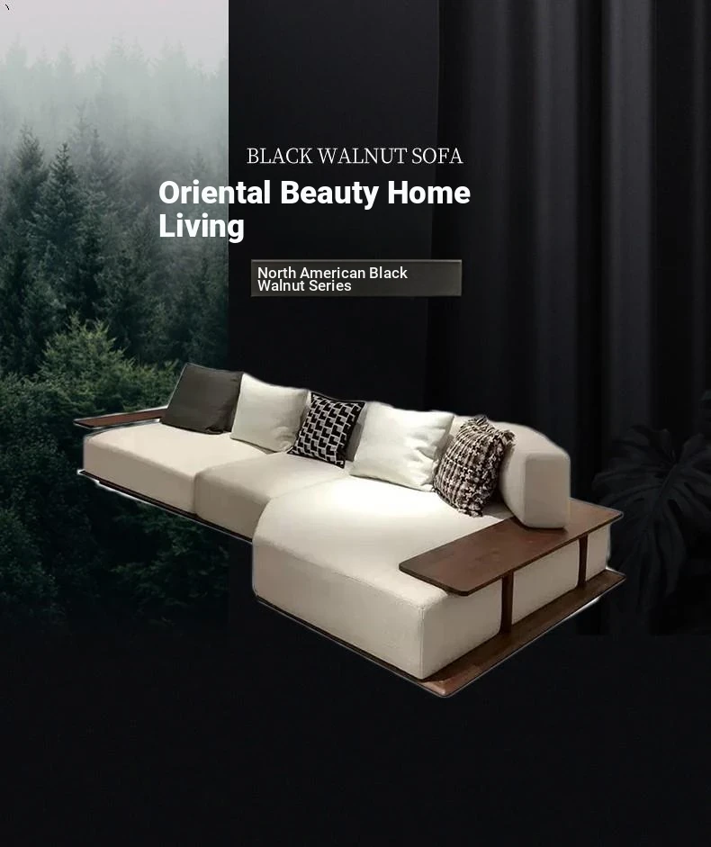 New Chinese Style North American Black Walnut Sofa - Aesthetic Song Dynasty Design with Italian Minimalism for Zen-Inspired Office - Solid Wood and Fabric Furniture