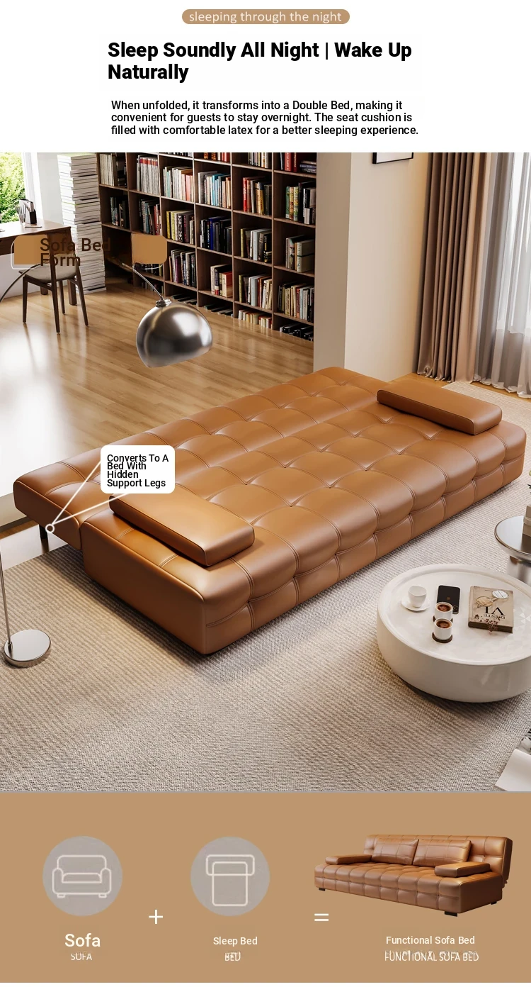 New Lawrence Convertible Sofa Bed - Stylish and Space-Saving Multifunctional Sofa for Small Living Rooms - Perfect for Guests and Everyday Use - Luxurious Design in Beige