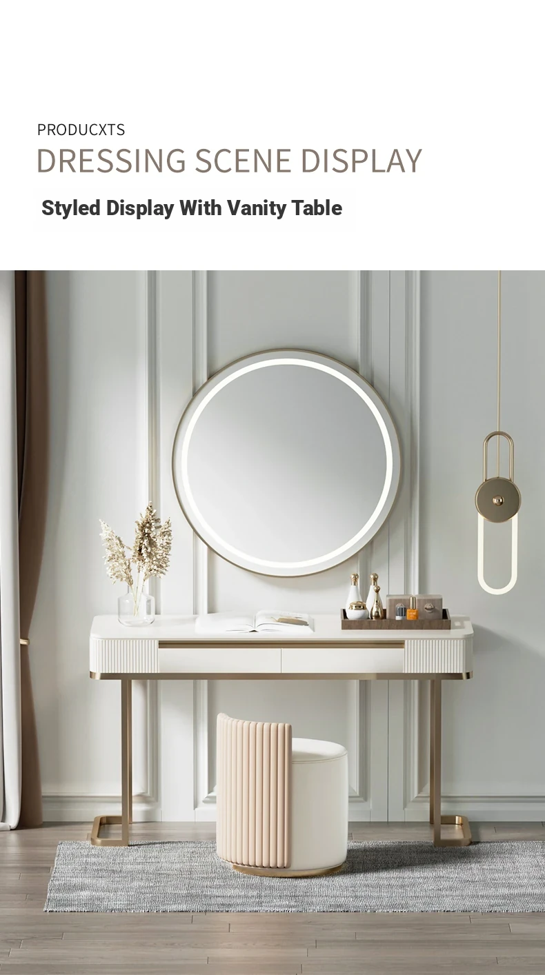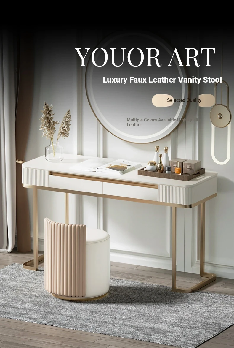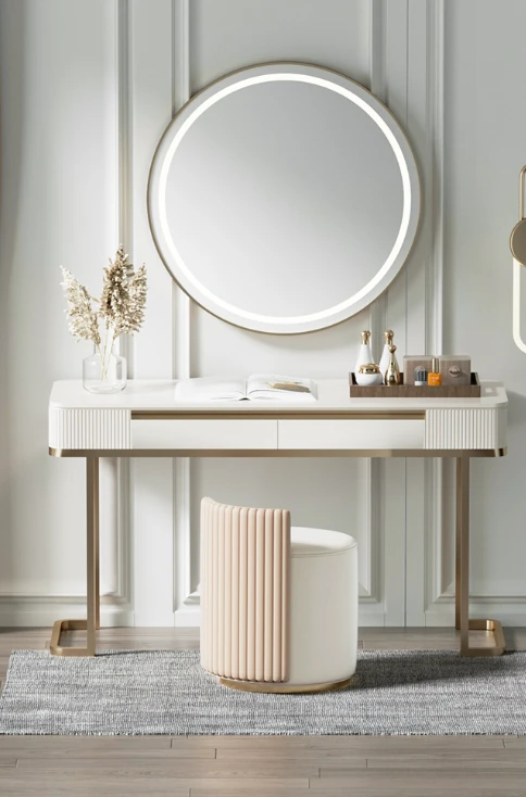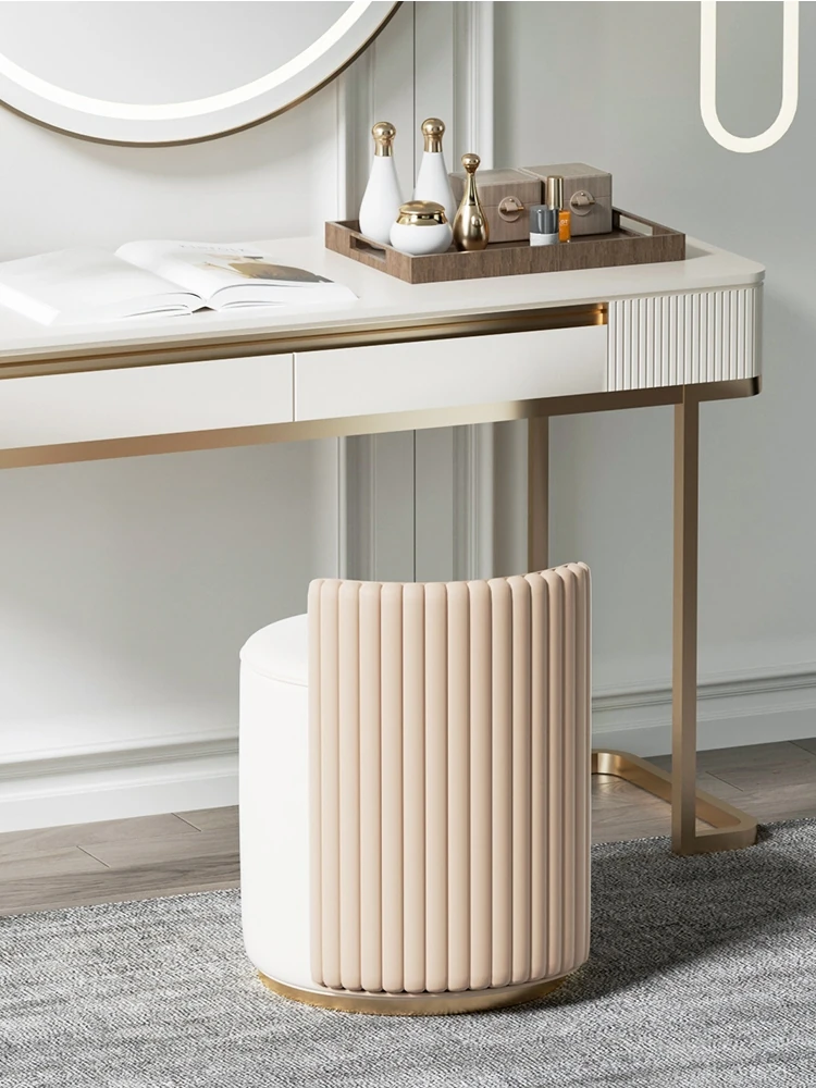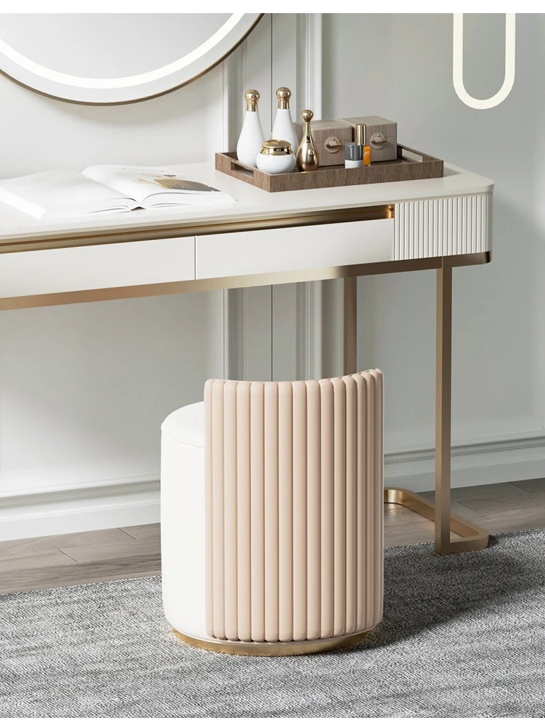 Stylish Nordic Makeup Vanity Set with Rotating Chair - Perfect for Small Spaces, Featuring a Chic and Comfortable Design for Your Bedroom. Ideal for Influencers and Home Use!