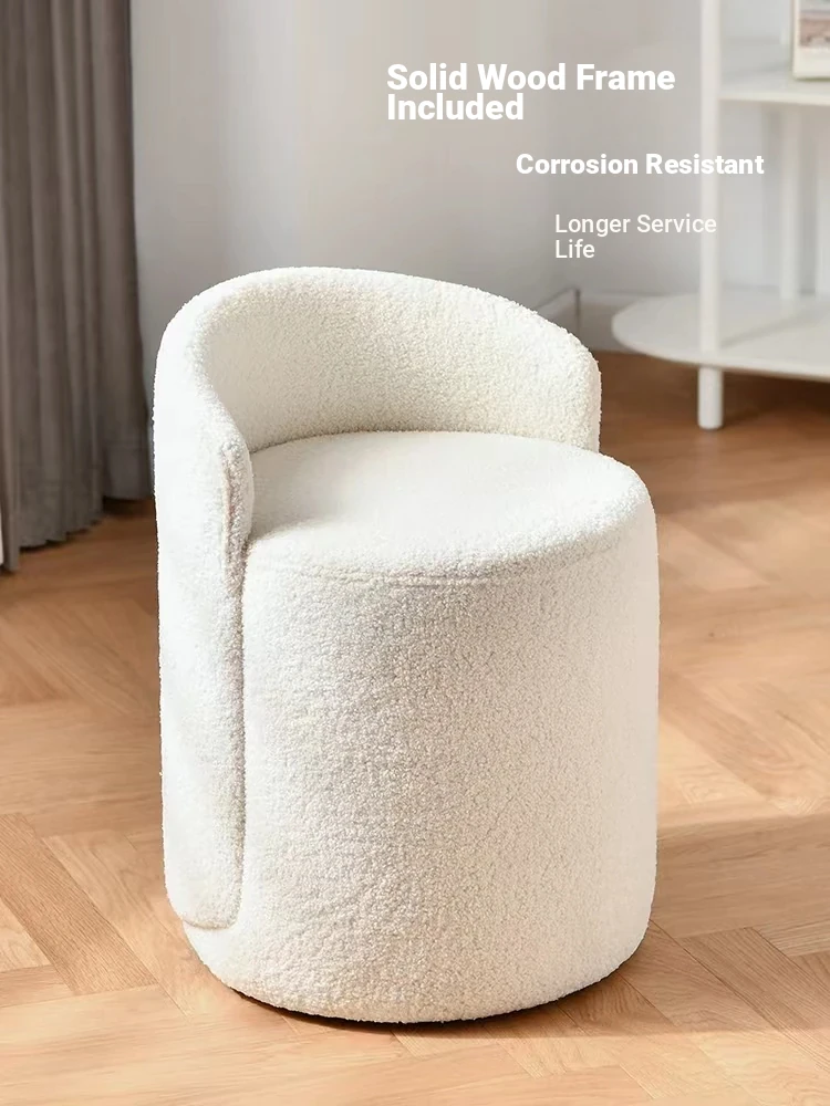 Creamy Rotating Vanity Stool - Luxurious Lamb Fleece Makeup Chair for Girls' Bedrooms, Perfect for Nail Art and Glamourous Touches!