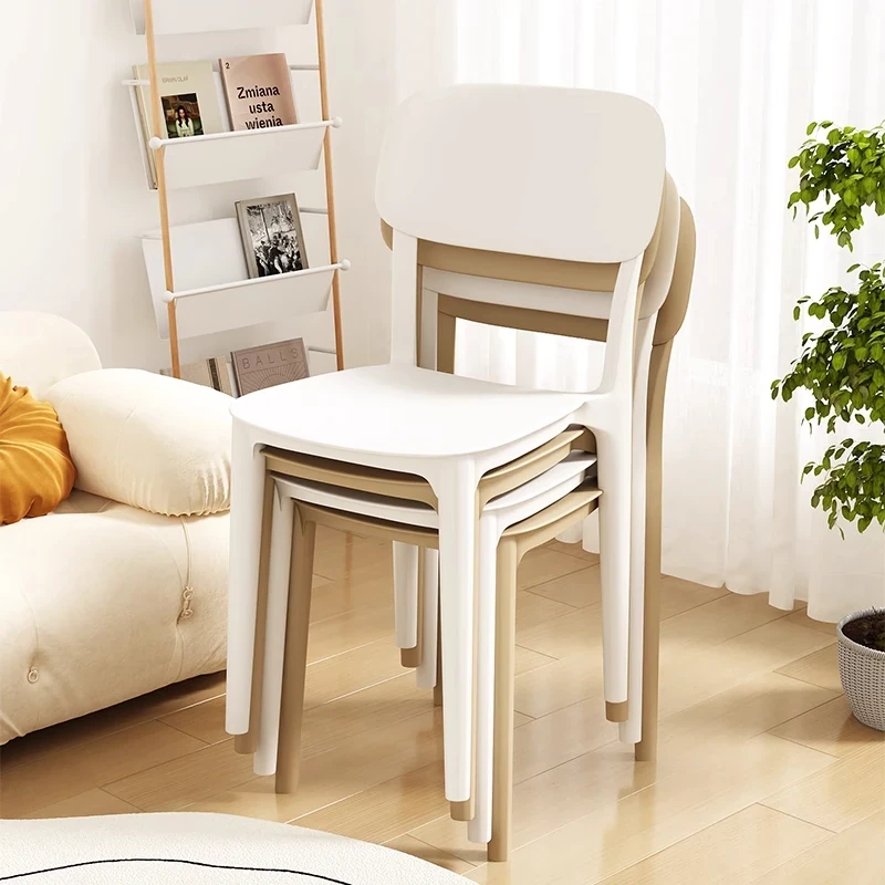 Minimalist Bedroom Vanity Stool - Thickened Stackable Plastic Dining Chair with Backrest for Home and Hotel Use - Perfect Makeup Stool for Any Space