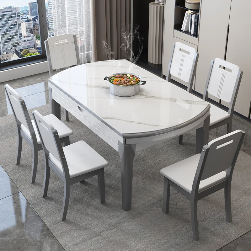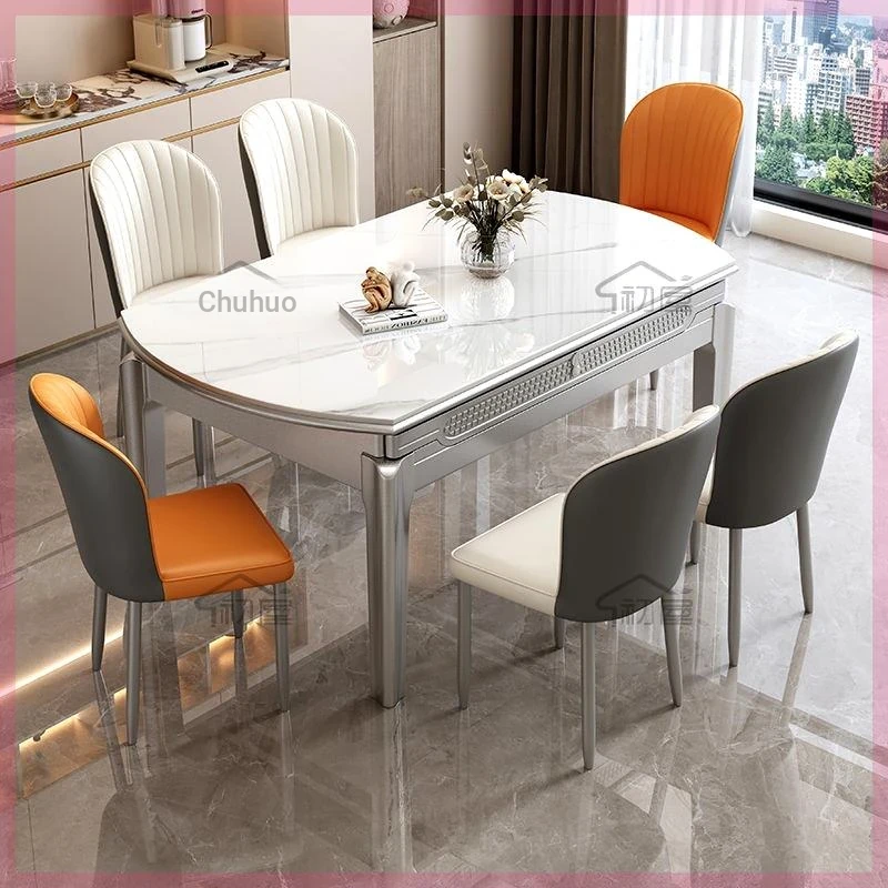 Free Shipping to Xinjiang: Modern Minimalist Foldable Marble Dining Table and Chair Set - Space-Saving Luxurious Design for Small Homes