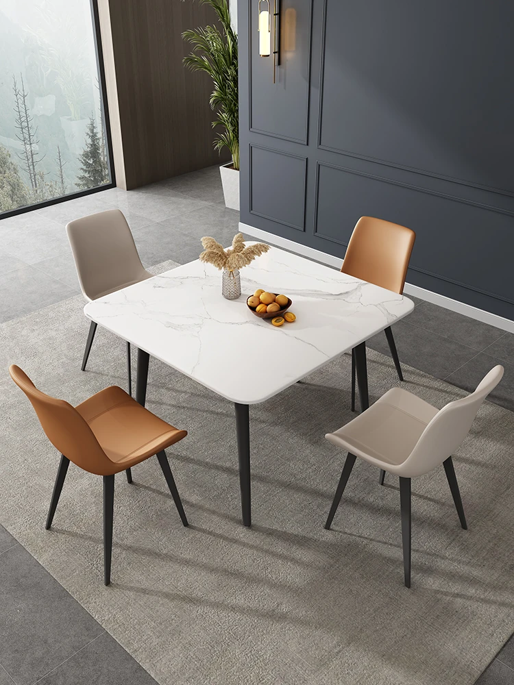 Elegant Glossy Stone Dining Table and Chair Set - Minimalist Square Design for Modern Small Spaces - Perfect for Western and Chinese Dining Experiences