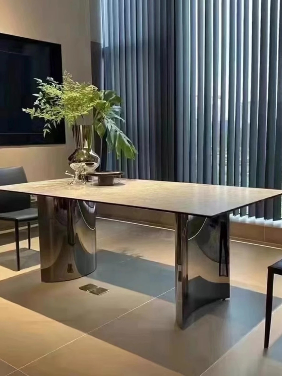 Delifeng High-End Stainless Steel Rectangular Dining Table - Italian Minimalist Luxury Design for Modern Homes, Perfect for Stylish Dining Experiences