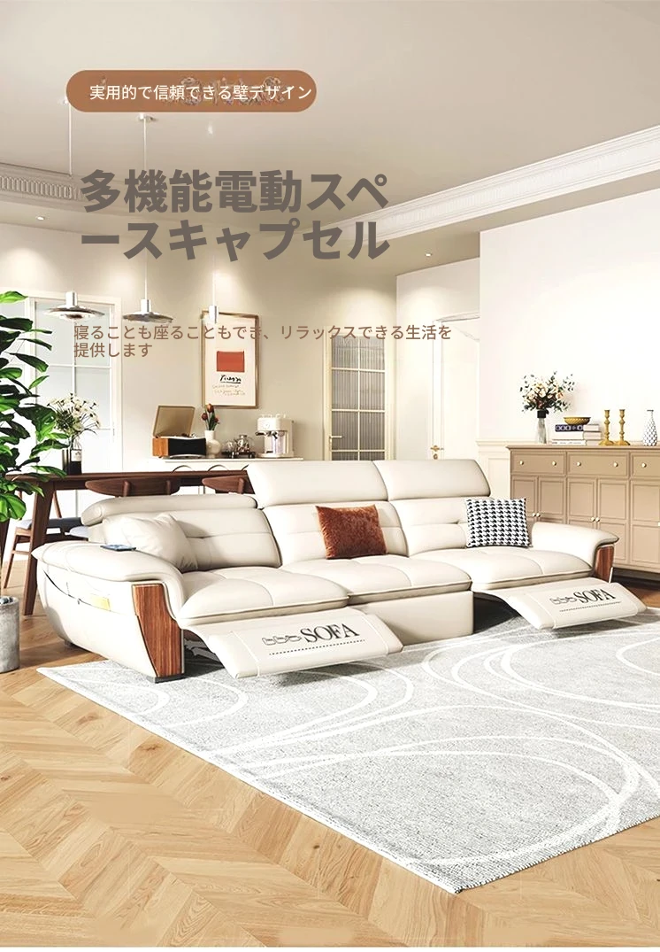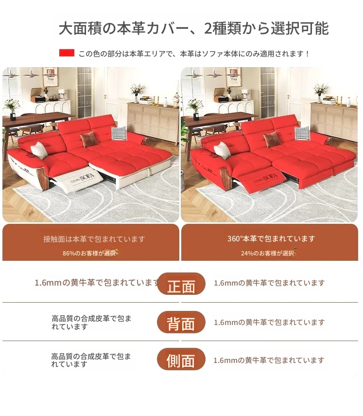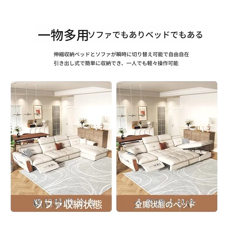 2024年新作!モダンでシンプルなデザインの2WAY折りたたみソファベッド。リビングルームにぴったりな宇宙船のような贅沢な電動機能付き本革ソファ。快適さとスタイルを兼ね備えた一品!