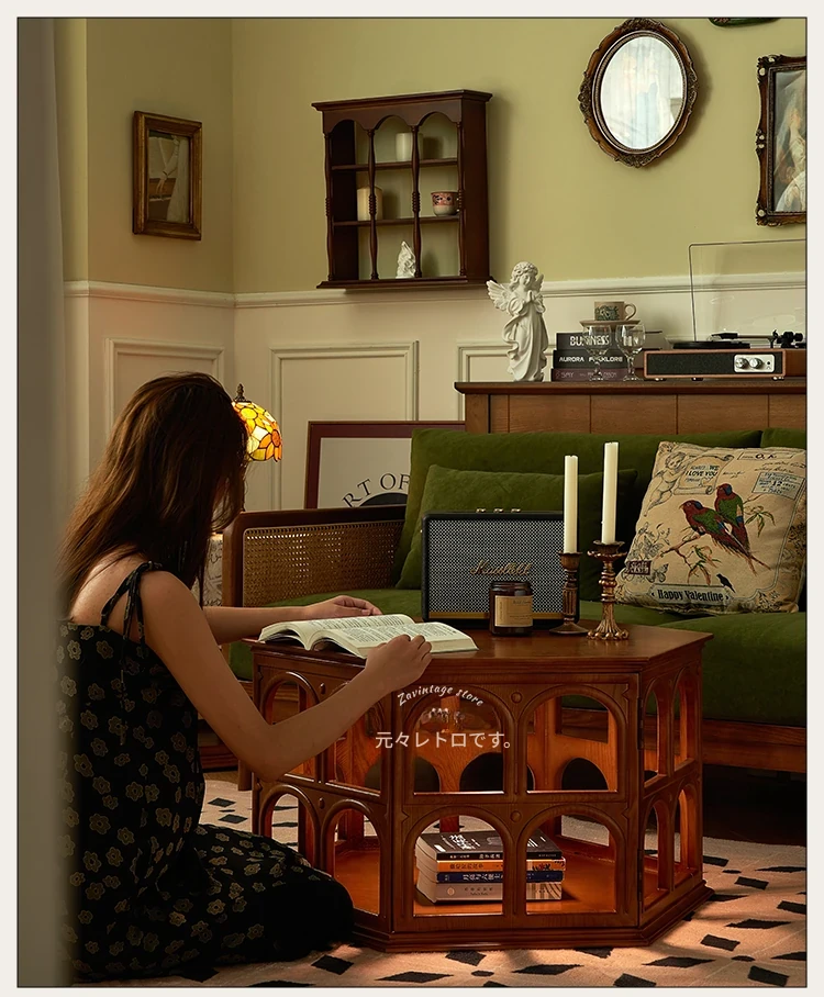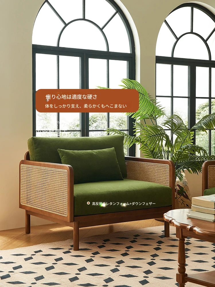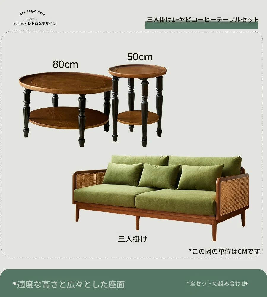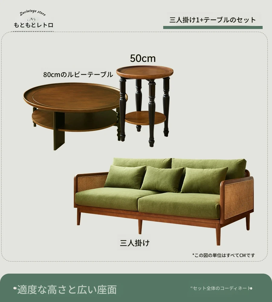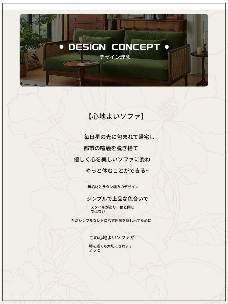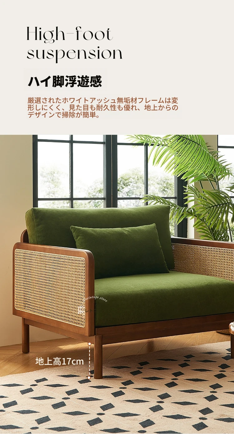 フレンチヴィンテージスタイルの小型リビング向け3人掛けソファ - グリーンベルベット×無垢材のダイレクトデザイン!おしゃれでコンパクト、あなたのリビングにぴったりの癒し空間を提供します。