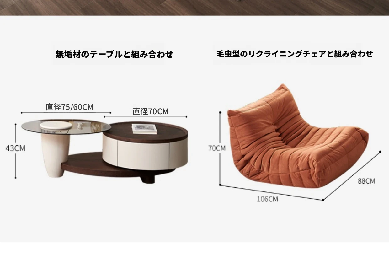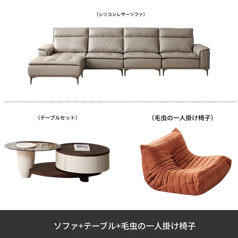 ソファ+コーヒーテーブル+毛虫型一人掛け椅子