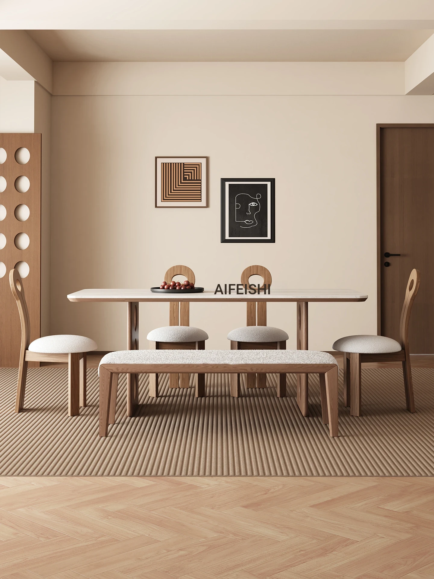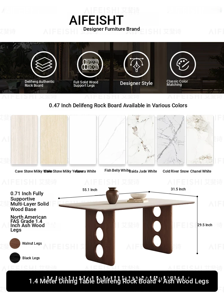 55.12 in Dining Table Delifeng Rock Plate + Ash Wood Foot