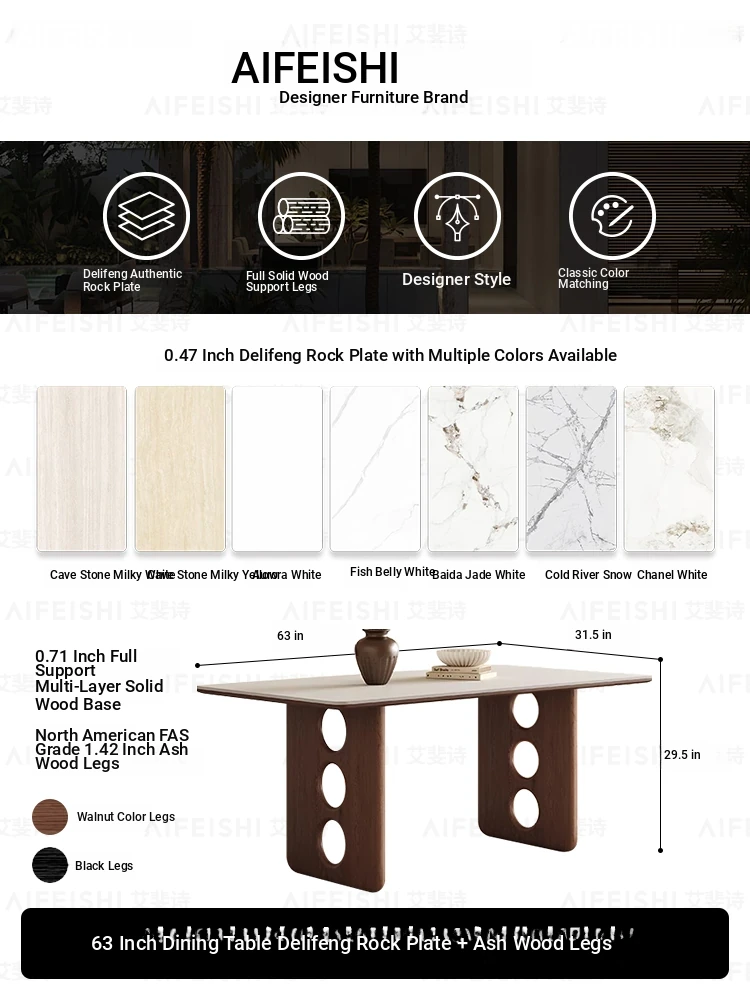 62.99 in Dining Table Delifeng Rock Plate + Ash Wood Foot