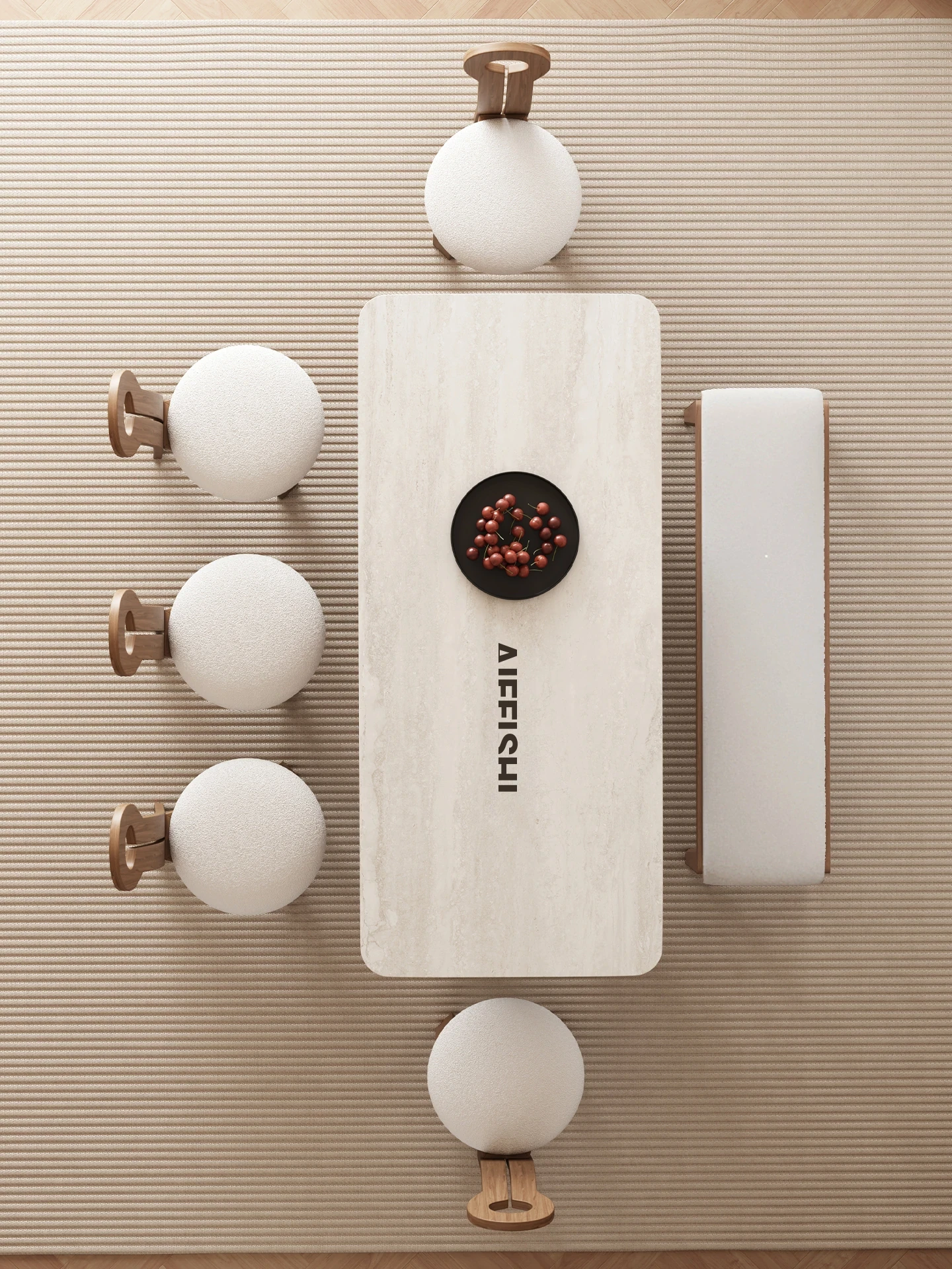 51.18 ins dining table Italian craft rock board + ash wood tripod