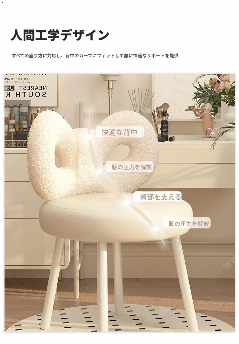 シンプルでおしゃれな化粧椅子|高級感あふれるバタフライスツール|女子のための夢の寝室にぴったり|人気のドレッサーチェア|背もたれ付きで快適なネイル椅子!