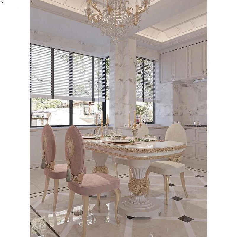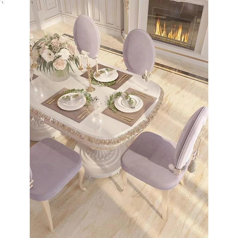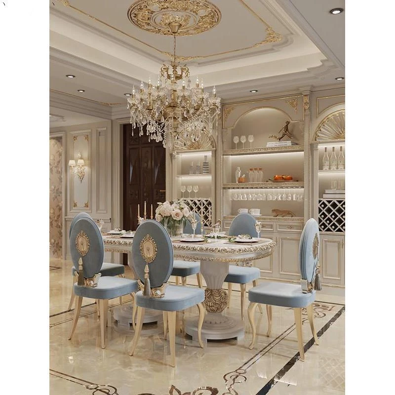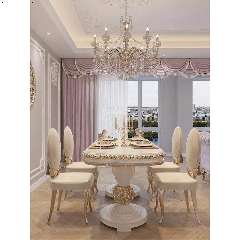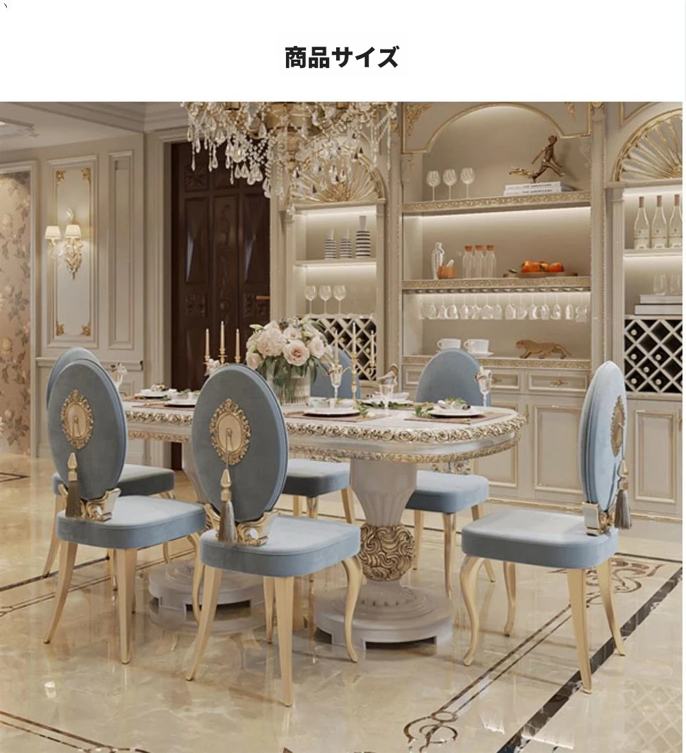 フランス宮廷スタイルの高級オーク材オーバル彫刻ダイニングテーブル - モダンでシンプルなリビング家具セット、快適な多人数用チェア付き!あなたの食卓を豪華に演出します!