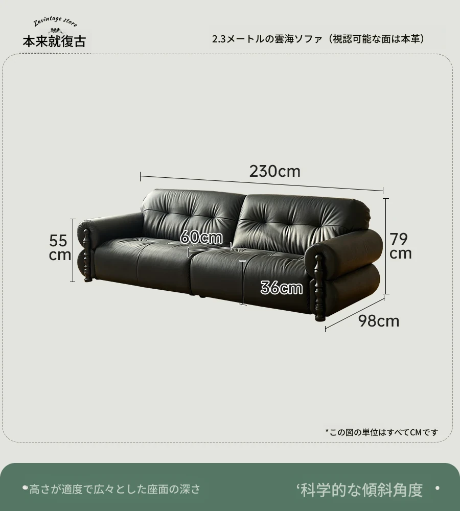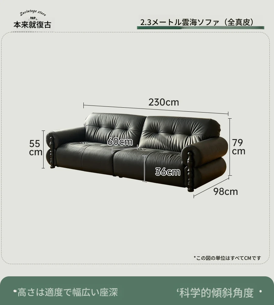 【ユンハイソファ】2.3メートル直排/可視面本革N級厚手トップグレインレザー