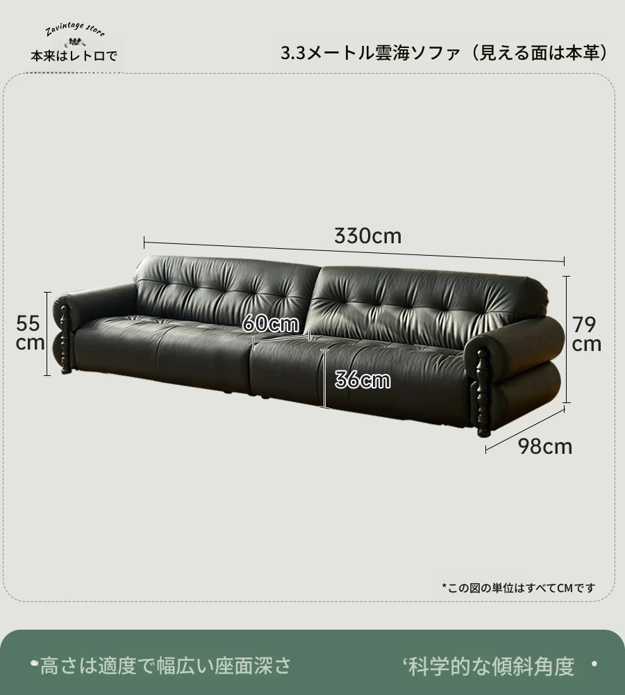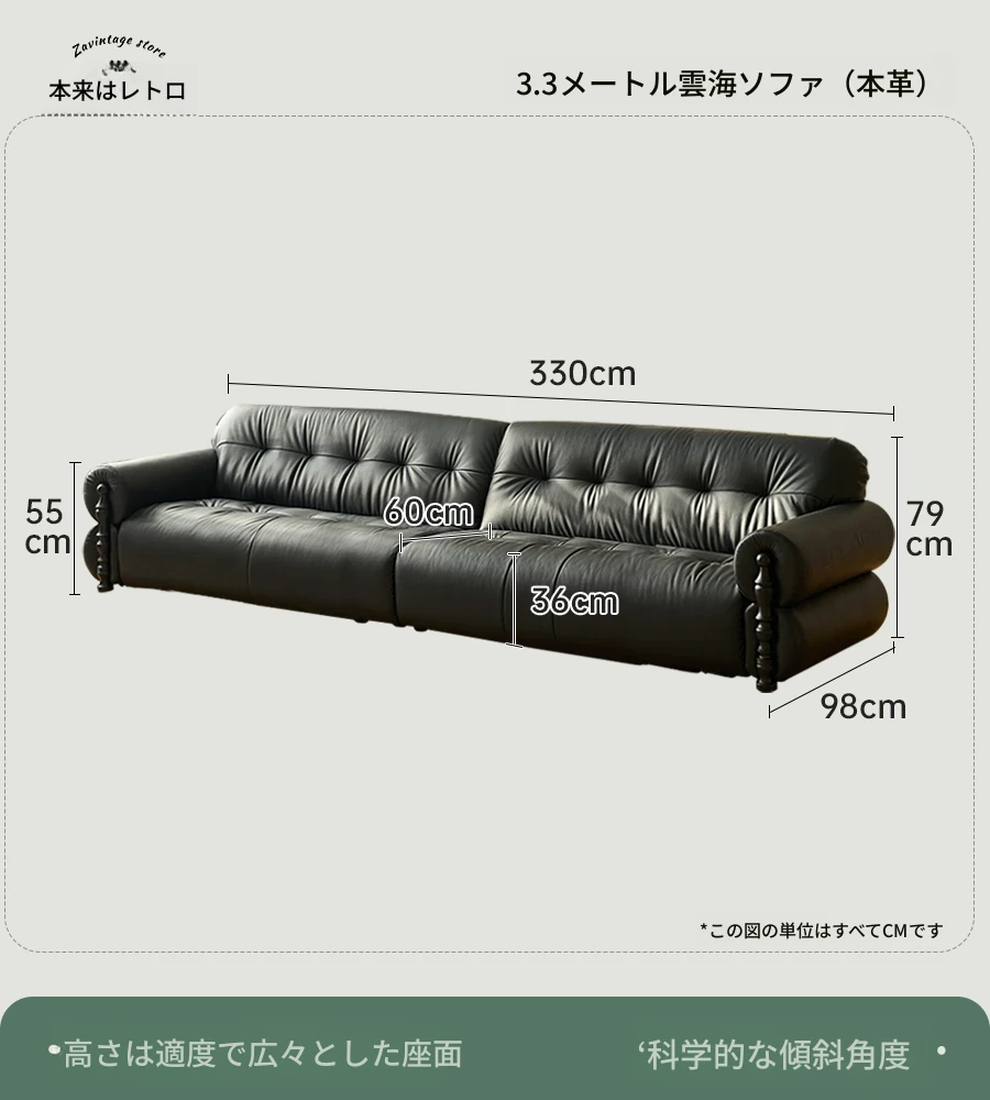 【ユンハイソファ】3.3メートル直排/可視面本革N級厚手トップグレインレザー