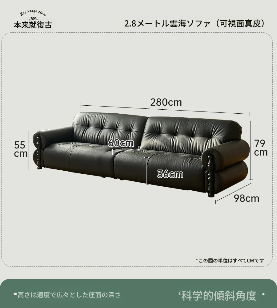 【ユンハイソファ】2.8メートル直排/可視面本革N級厚手トップグレインレザー