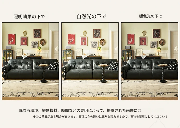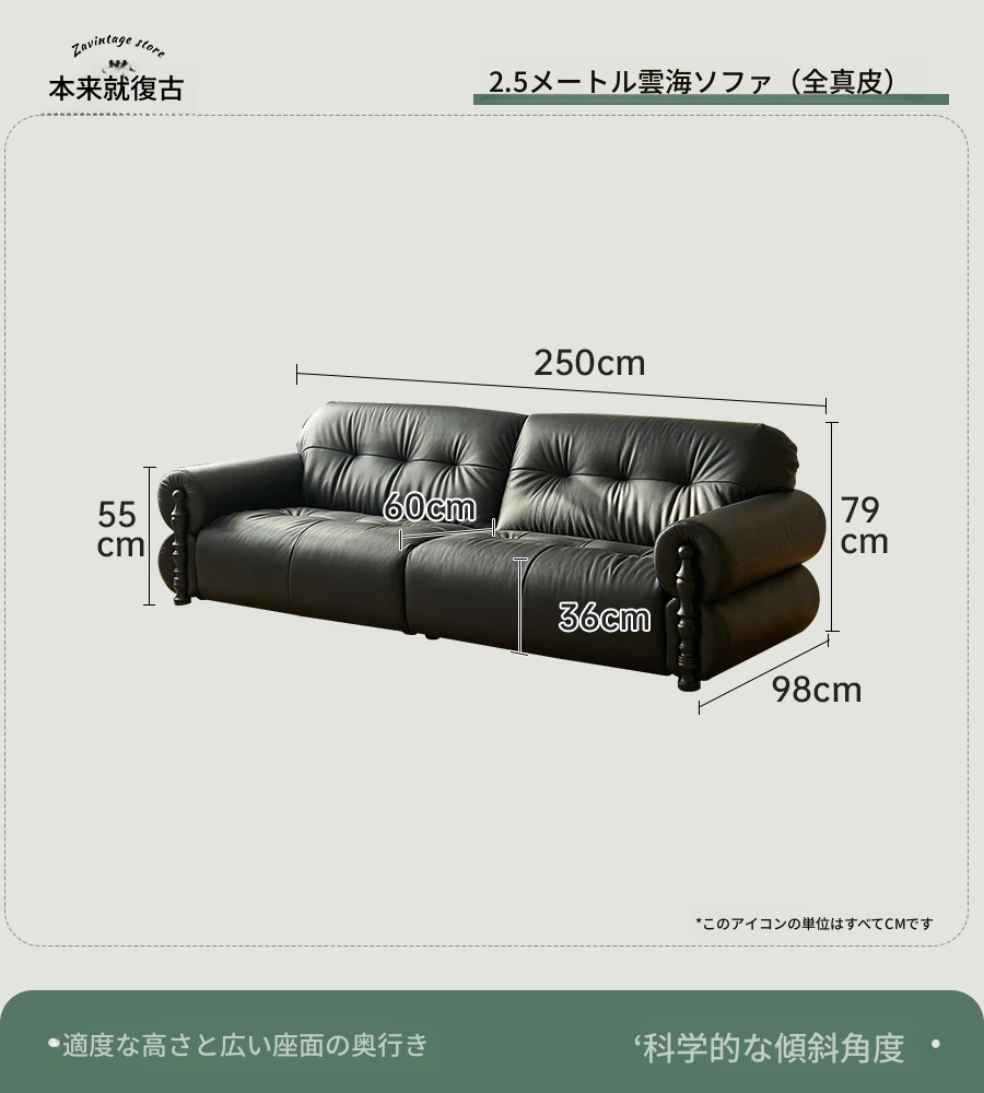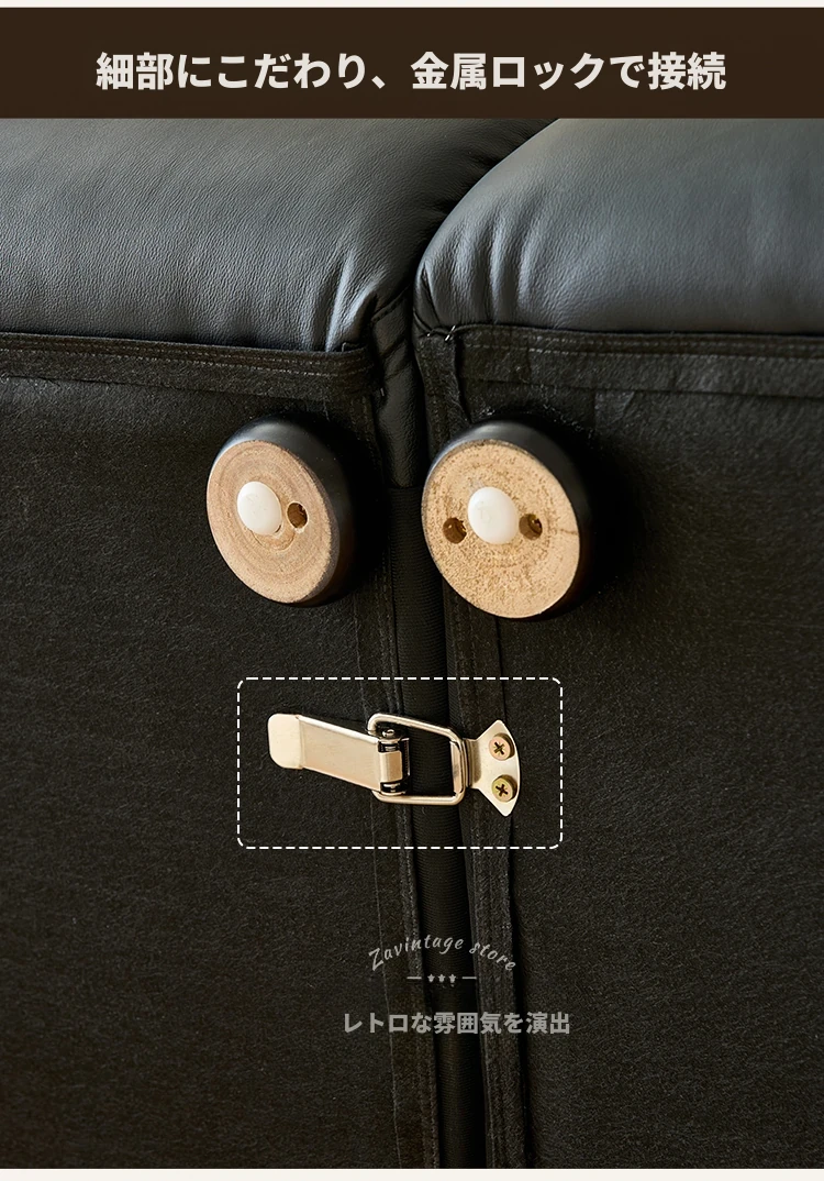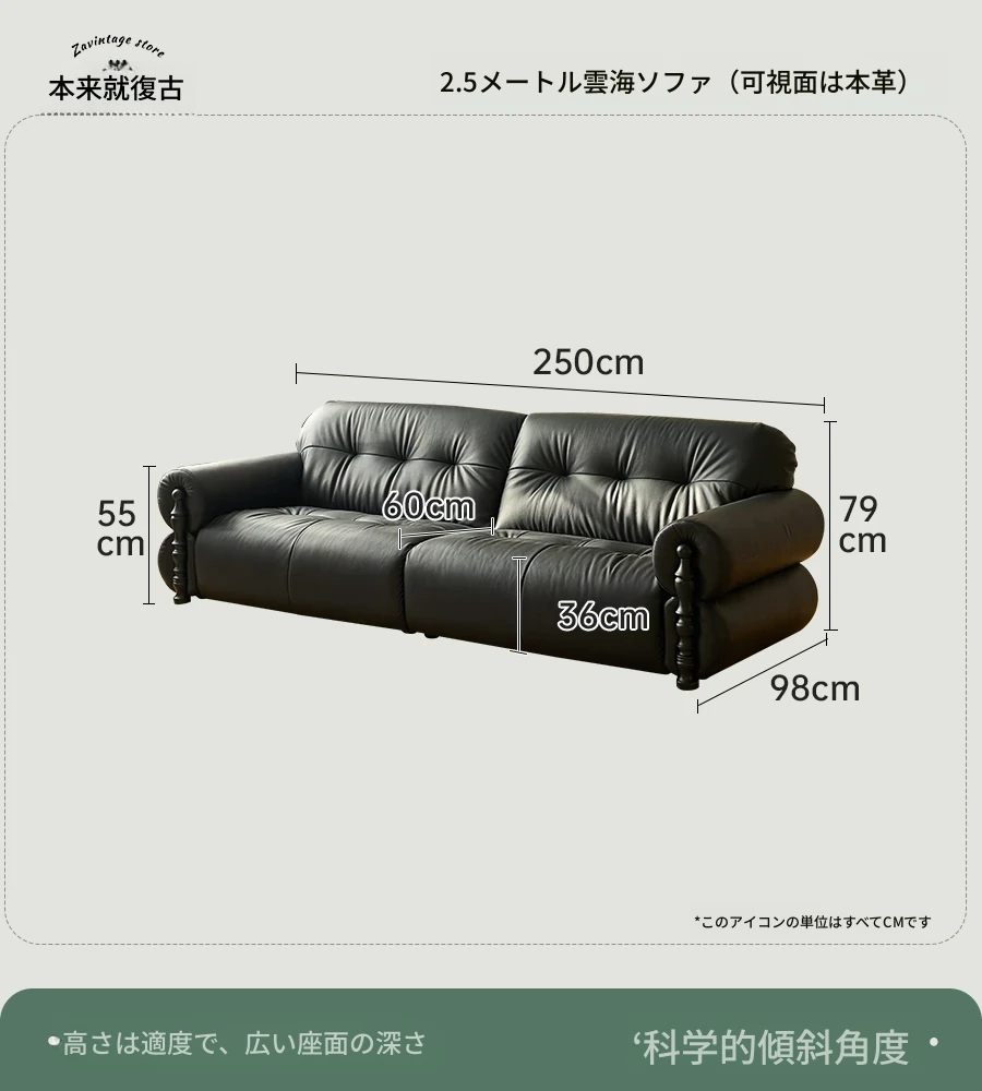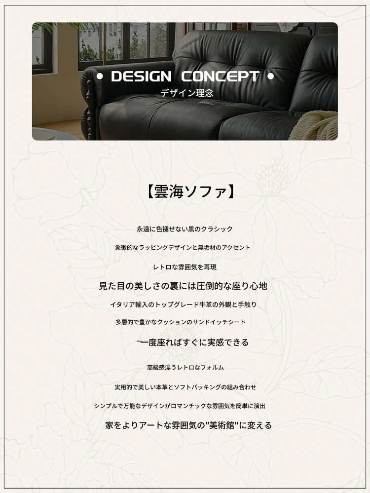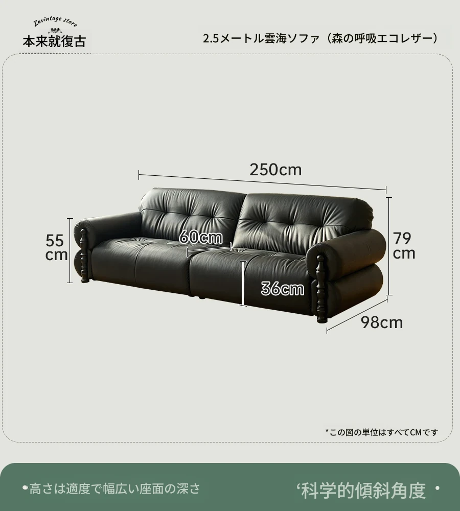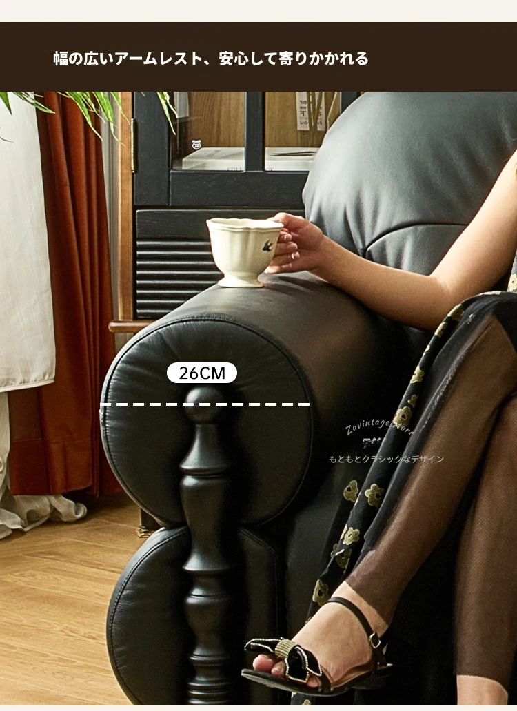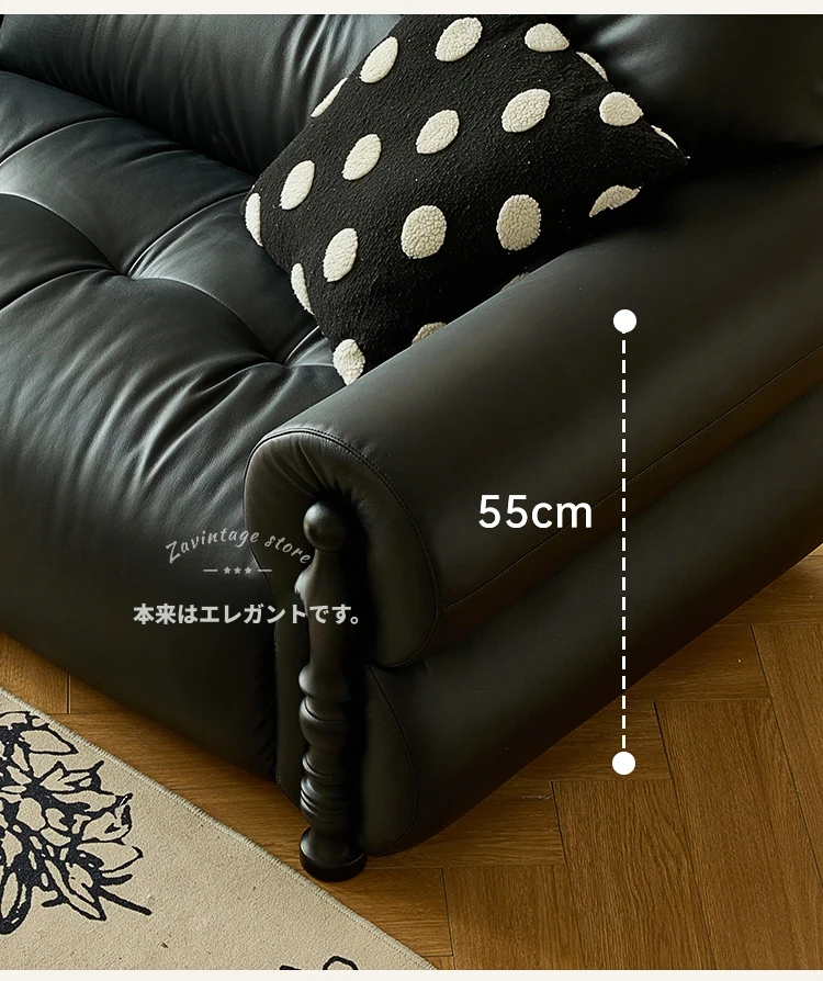 フレンチビンテージ本革ソファ - ブラックシュガークラウドデザイン、スタイリッシュな直線的なフォルムで、洗練されたアメリカンスタイルのリビングルームにぴったりのクリエイティブソファ!