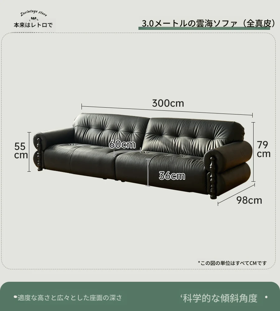 【ユンハイソファ】3メートル直排/可視面本革N級厚手トップグレインレザー
