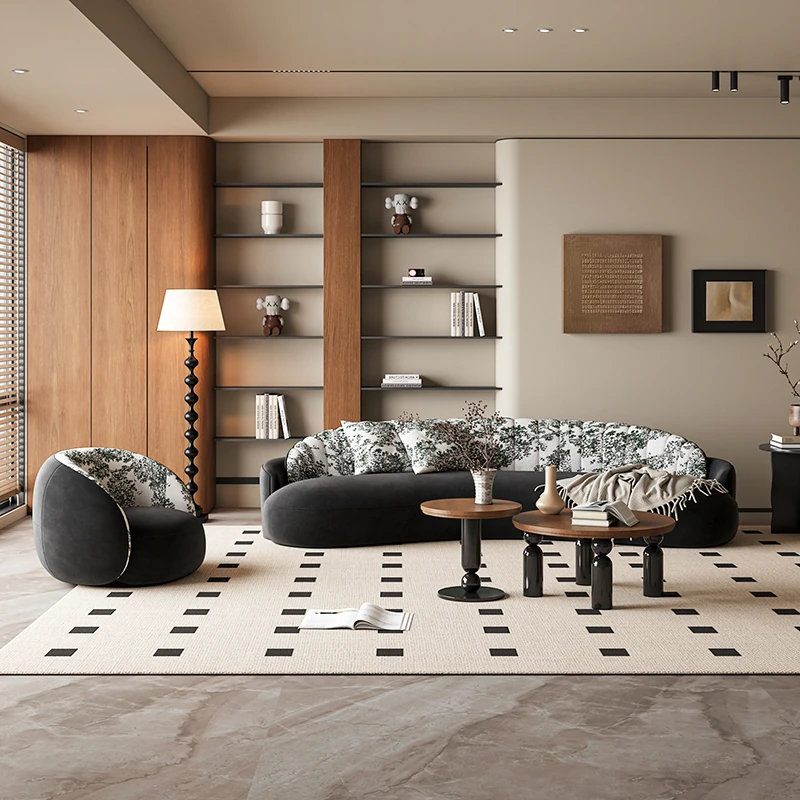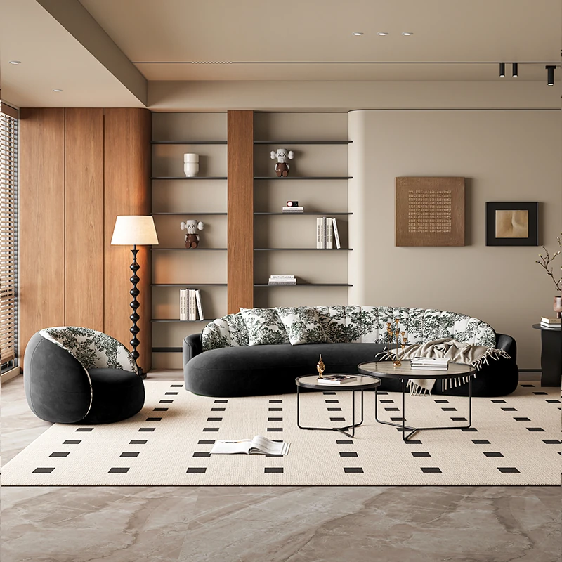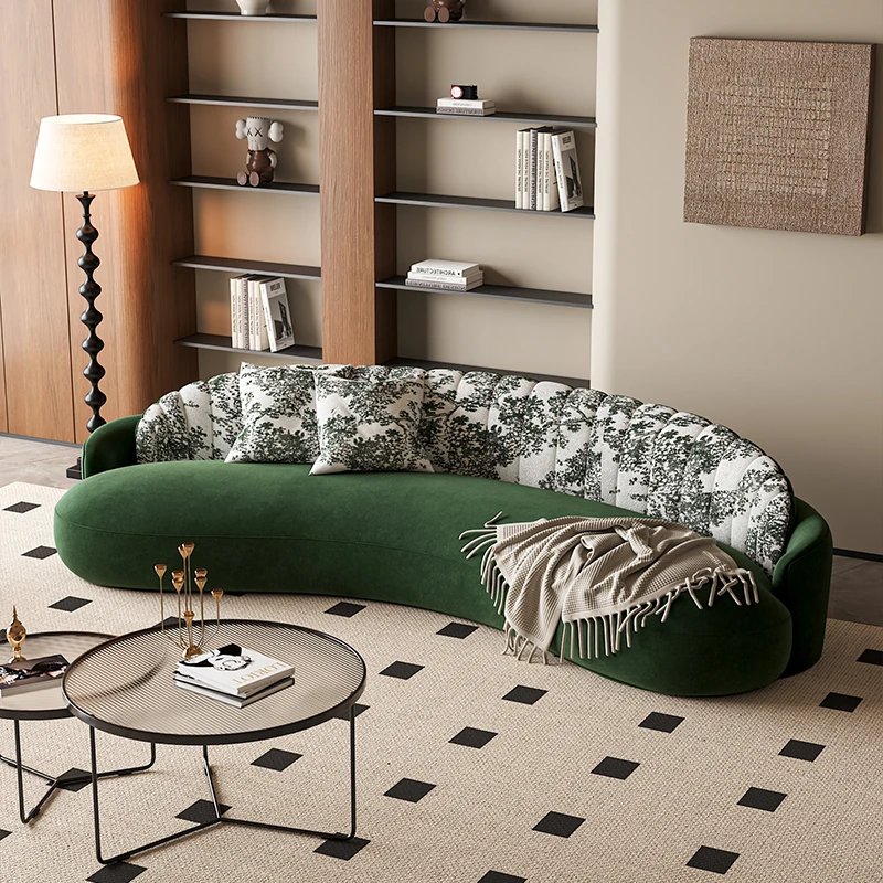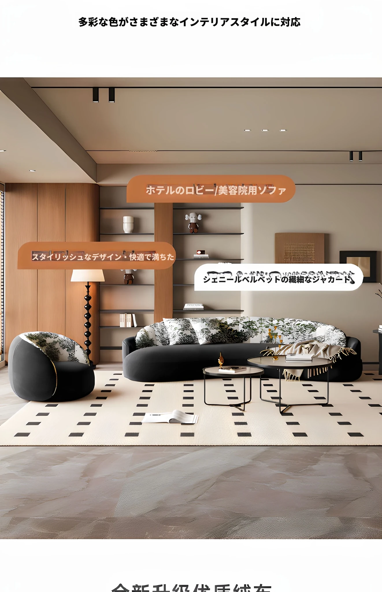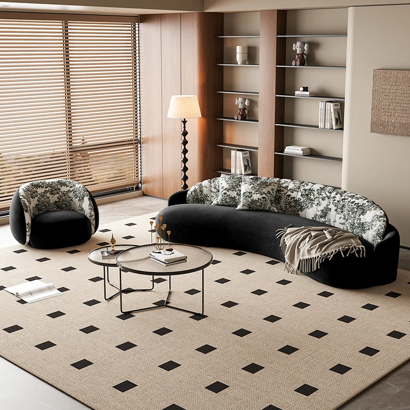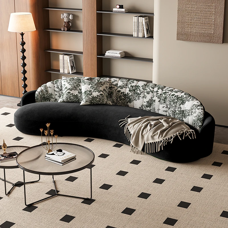 イタリアンスタイルの接客エリアに最適!小型住宅向けの曲線ソファ。布製でおしゃれなデザイン、アパレルショップの休憩スペースにもぴったり!快適な空間を演出します。