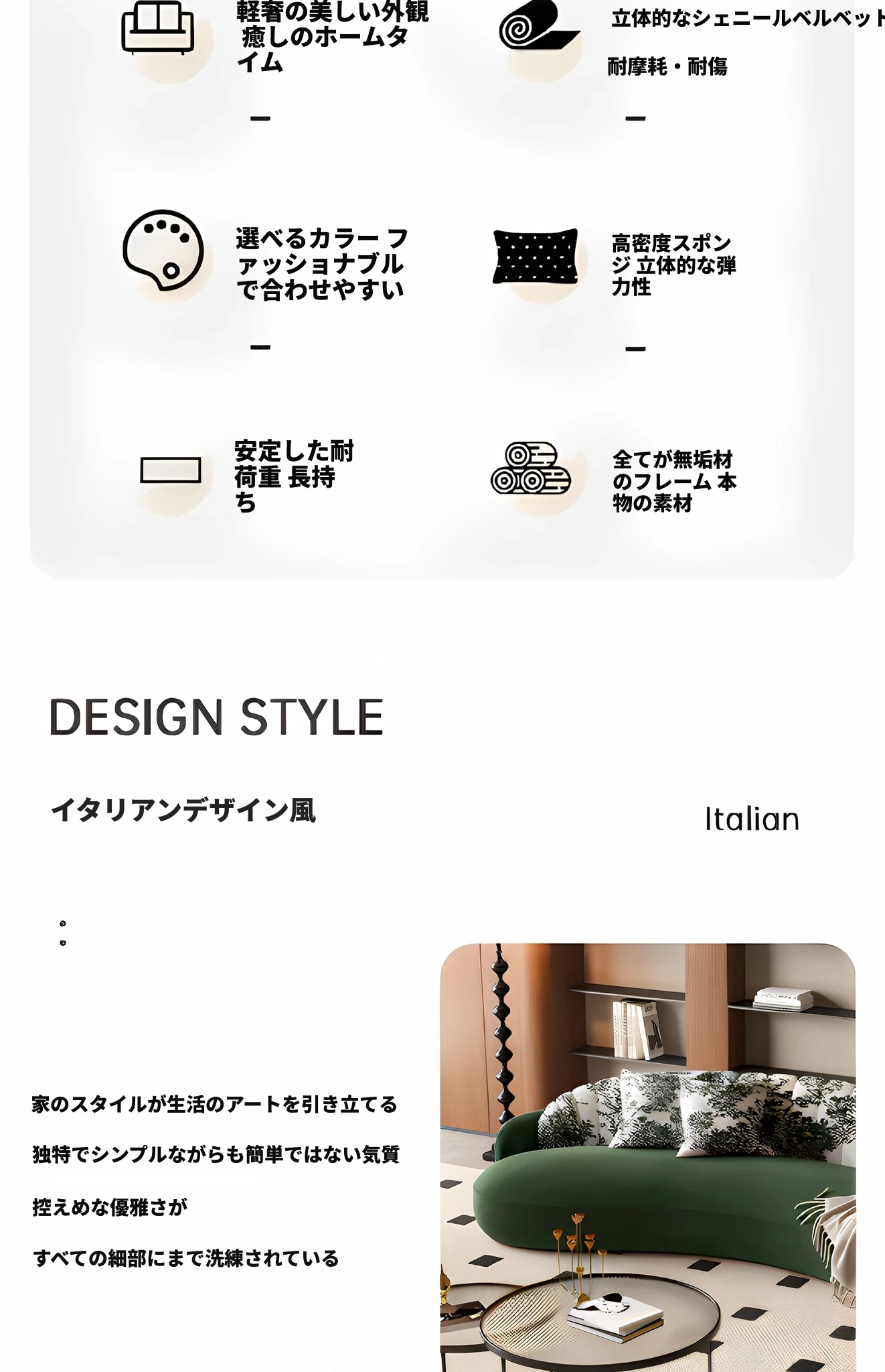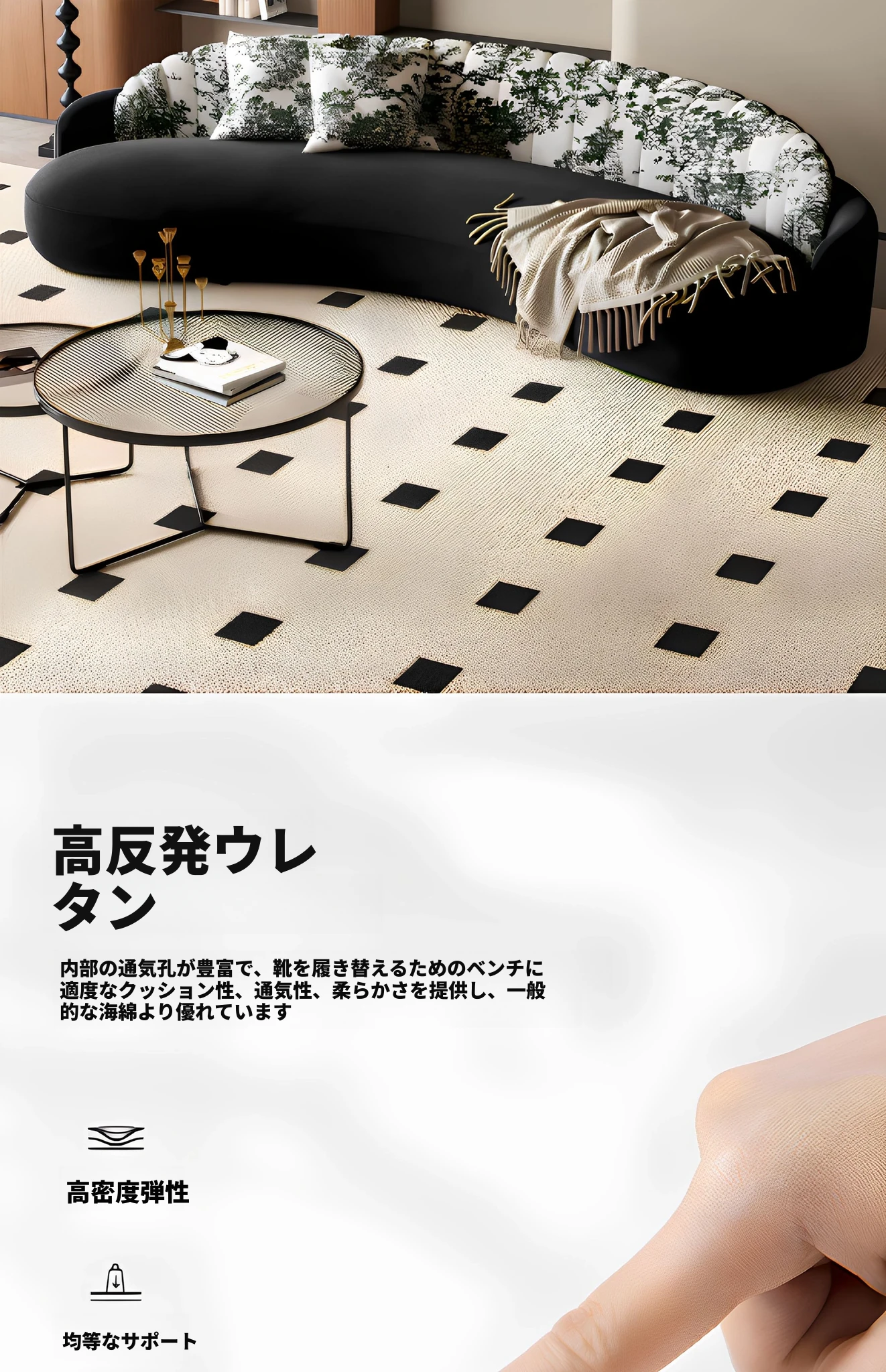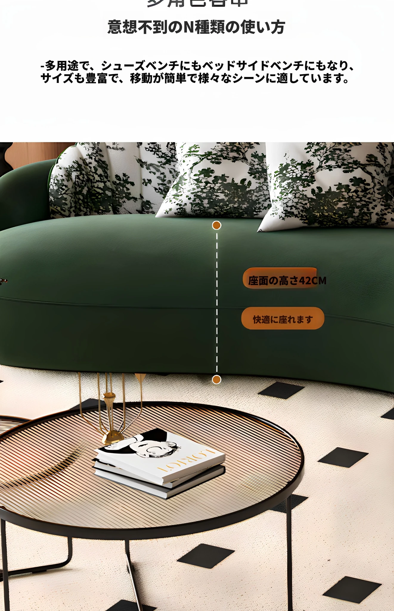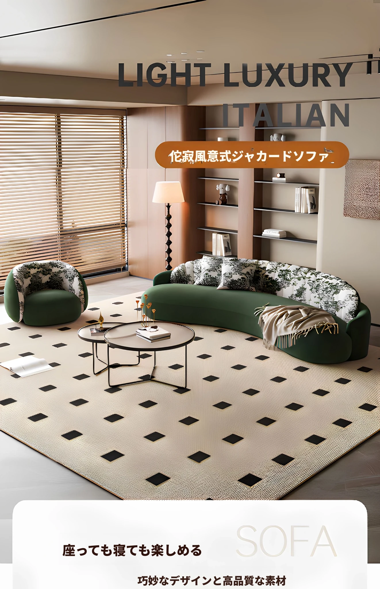 イタリアンスタイルの接客エリアに最適!小型住宅向けの曲線ソファ。布製でおしゃれなデザイン、アパレルショップの休憩スペースにもぴったり!快適な空間を演出します。