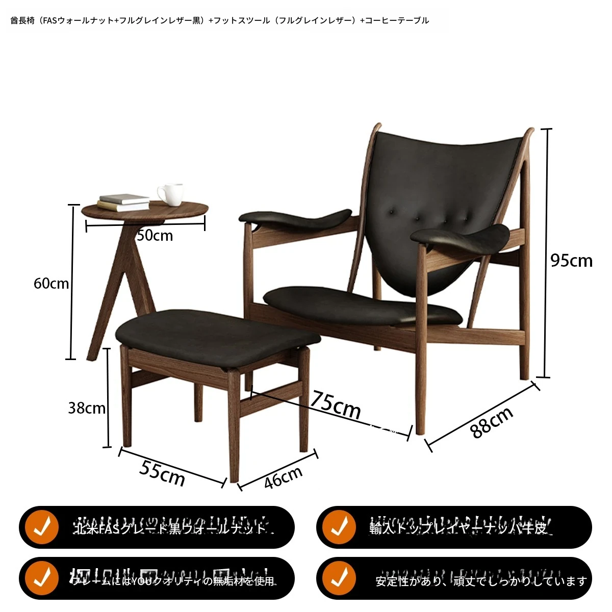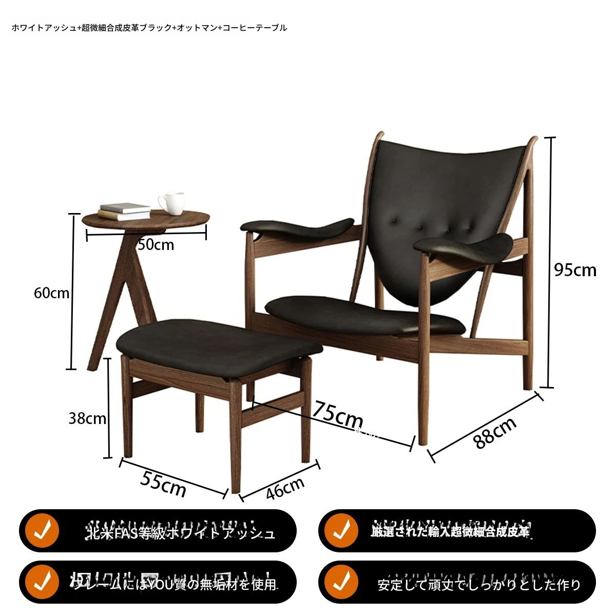 チーフチェア_コーヒーテーブル_オットマン(黒色超ファイバーレザー)