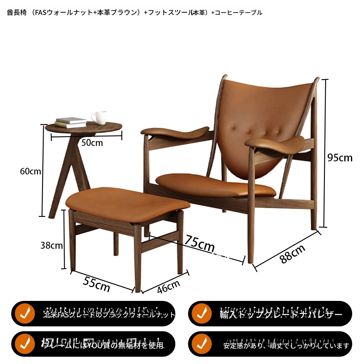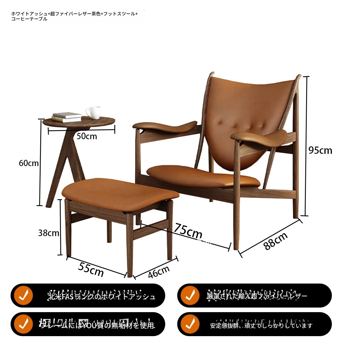チーフチェア_コーヒーテーブル_オットマン(茶色超ファイバーレザー)