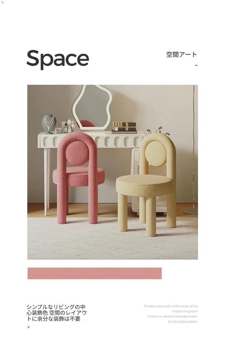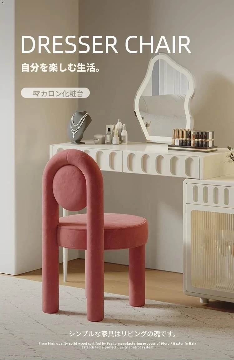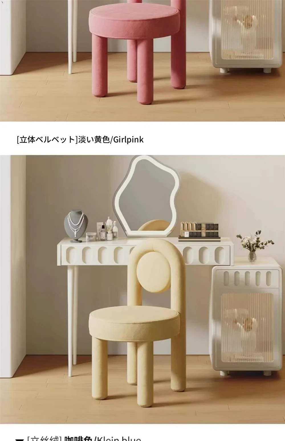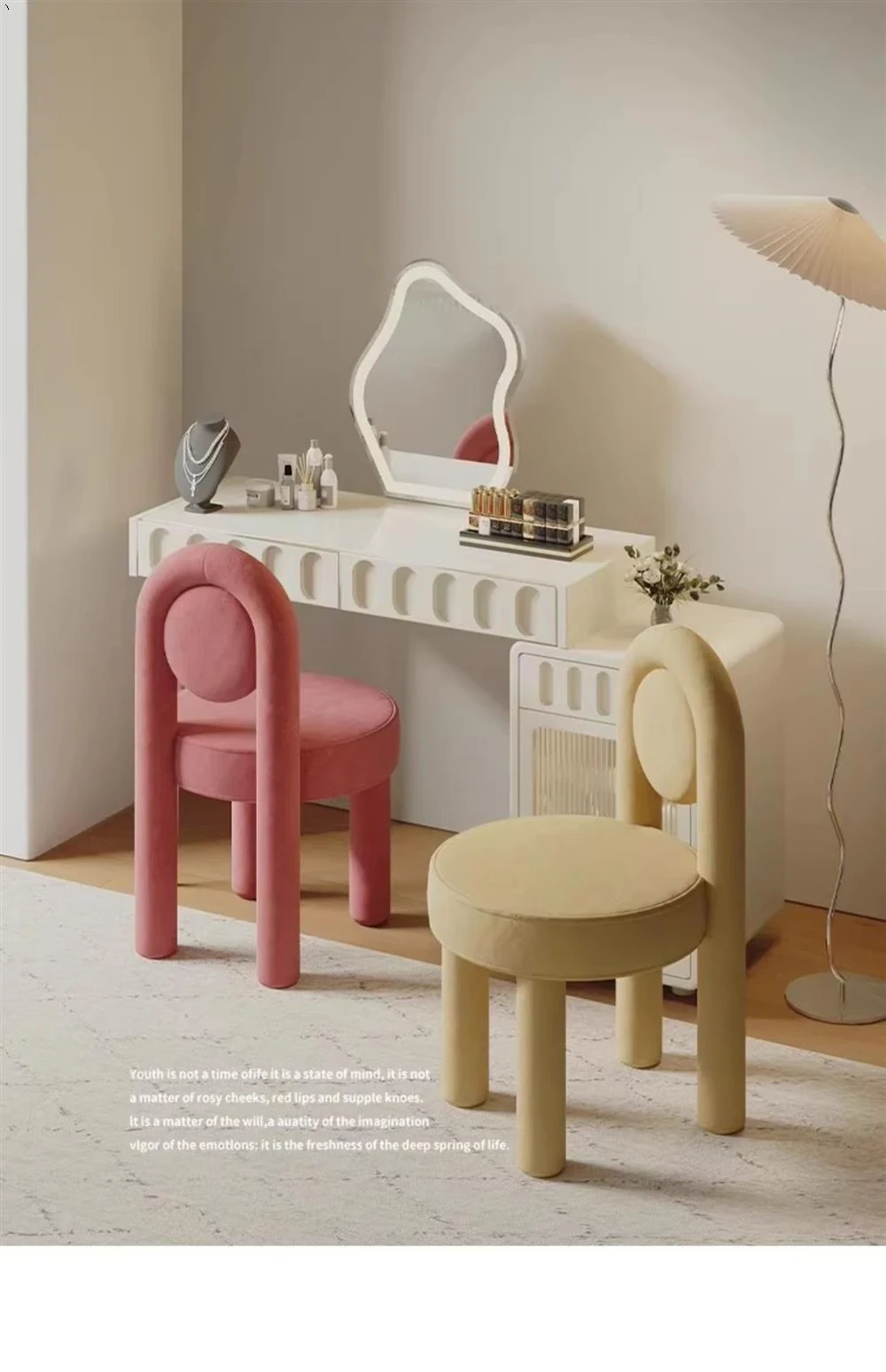 マカロンカラーの化粧椅子 - おしゃれな北欧風、軽やかなクリームテイストで、女性の寝室やドレッシングルームに最適なシンプルで上品なデザイン。あなたのビューティータイムを特別に演出します!