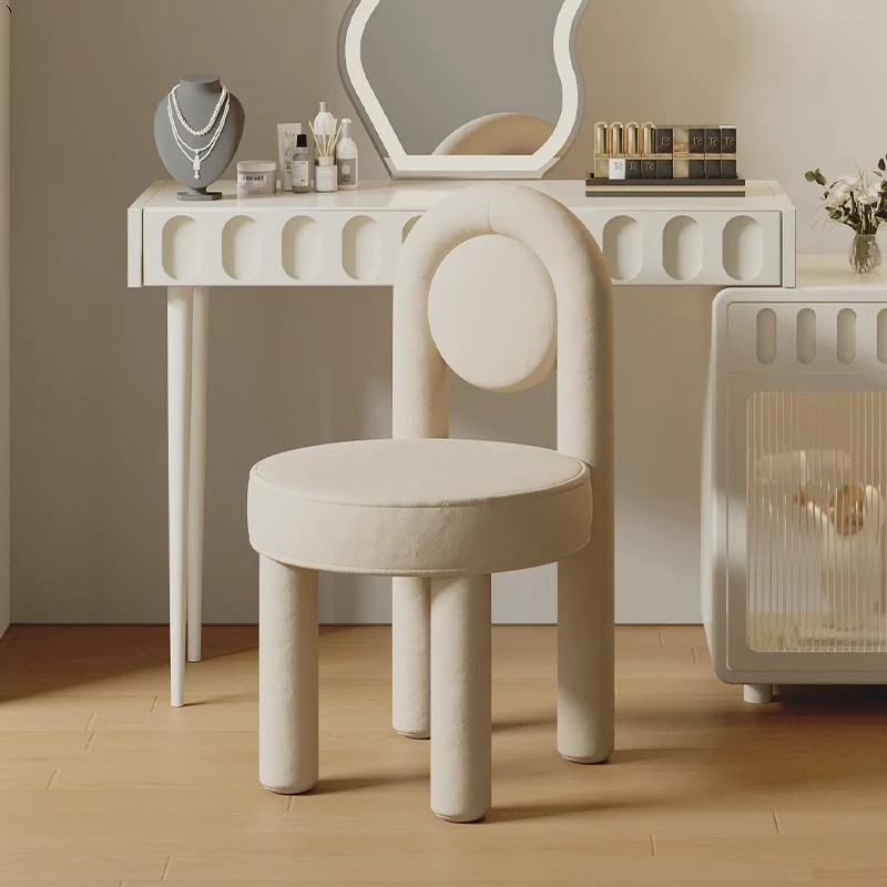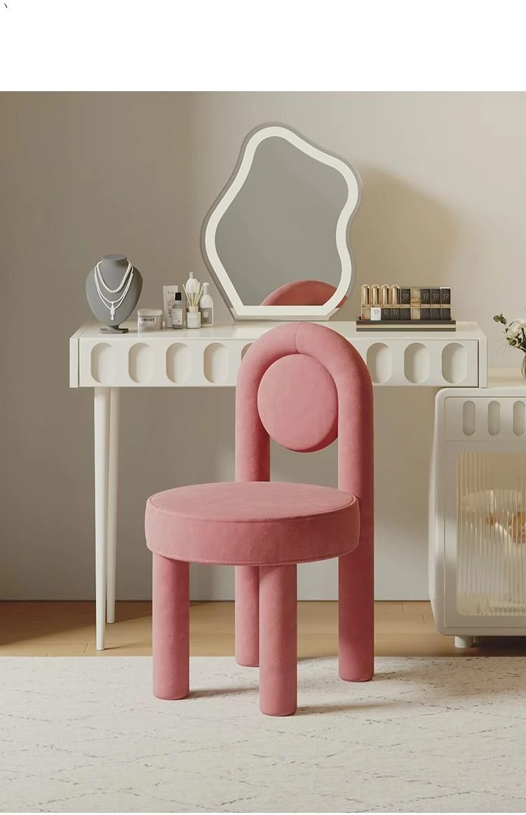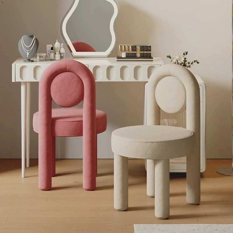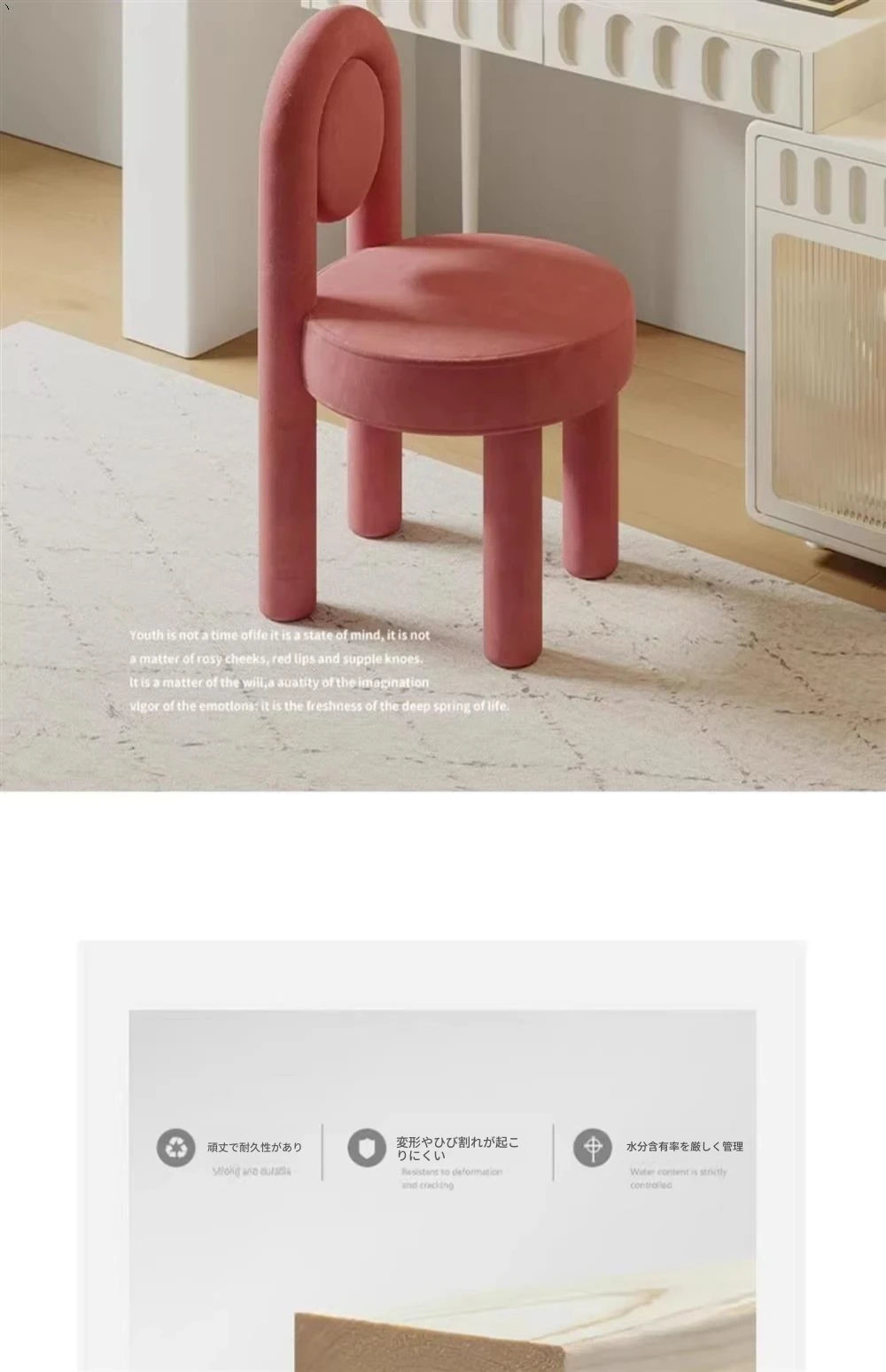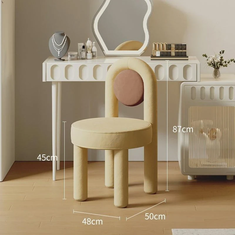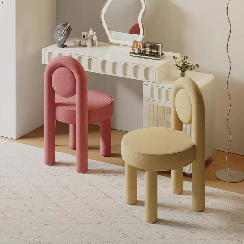 マカロンカラーの化粧椅子 - おしゃれな北欧風、軽やかなクリームテイストで、女性の寝室やドレッシングルームに最適なシンプルで上品なデザイン。あなたのビューティータイムを特別に演出します!