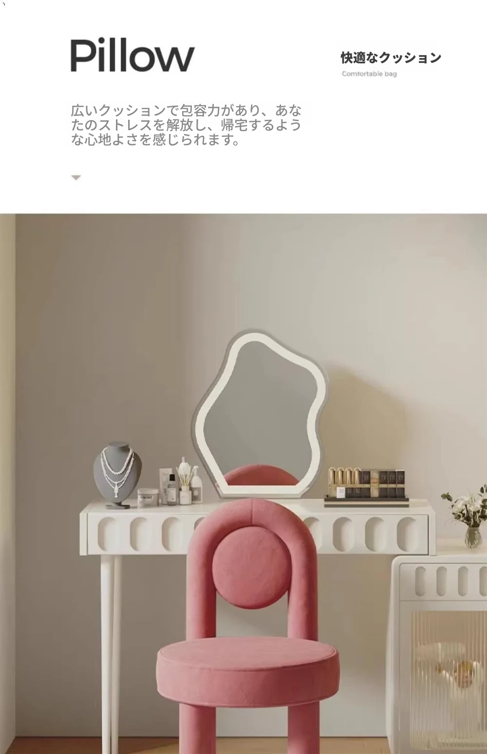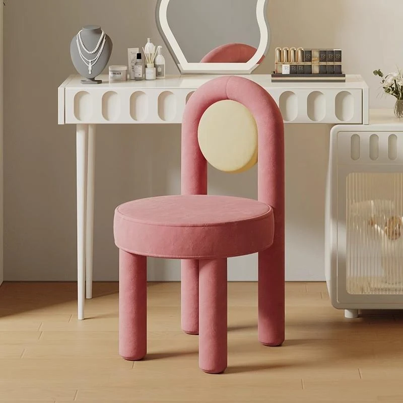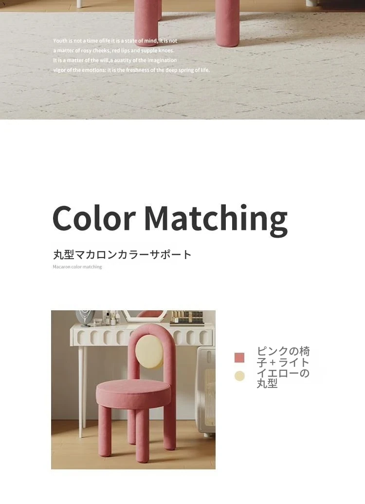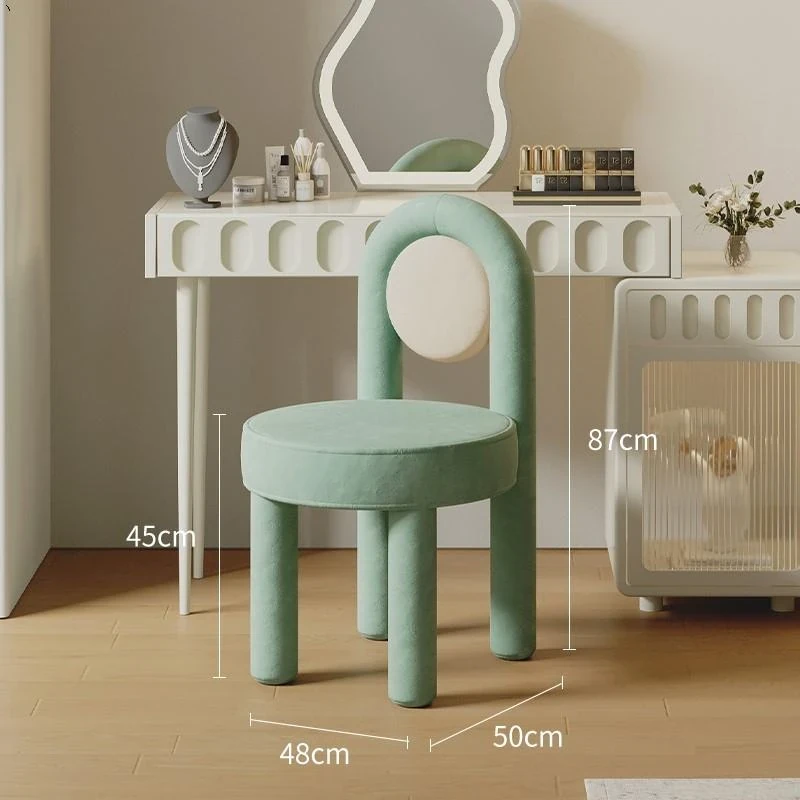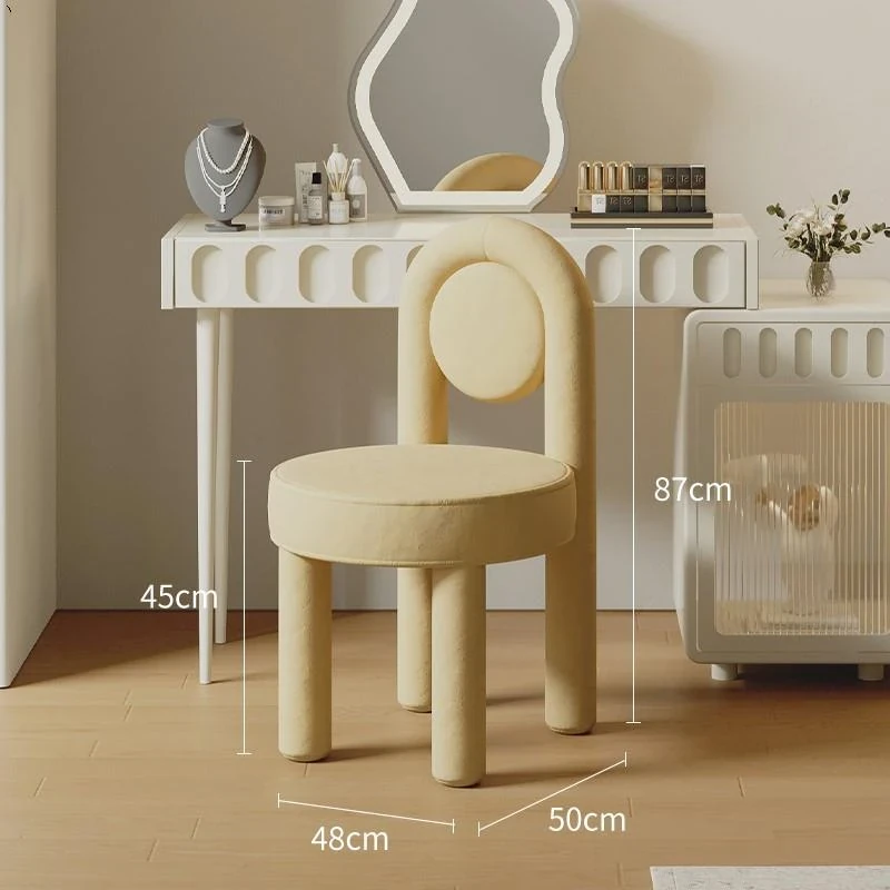 マカロンカラーの化粧椅子 - おしゃれな北欧風、軽やかなクリームテイストで、女性の寝室やドレッシングルームに最適なシンプルで上品なデザイン。あなたのビューティータイムを特別に演出します!