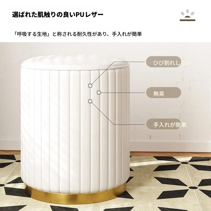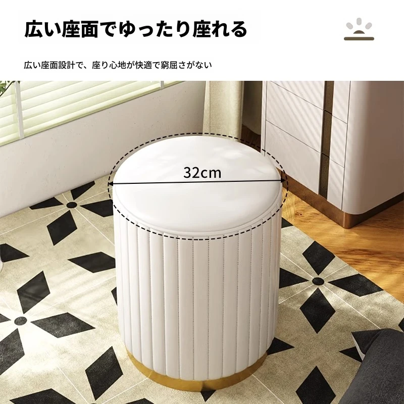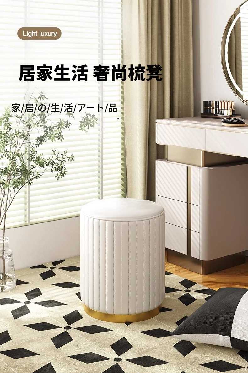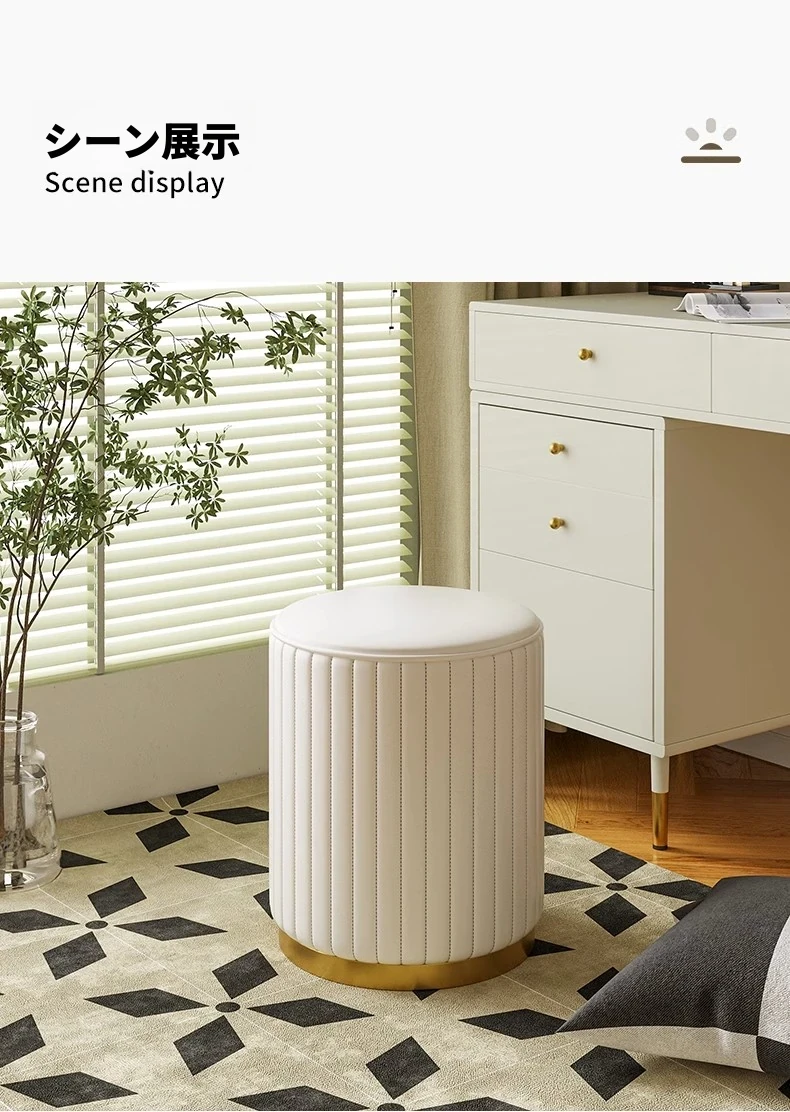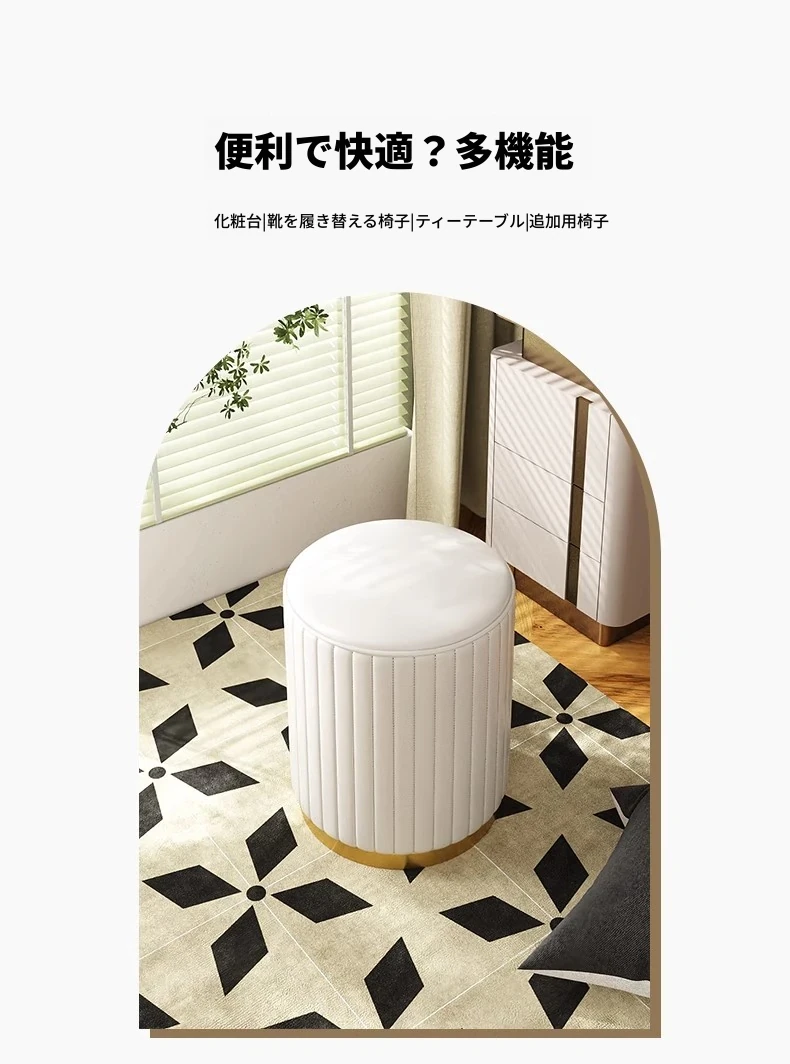 シンプルなデザインの現代的な化粧椅子!女性にぴったりのスタイリッシュなドレッサー用スツール。インフルエンサーも愛用!おしゃれな高円形スツールで、快適なメイクアップタイムをお楽しみください。