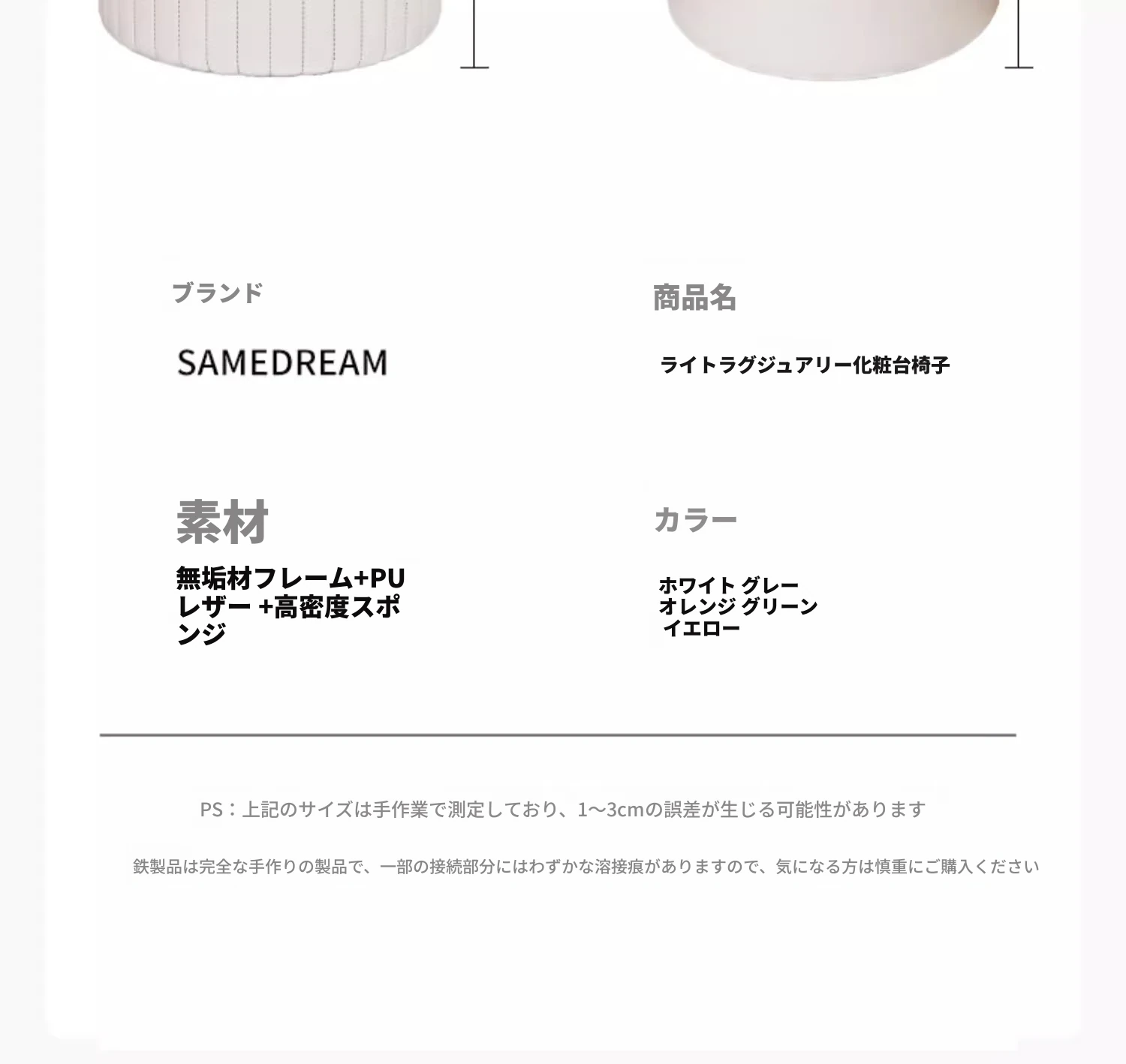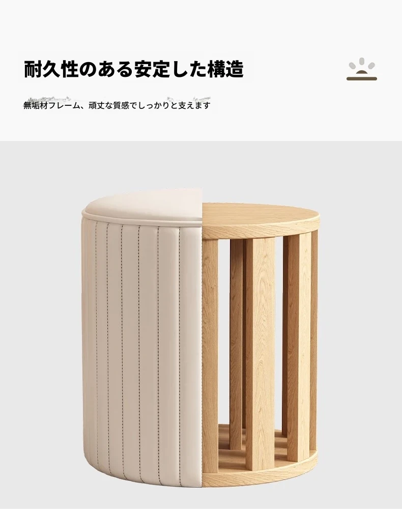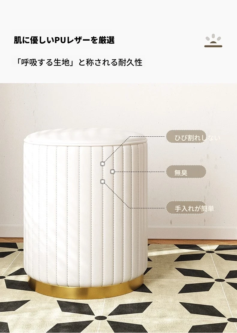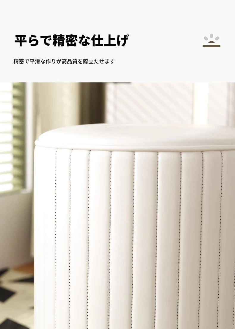 シンプルなデザインの現代的な化粧椅子!女性にぴったりのスタイリッシュなドレッサー用スツール。インフルエンサーも愛用!おしゃれな高円形スツールで、快適なメイクアップタイムをお楽しみください。