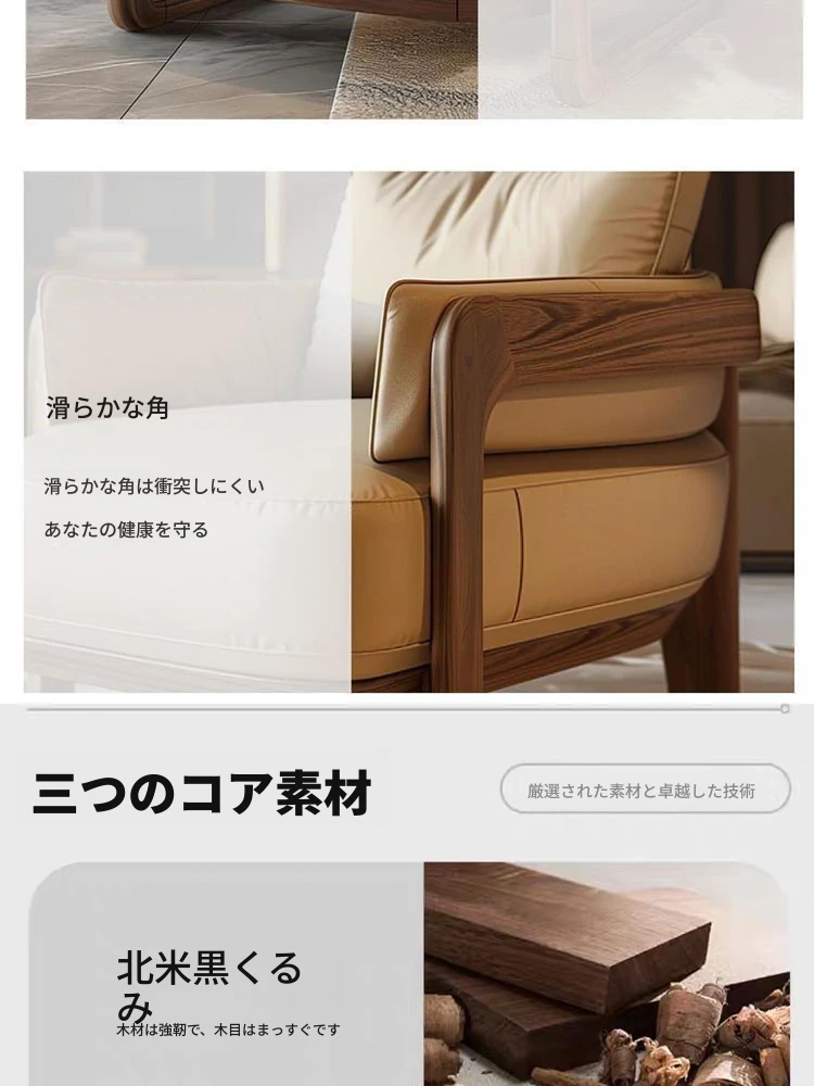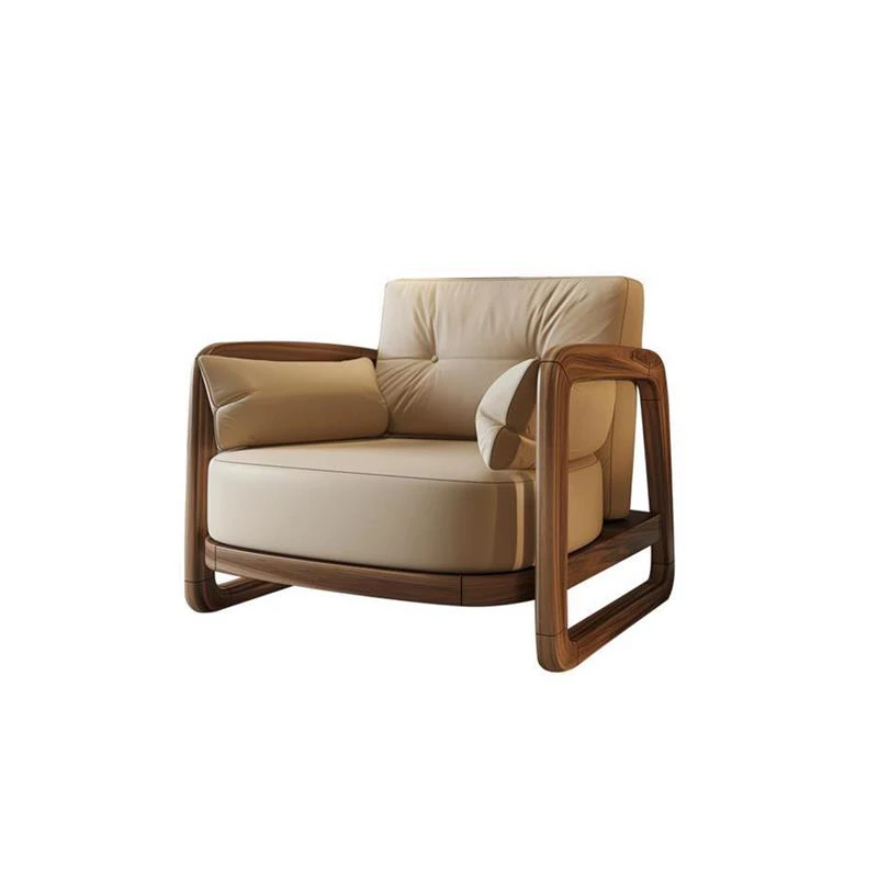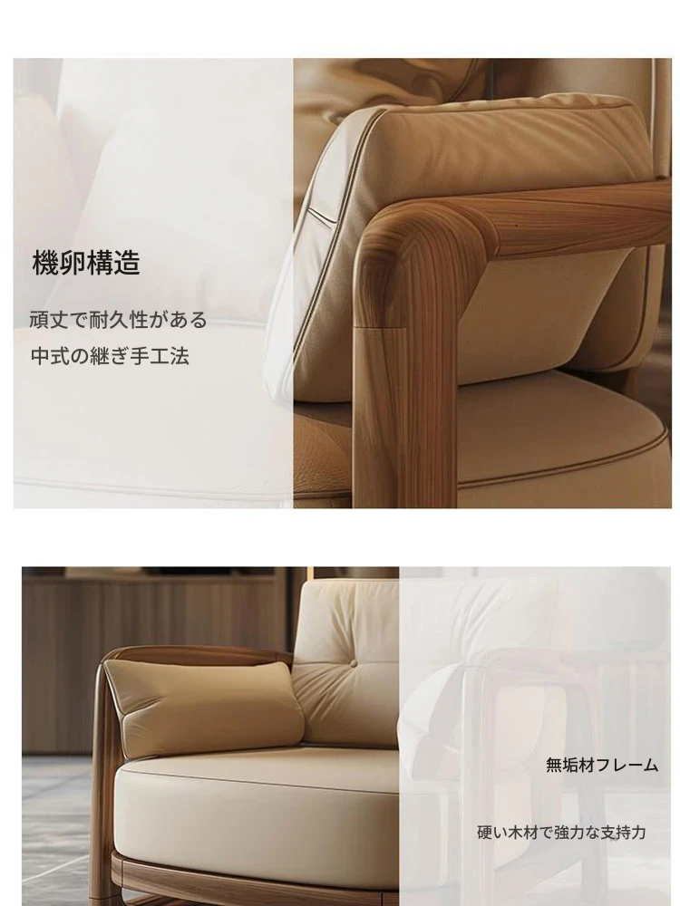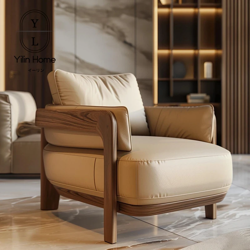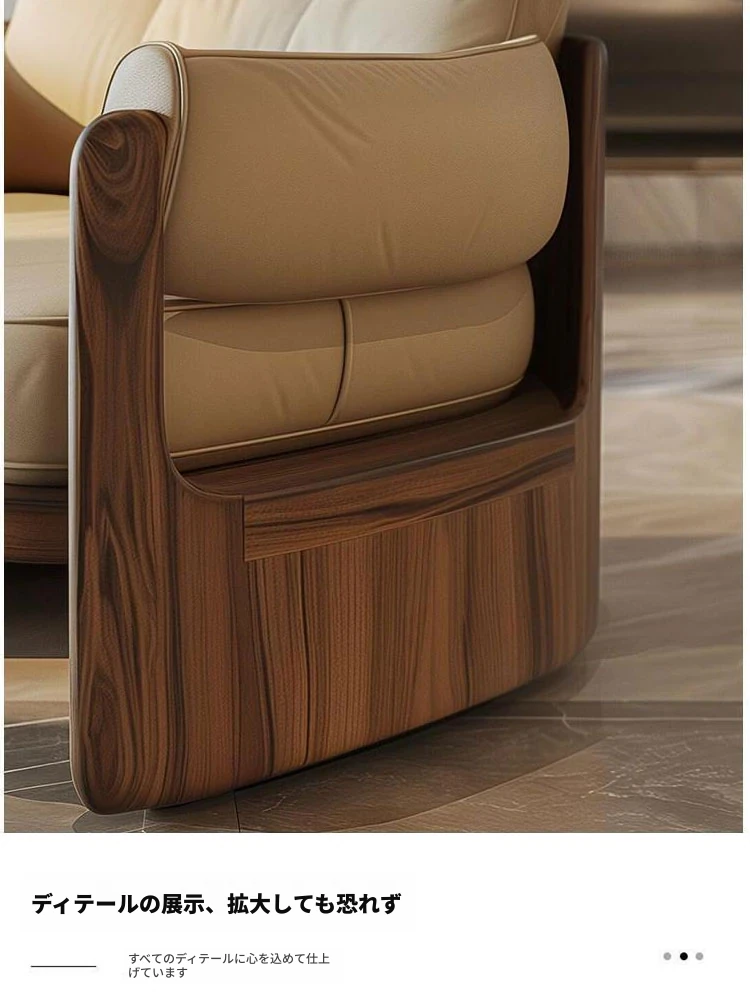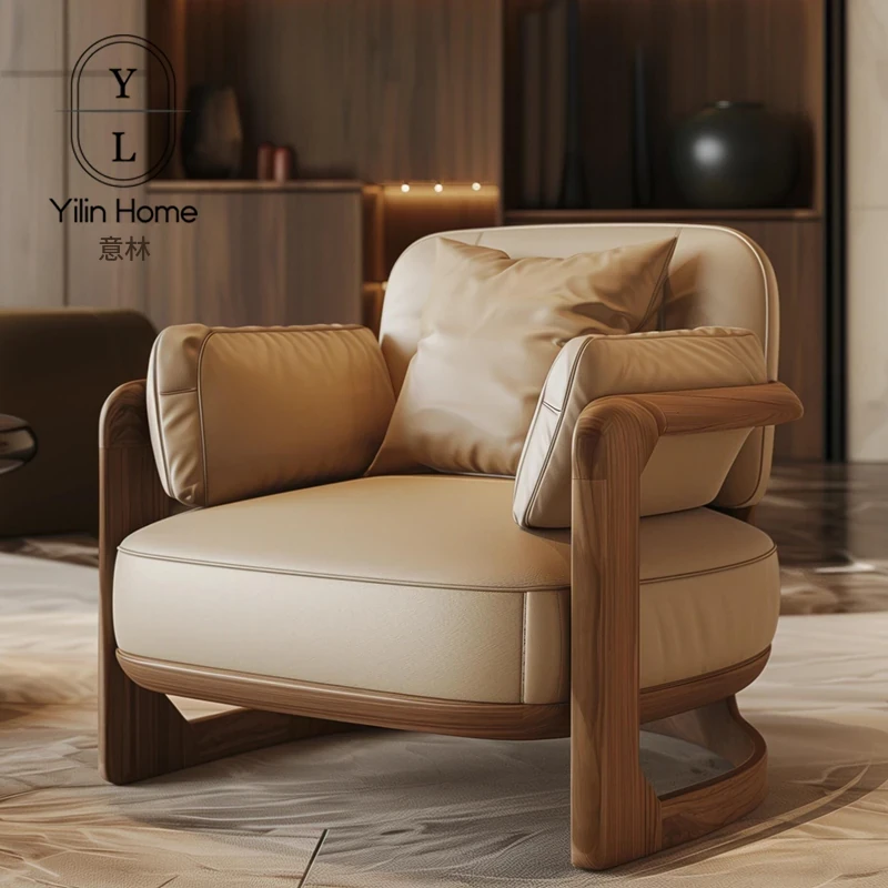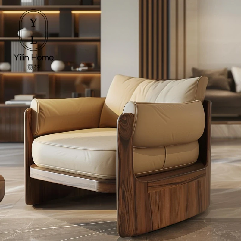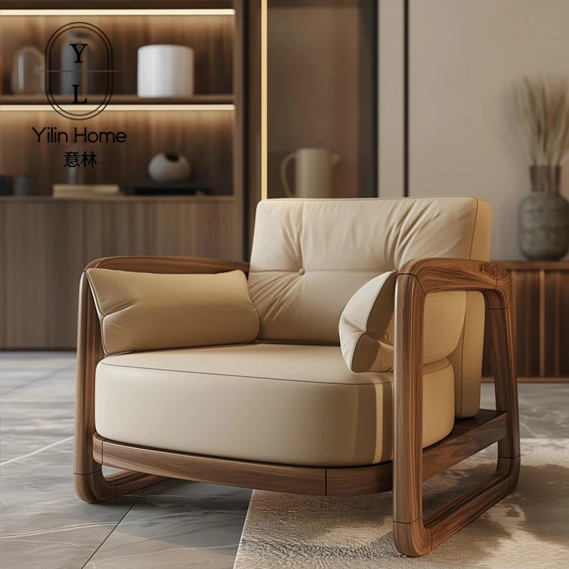 新中式スタイルのブラックウォールナット製ソファチェア - 禅の雰囲気漂うリラックス空間に最適!商談や接待にもぴったりな実木製リビング用ラウンジチェアで、心地よいひとときをお楽しみください。