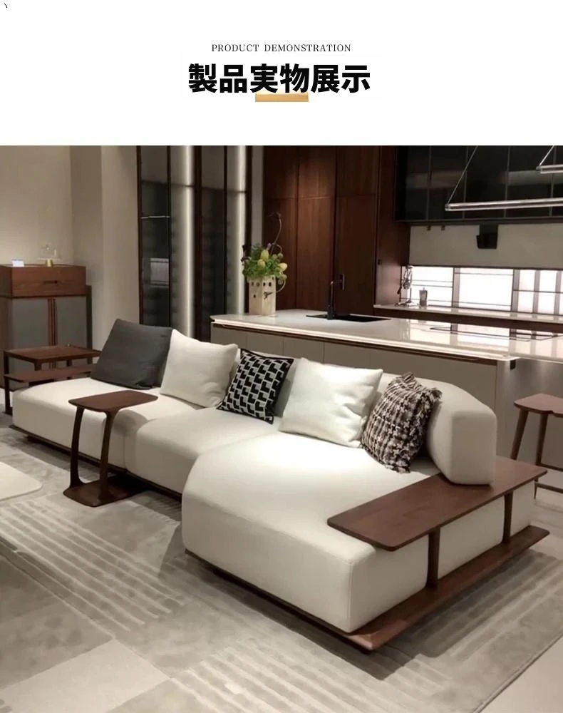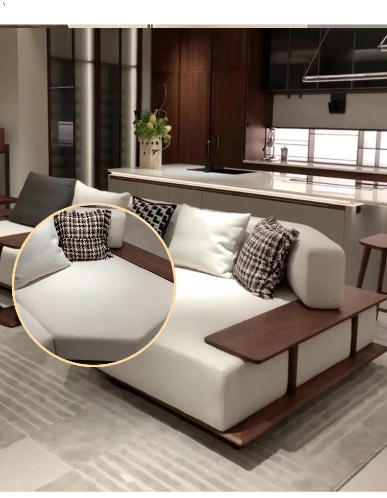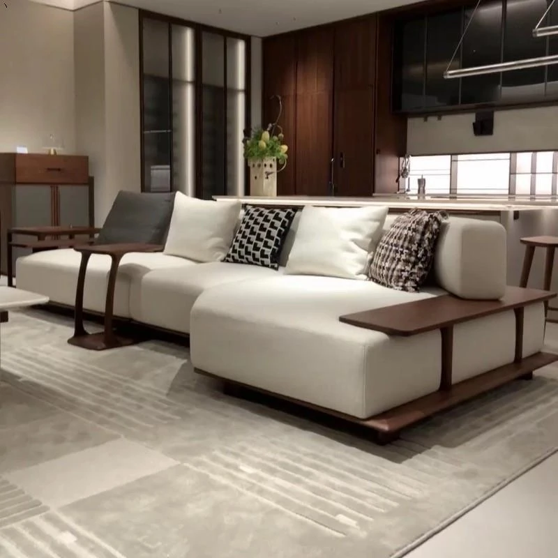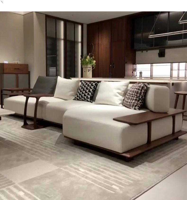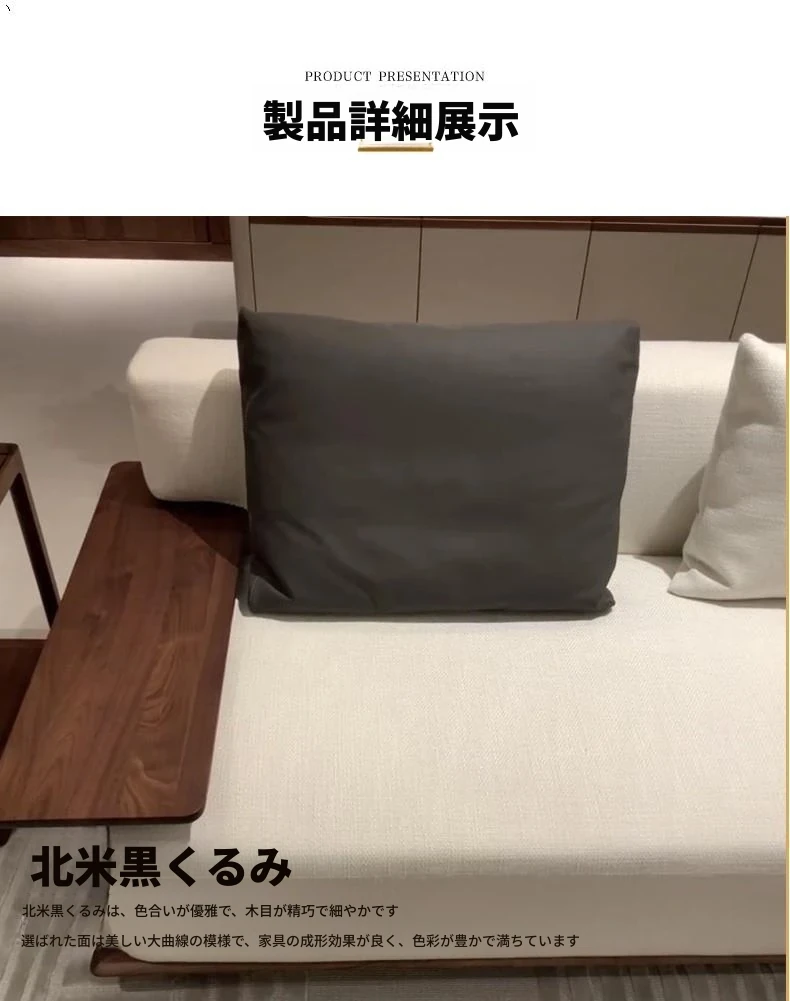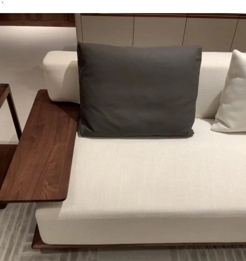 新中式デザインの北米ブラックウォールナットソファ - 宋風美学とイタリアンミニマリズムを融合した禅スタイルのオフィス用無垢材布製家具。洗練された空間を演出し、心地よいひとときを提供します。