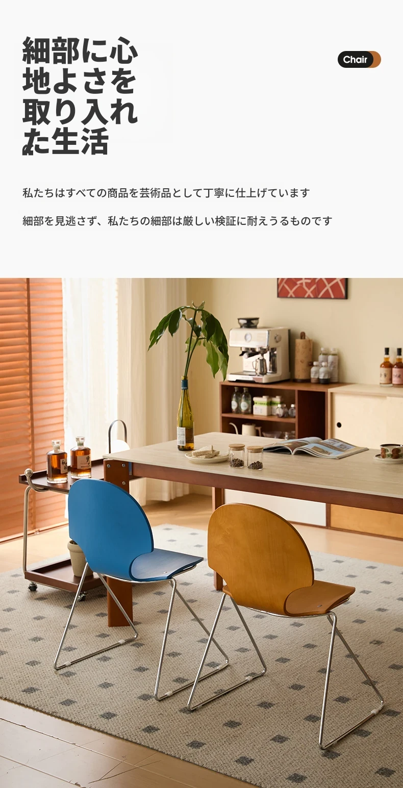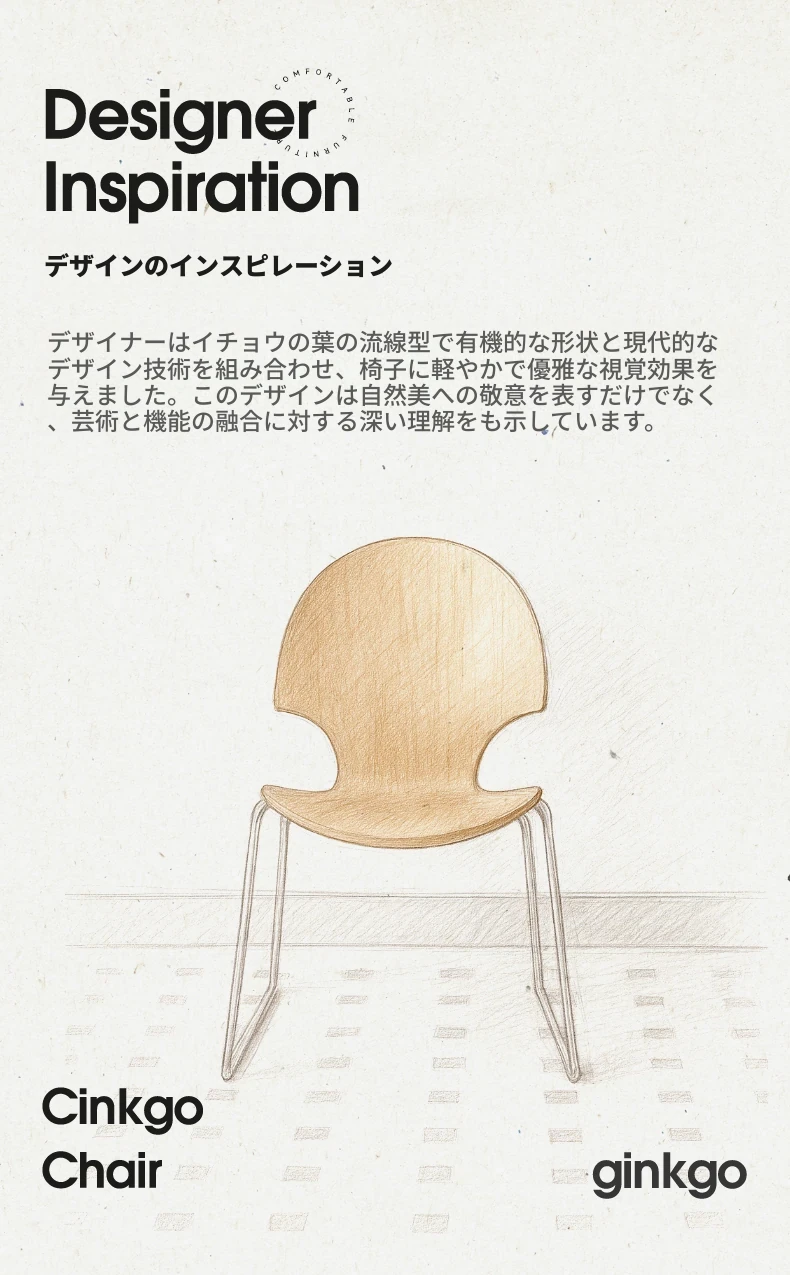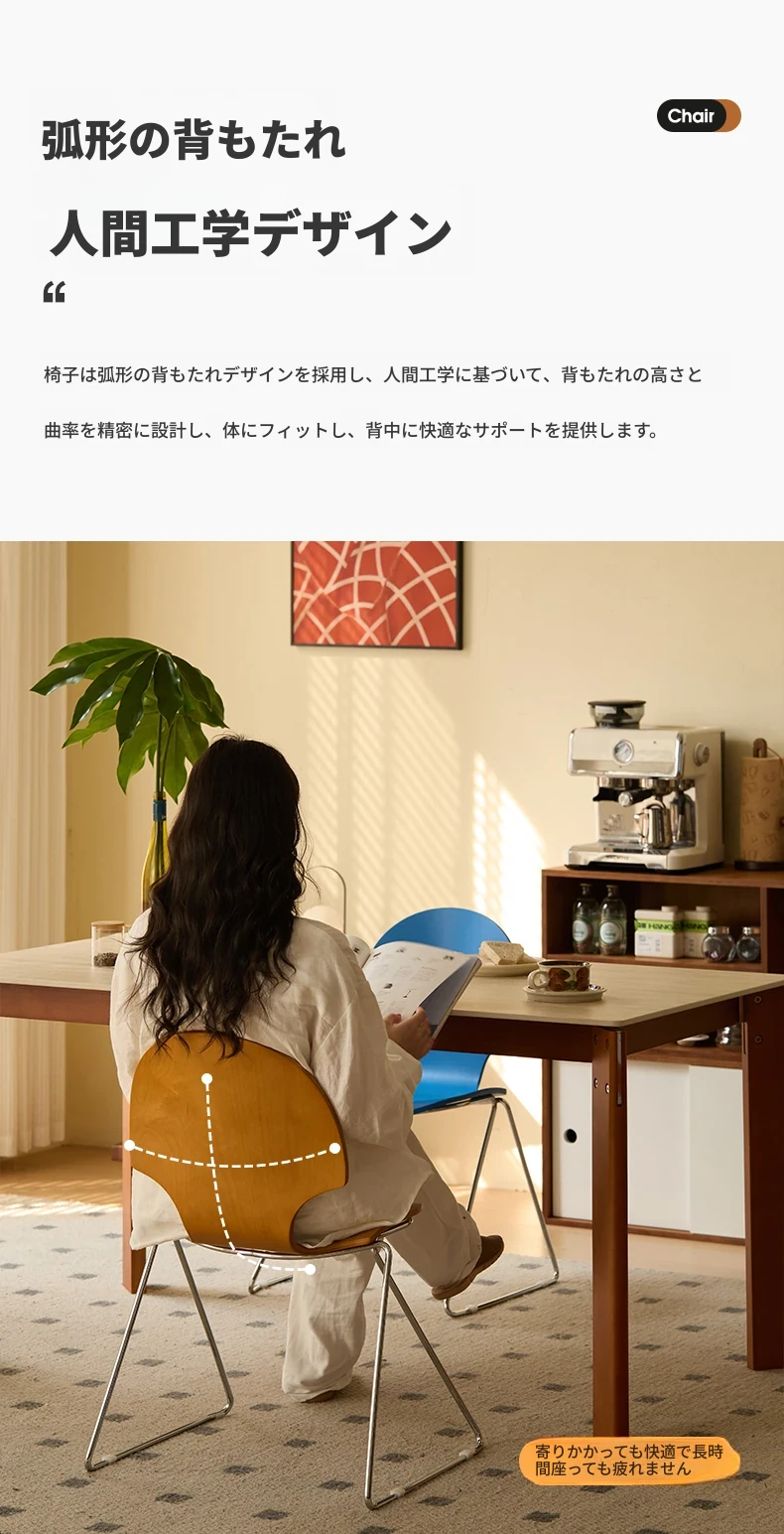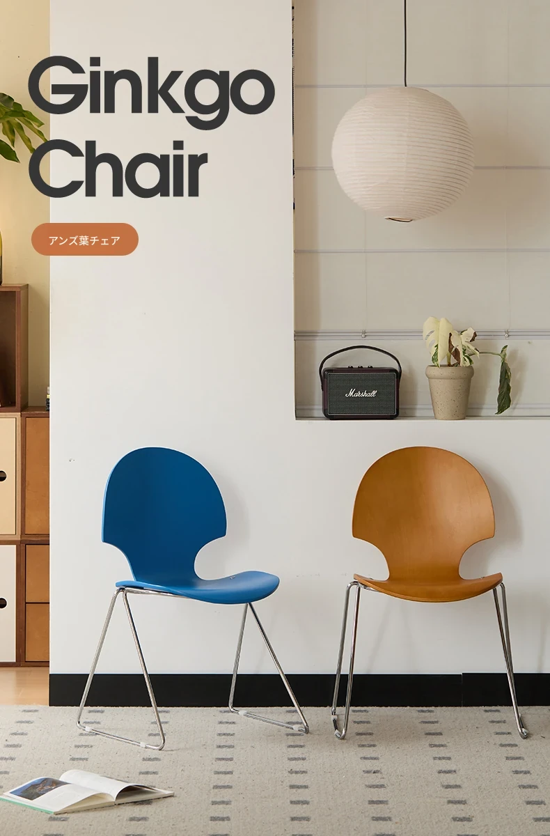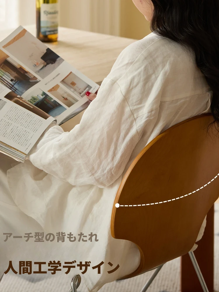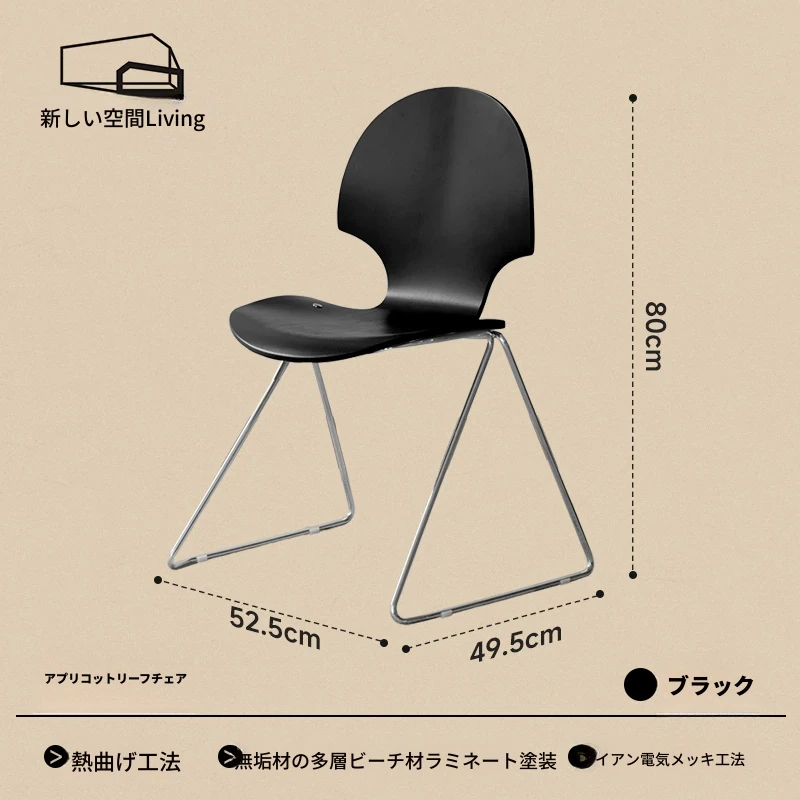 新しいスペース|杏の葉のデザインが魅力的な中古バウハウス風の無垢材ダイニングチェア。北欧のレトロなデザインで、家庭の食卓に華やかさをプラス!快適な背もたれ付きで、食事の時間をより特別に。