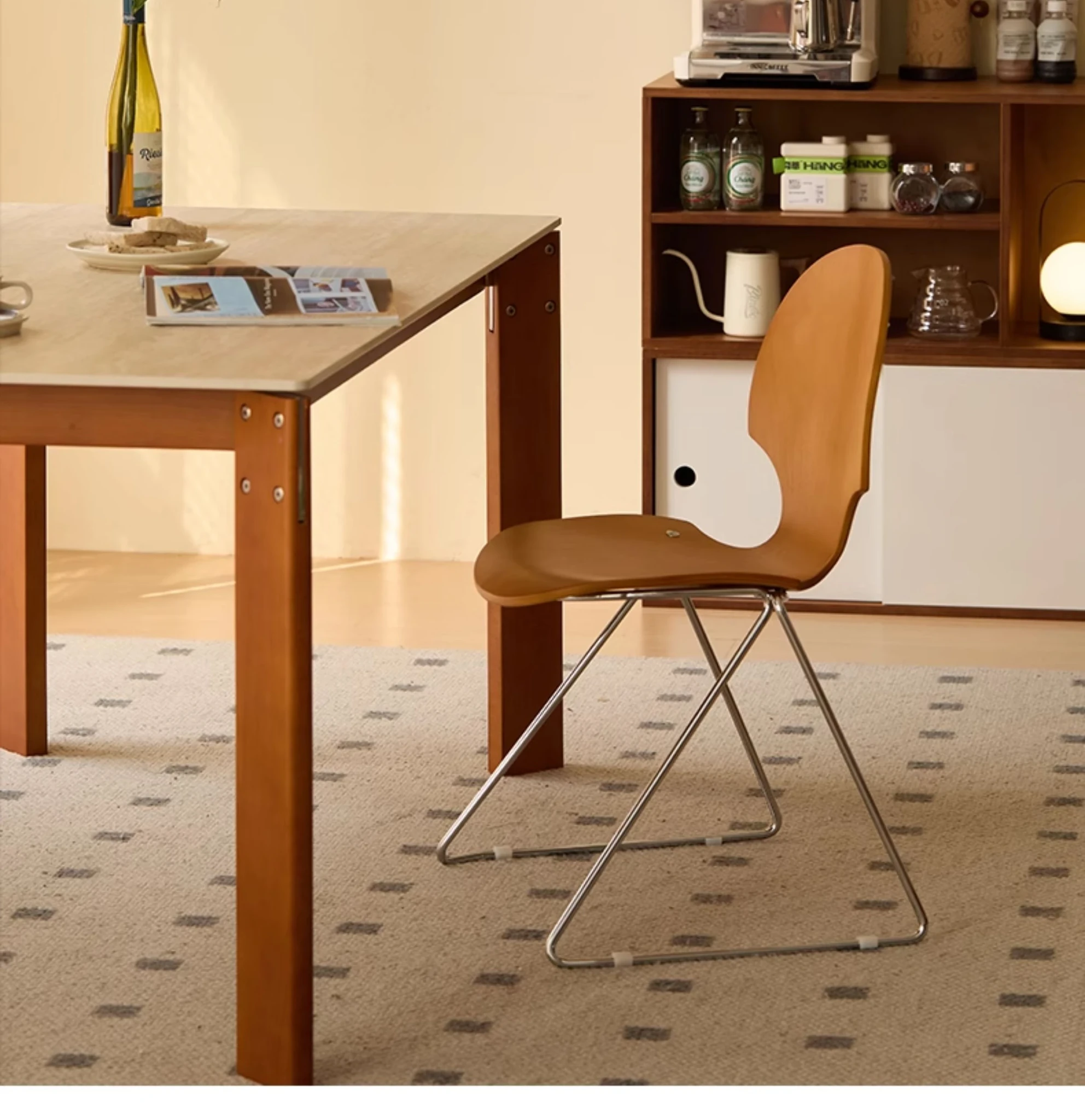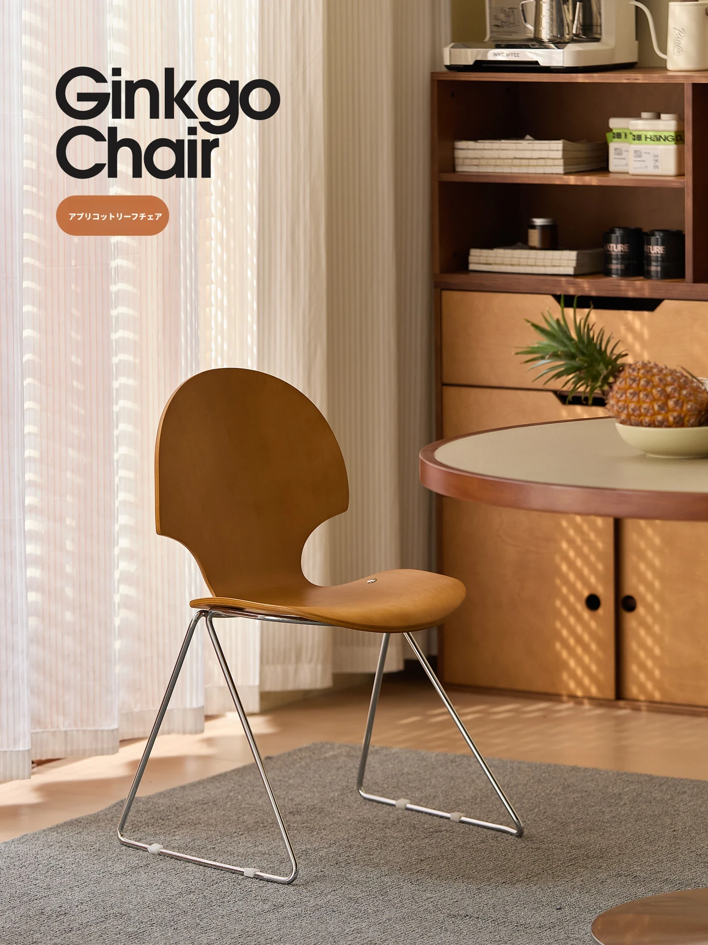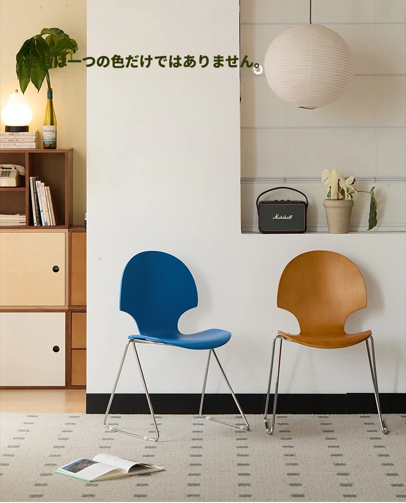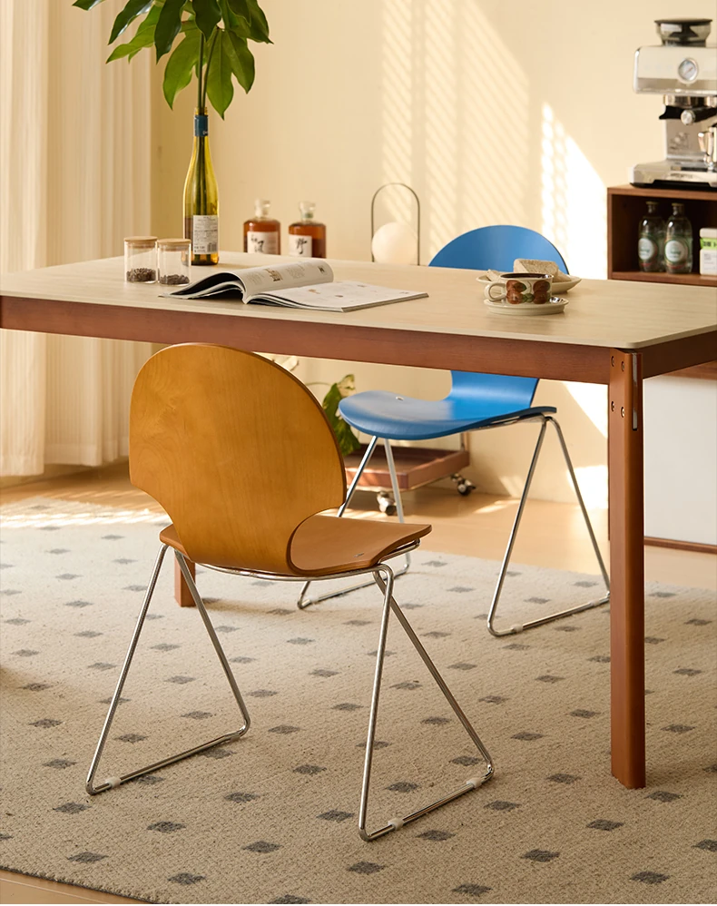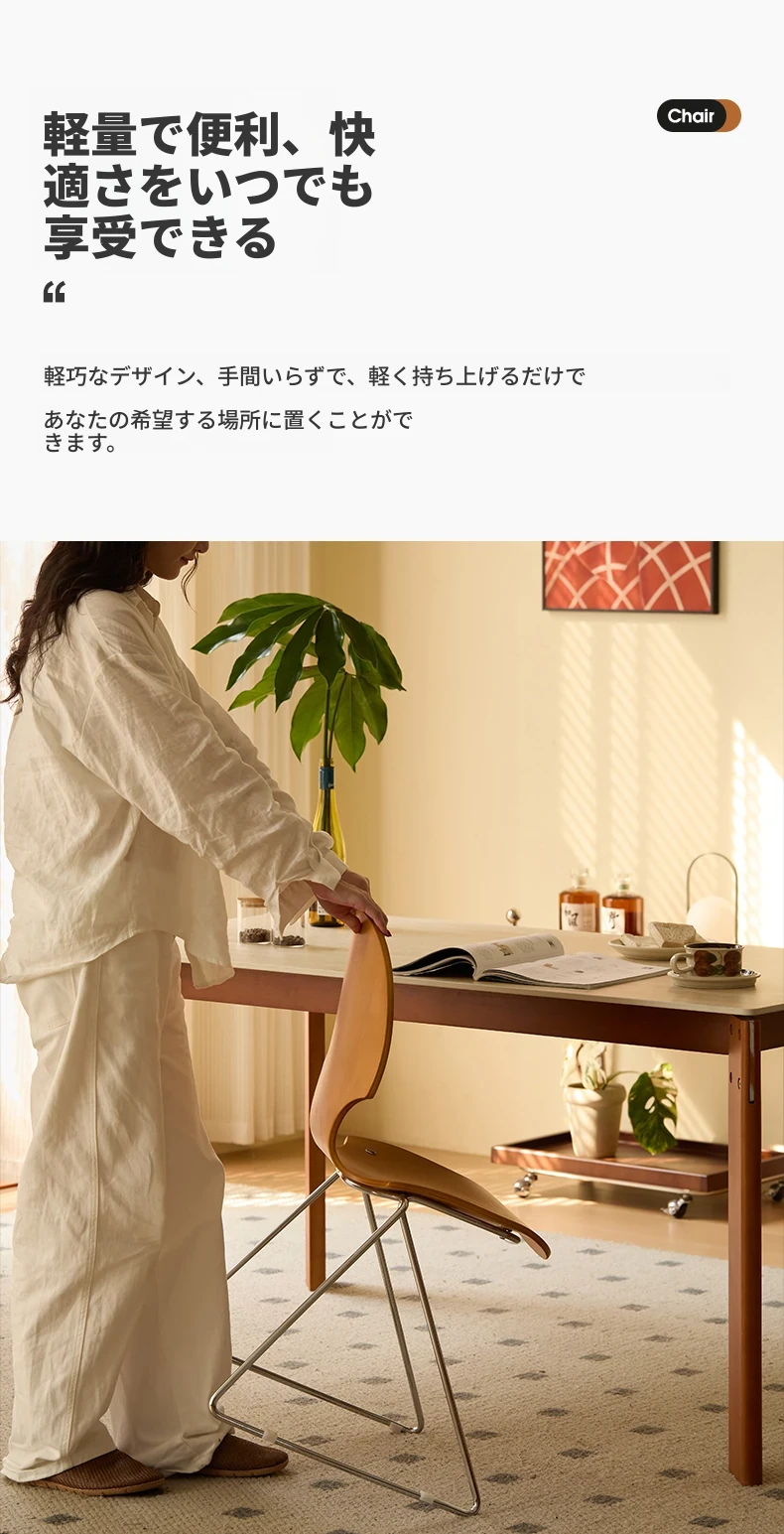 新しいスペース|杏の葉のデザインが魅力的な中古バウハウス風の無垢材ダイニングチェア。北欧のレトロなデザインで、家庭の食卓に華やかさをプラス!快適な背もたれ付きで、食事の時間をより特別に。