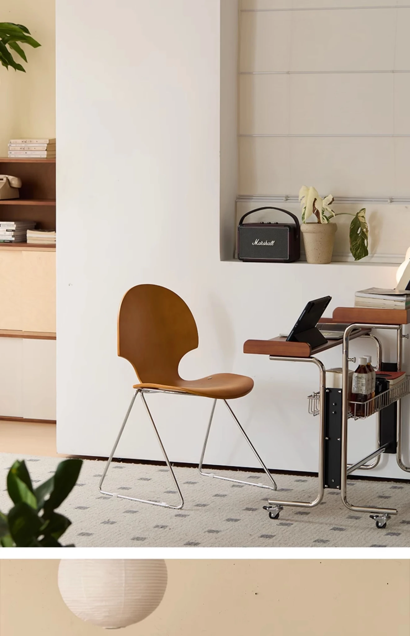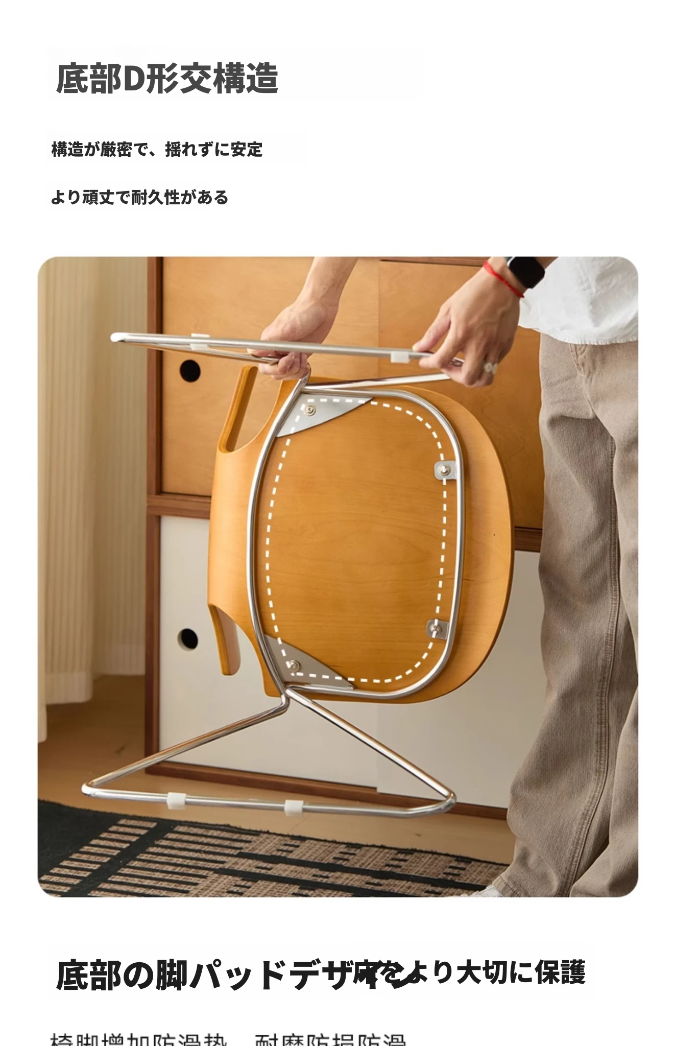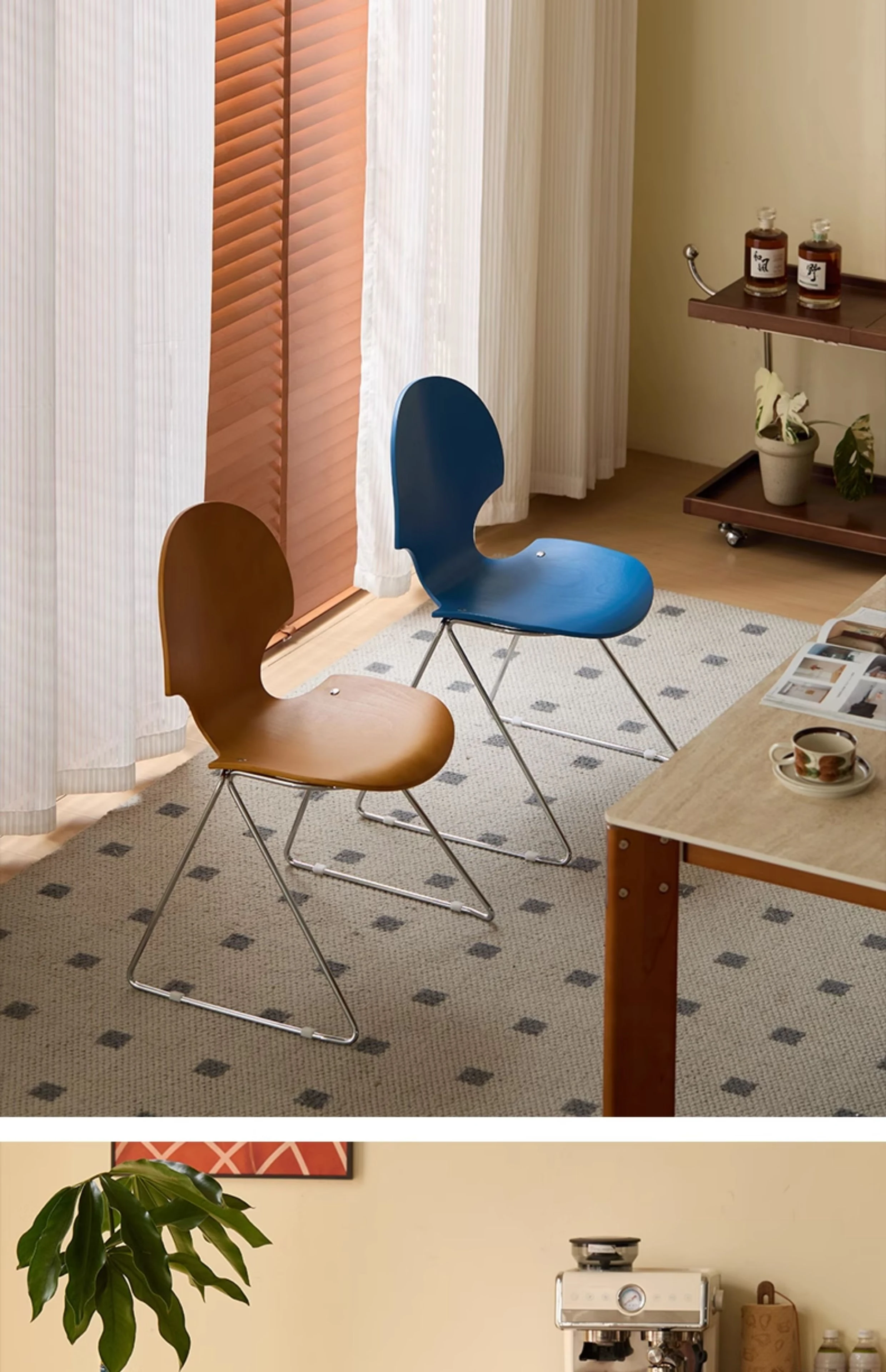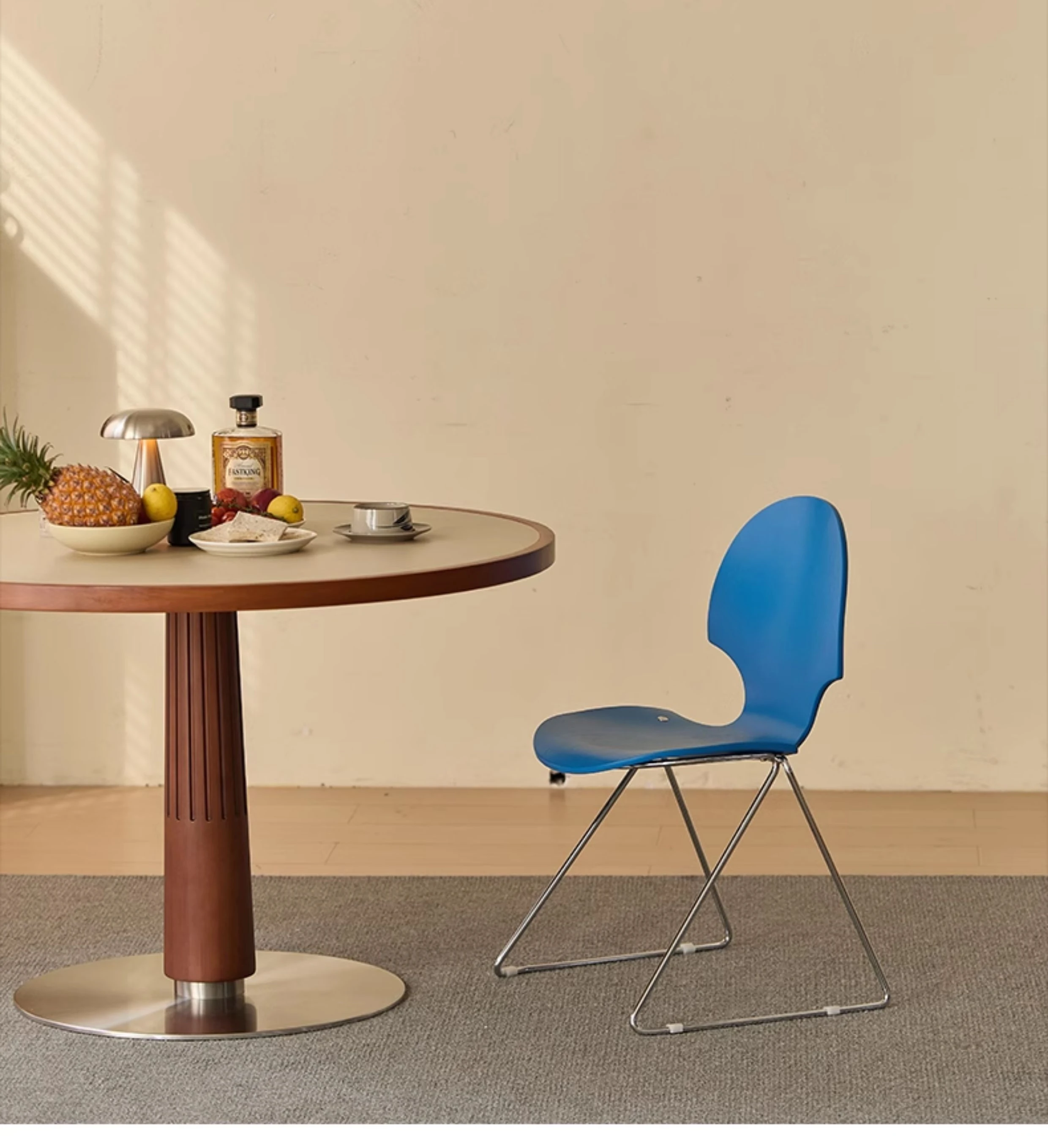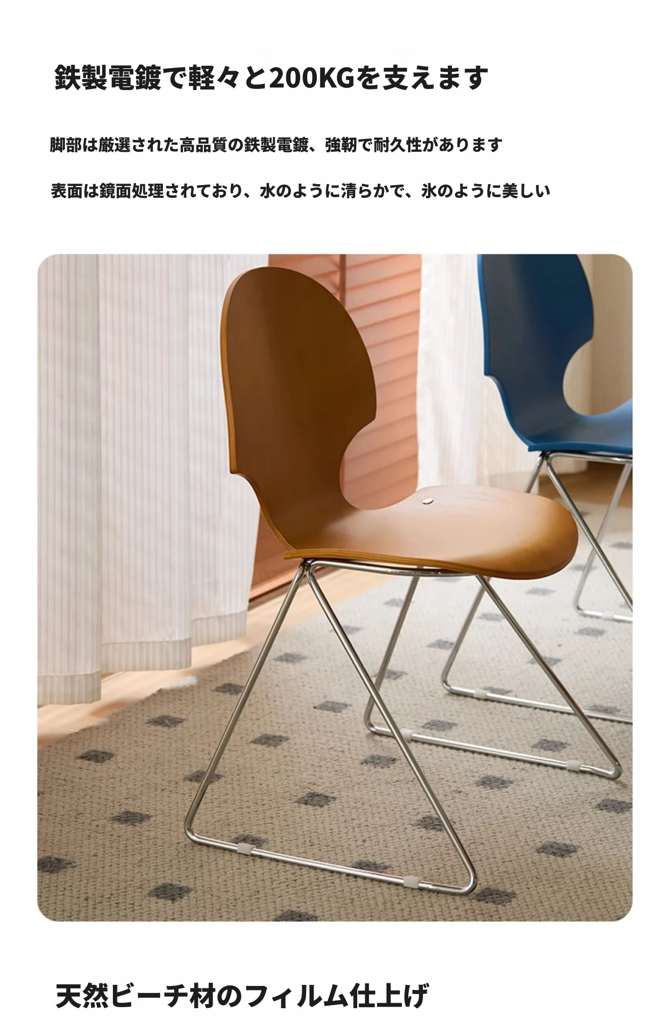 新しいスペース|杏の葉のデザインが魅力的な中古バウハウス風の無垢材ダイニングチェア。北欧のレトロなデザインで、家庭の食卓に華やかさをプラス!快適な背もたれ付きで、食事の時間をより特別に。