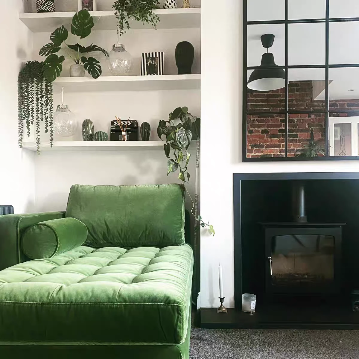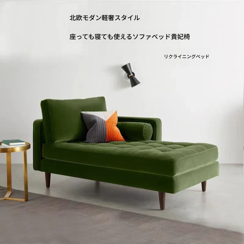 北欧モダンな小型貴妃椅子 - おしゃれなオリーブグリーンの貴妃ソファ、寝室にぴったりなシンプルで洗練されたデザイン。あなたの空間を特別に演出します!