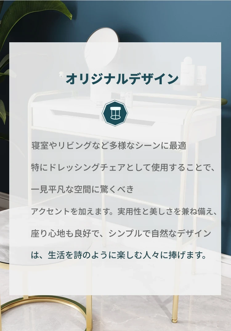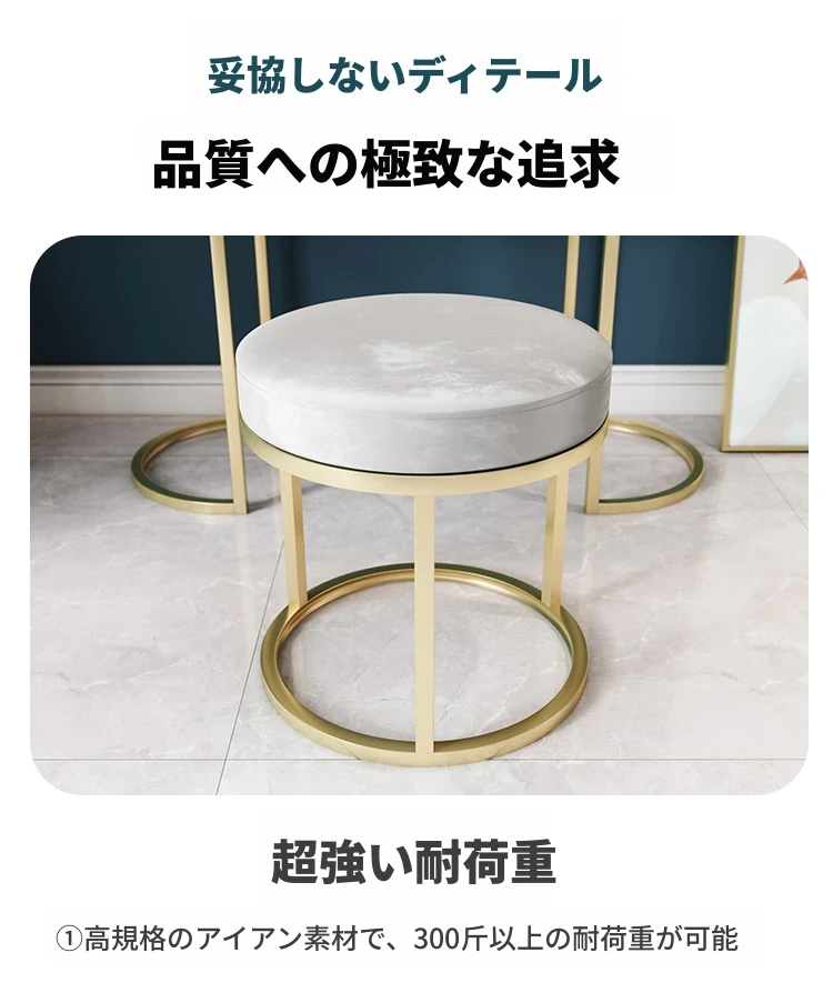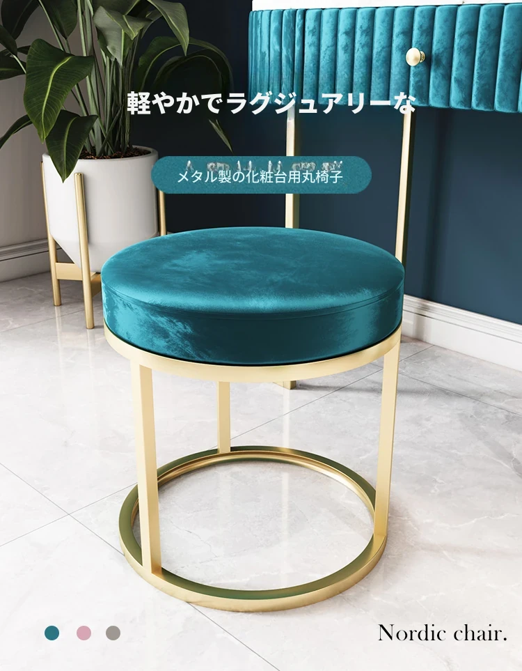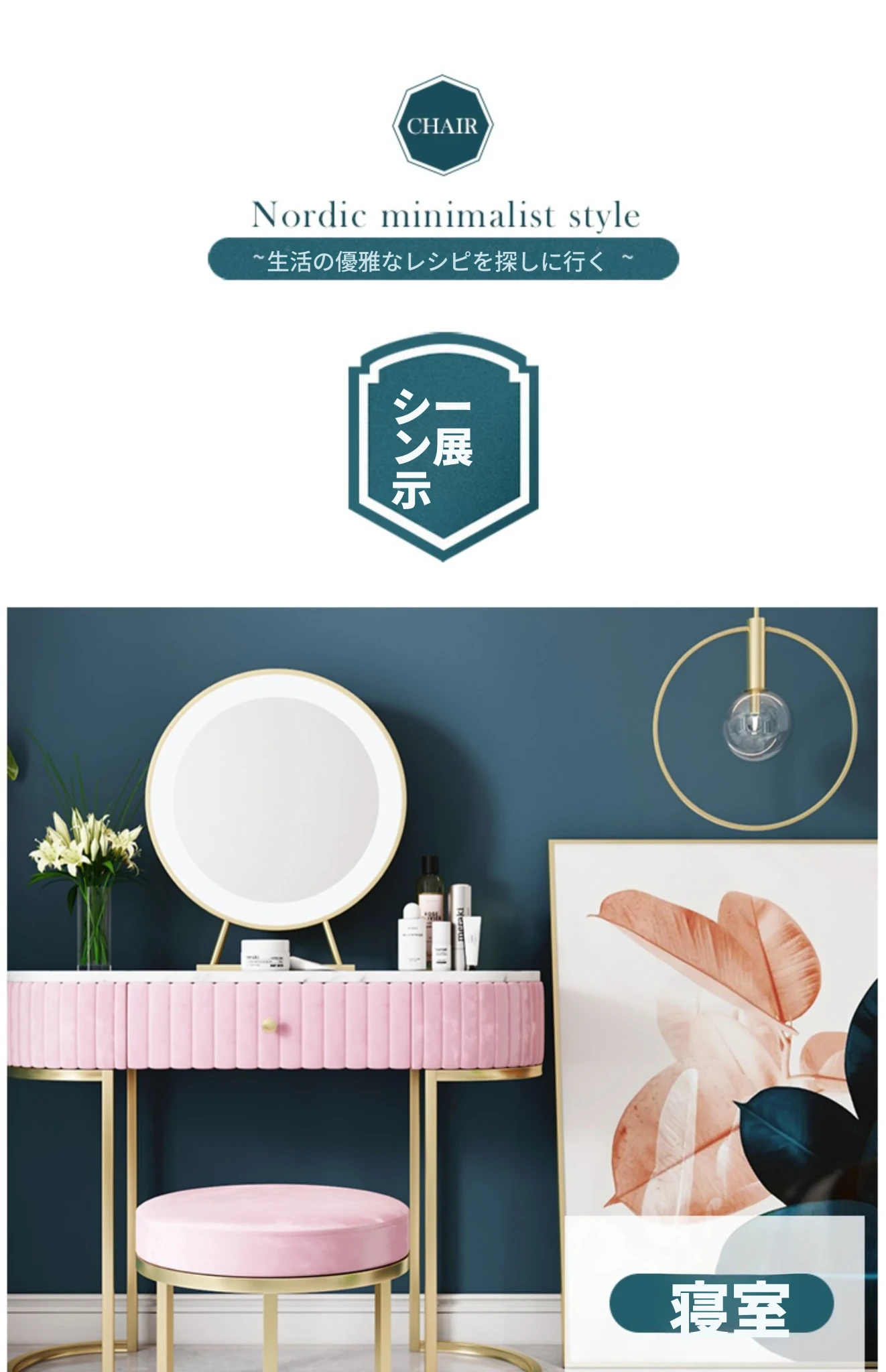 おしゃれな北欧風メイクスツール|シンプルでモダンなデザインのドレッサー椅子|寝室にぴったりの化粧台用スツール|インスタ映えするアイテムで、あなたのビューティータイムを特別に!