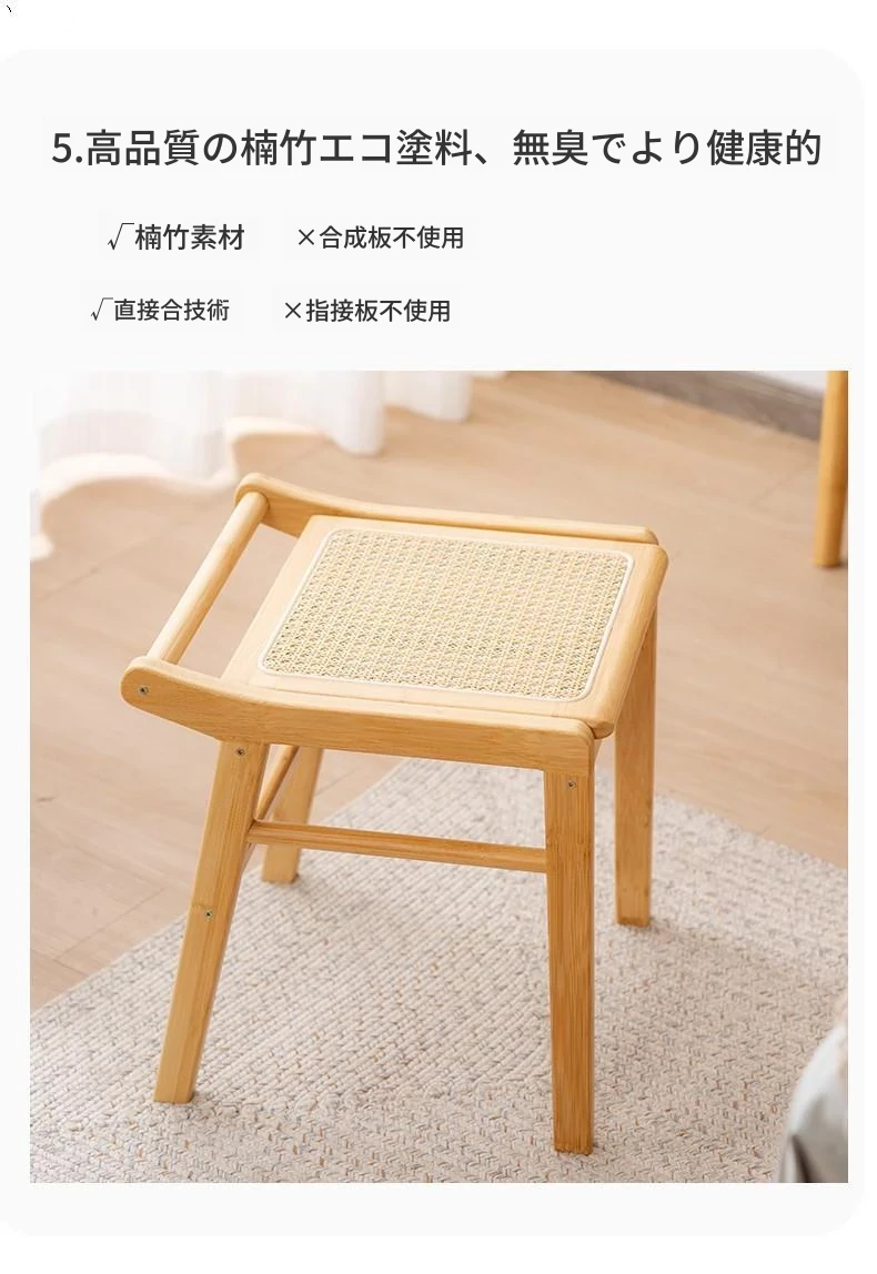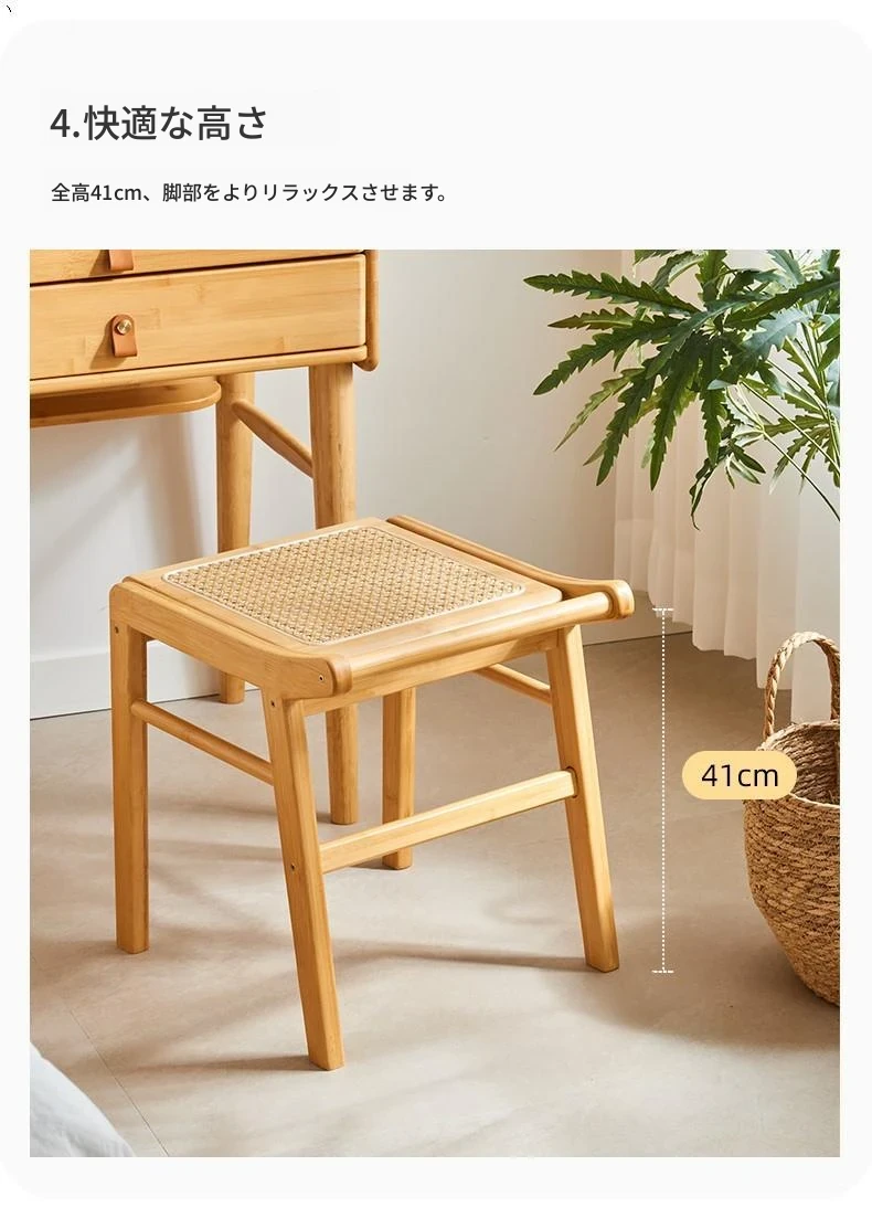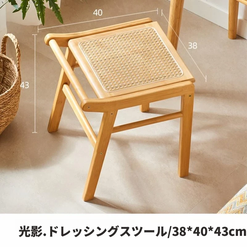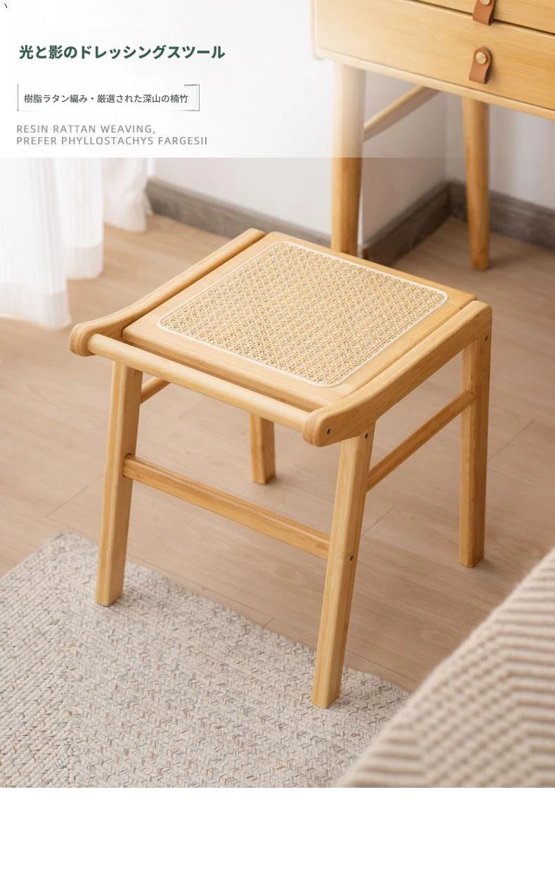 北欧風の編み込みスツール|おしゃれなリビング用・小型の木製メイクスツール|和風デザインの化粧台用スツール|インスタ映えするおしゃれな低いスツール