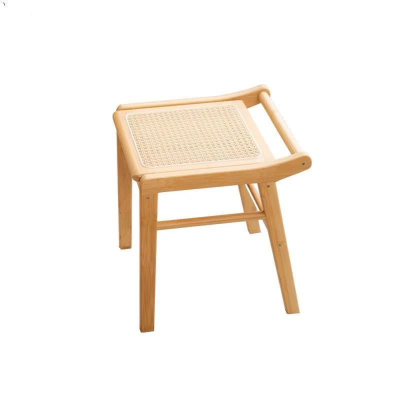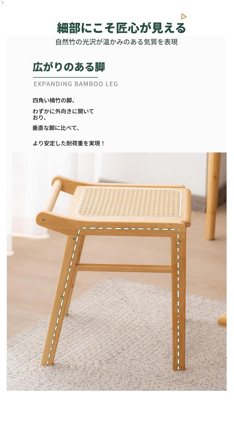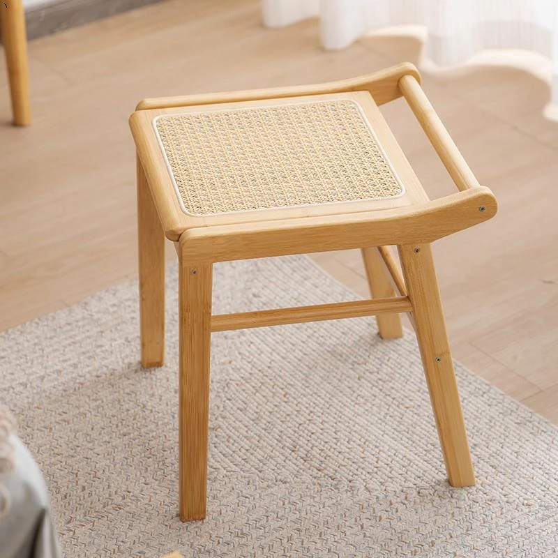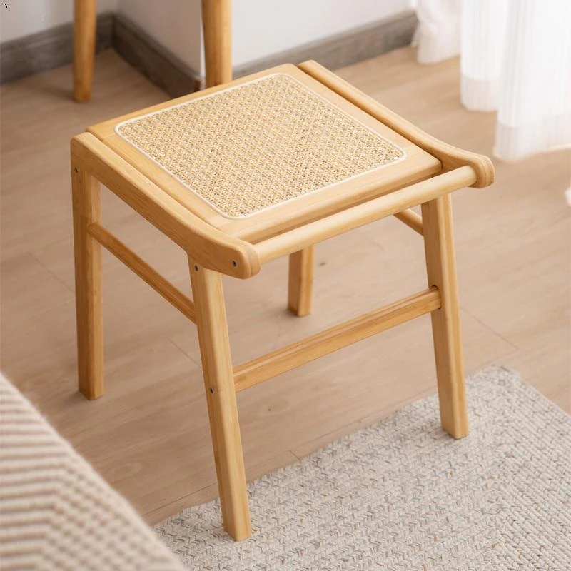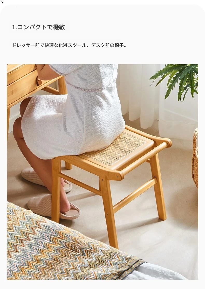 北欧風の編み込みスツール|おしゃれなリビング用・小型の木製メイクスツール|和風デザインの化粧台用スツール|インスタ映えするおしゃれな低いスツール
