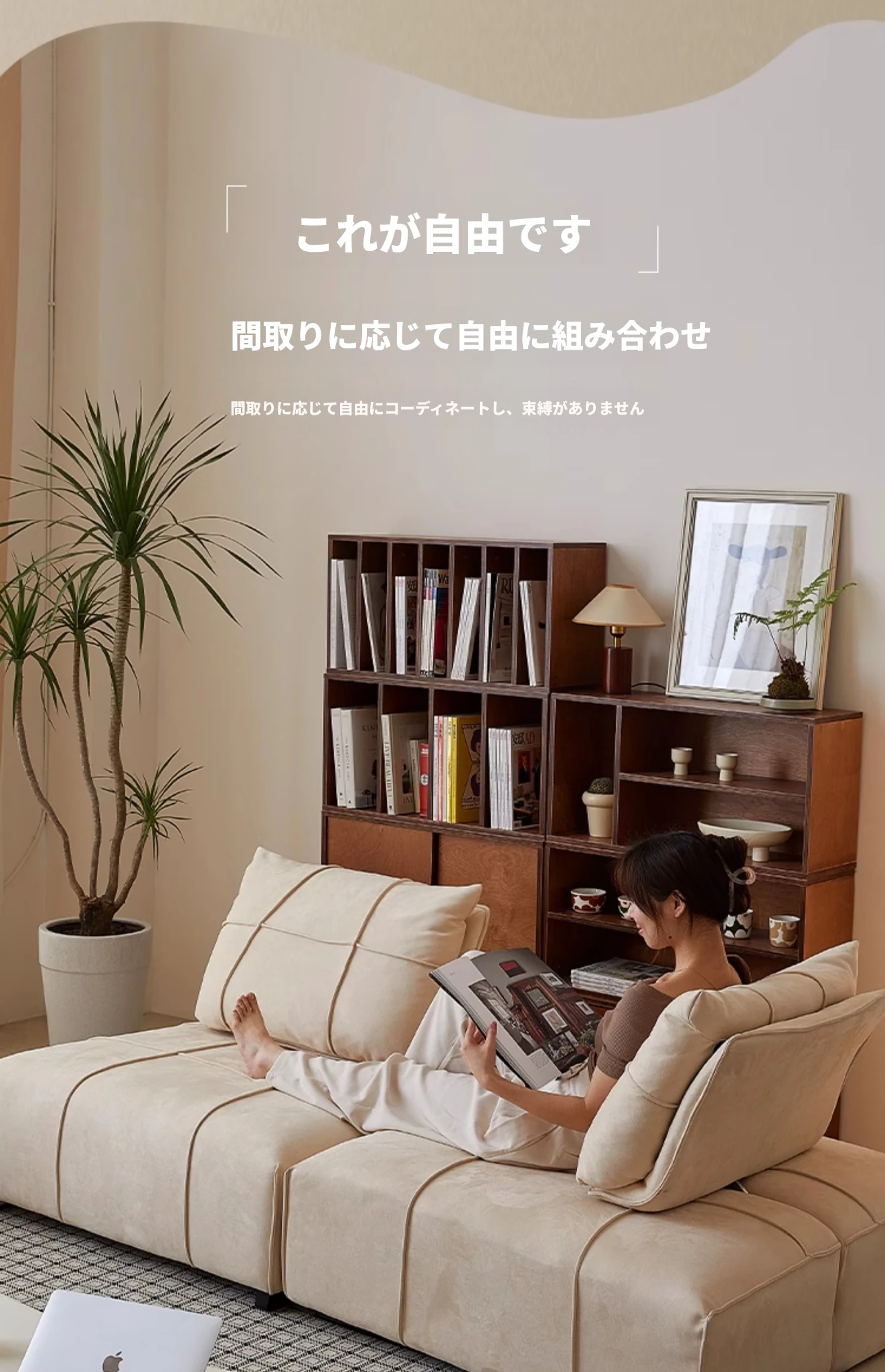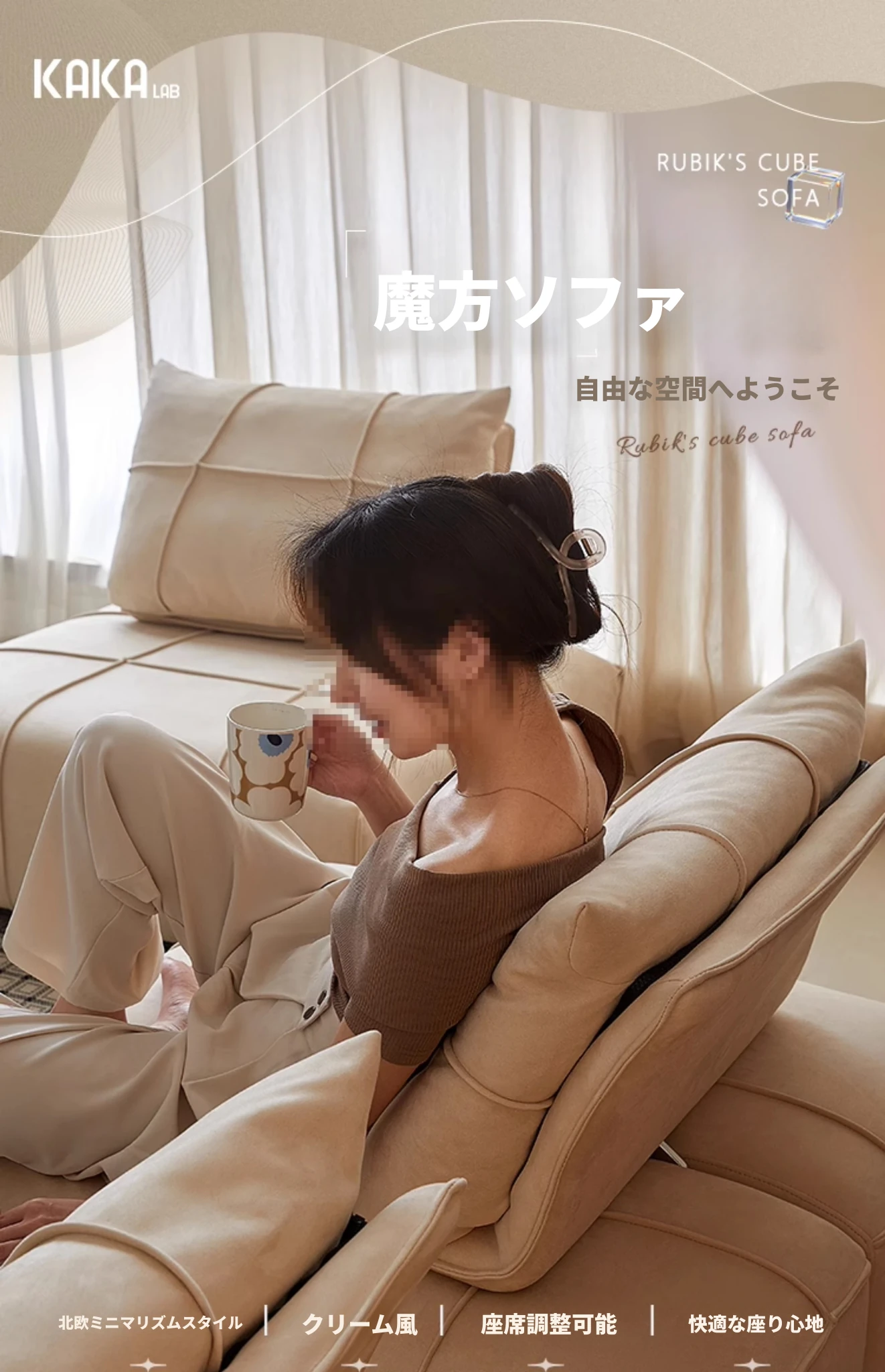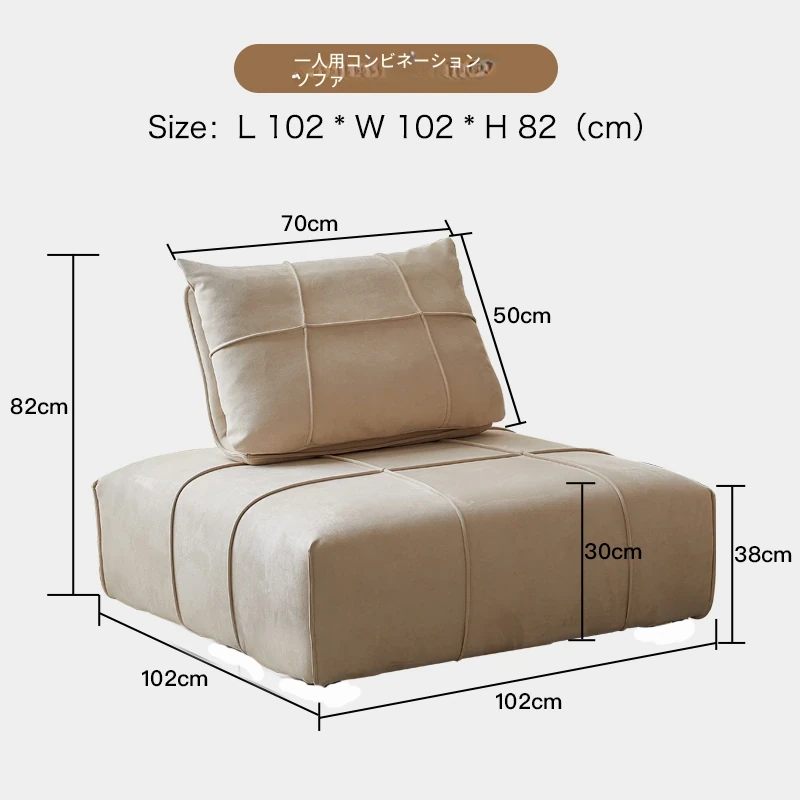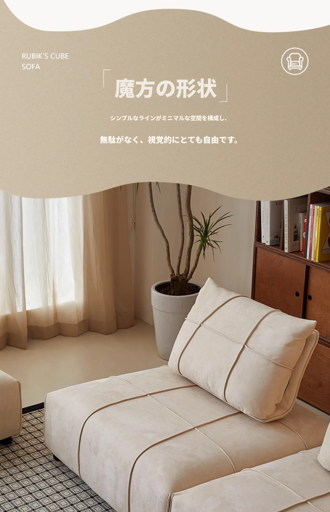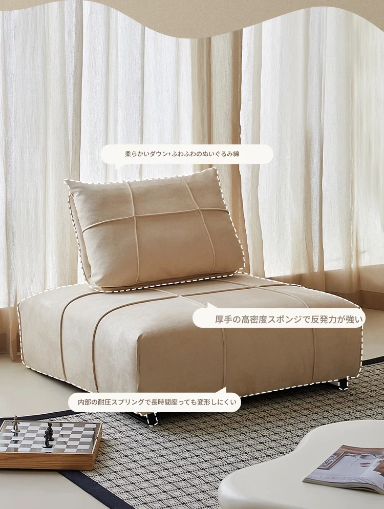 パナマ風シンプル小型タタミソファー|自由に組み合わせ可能な豆腐型デザイン|クリーミーな雰囲気でリラックスできるリビング用|背もたれ付き&スライド式で使い勝手抜群!