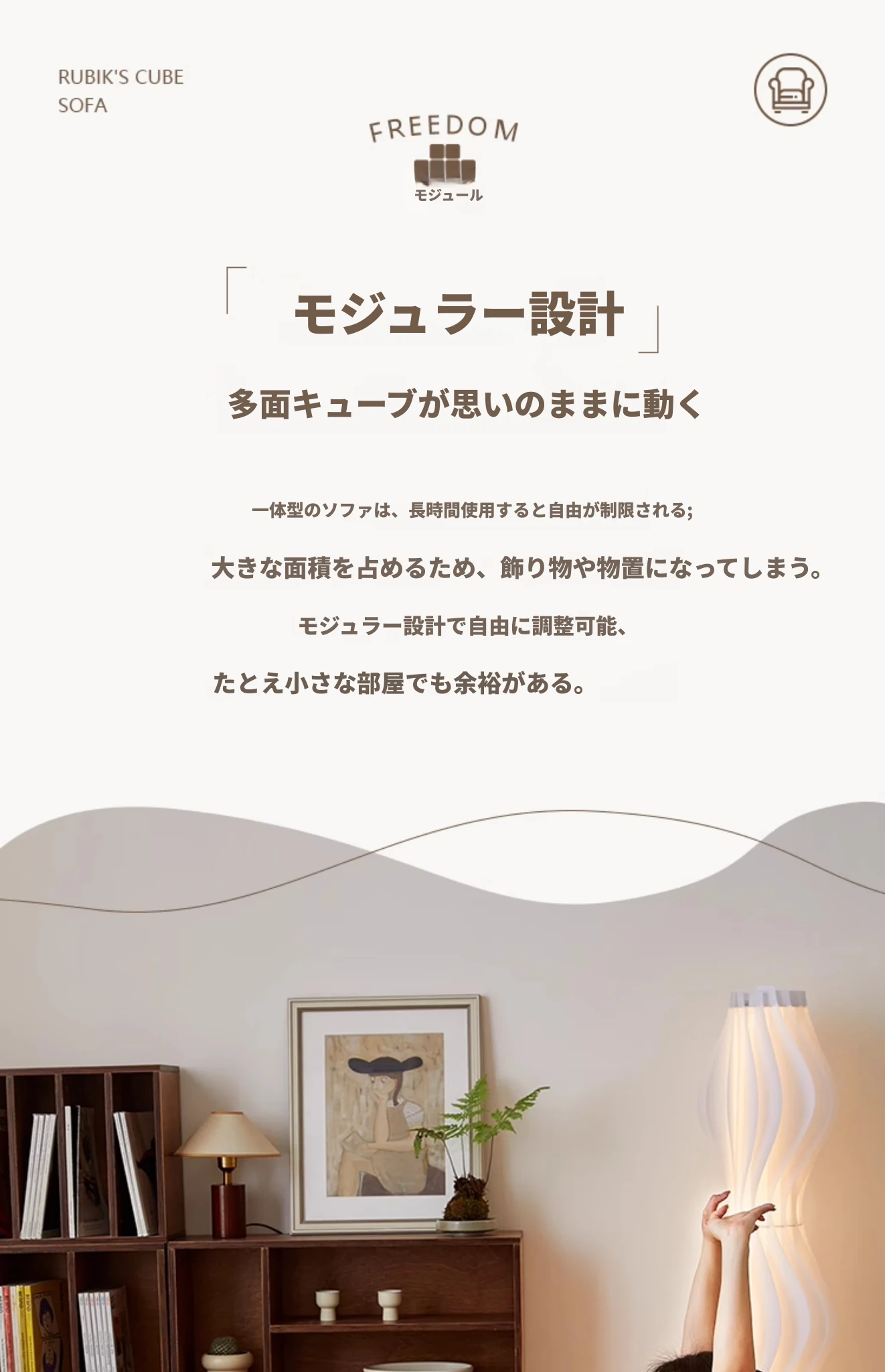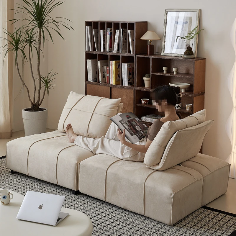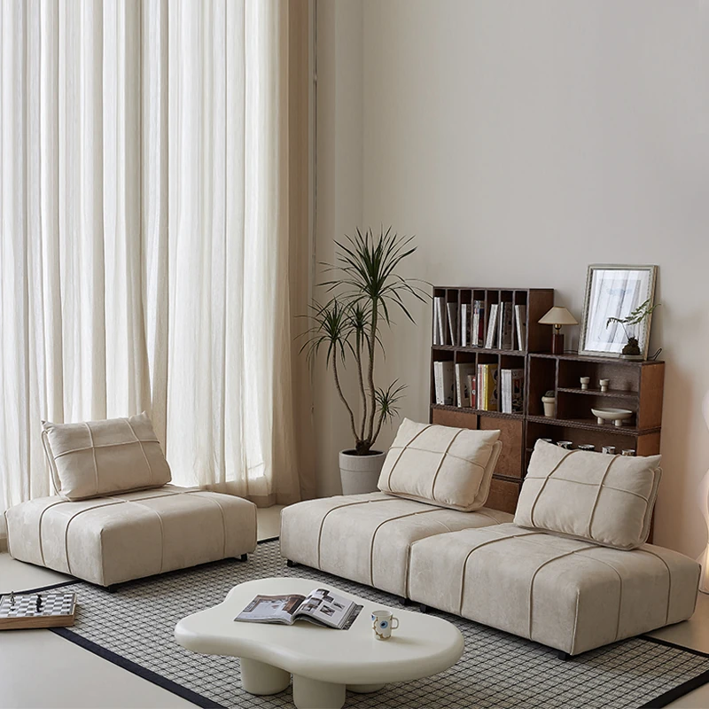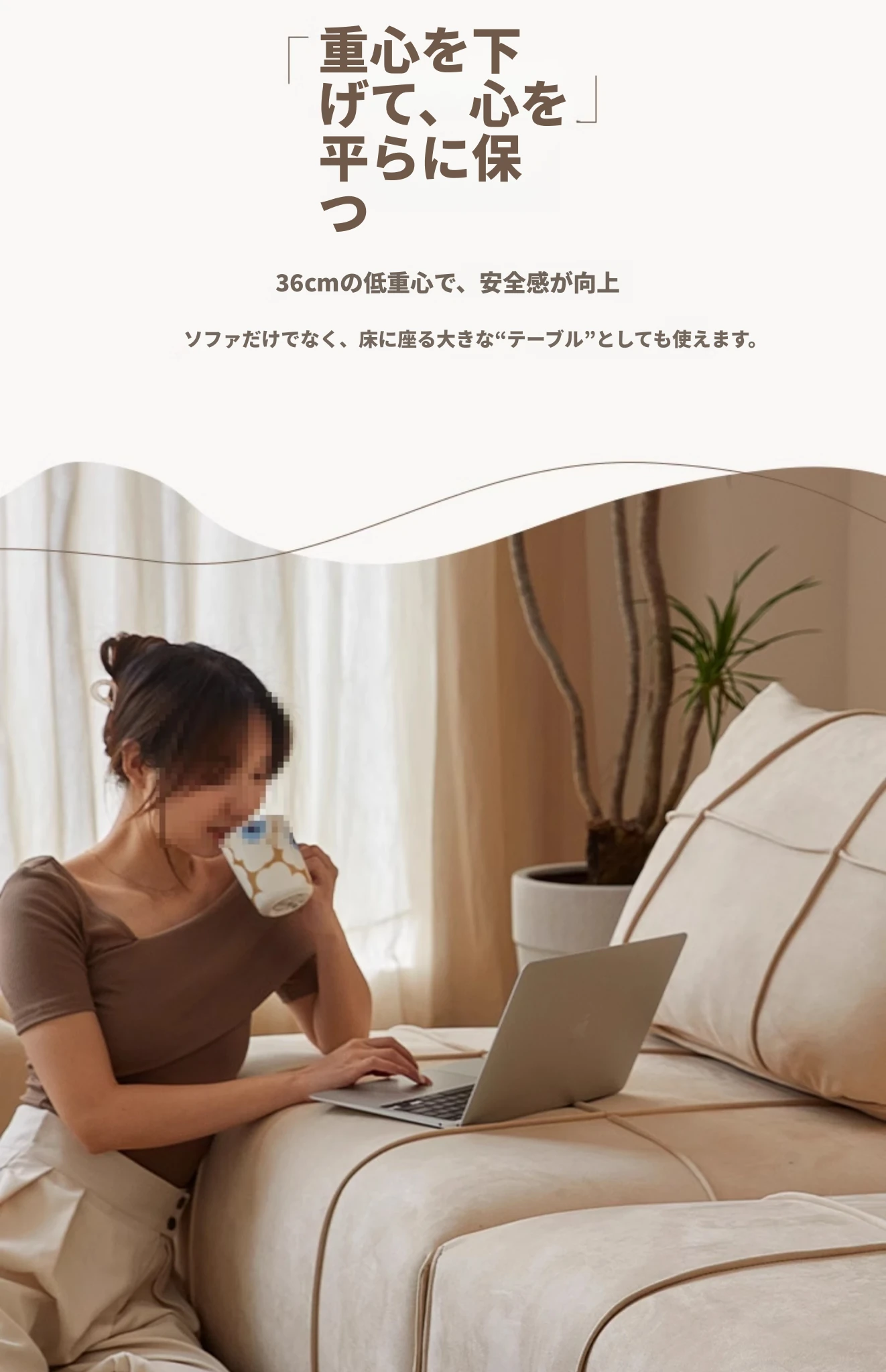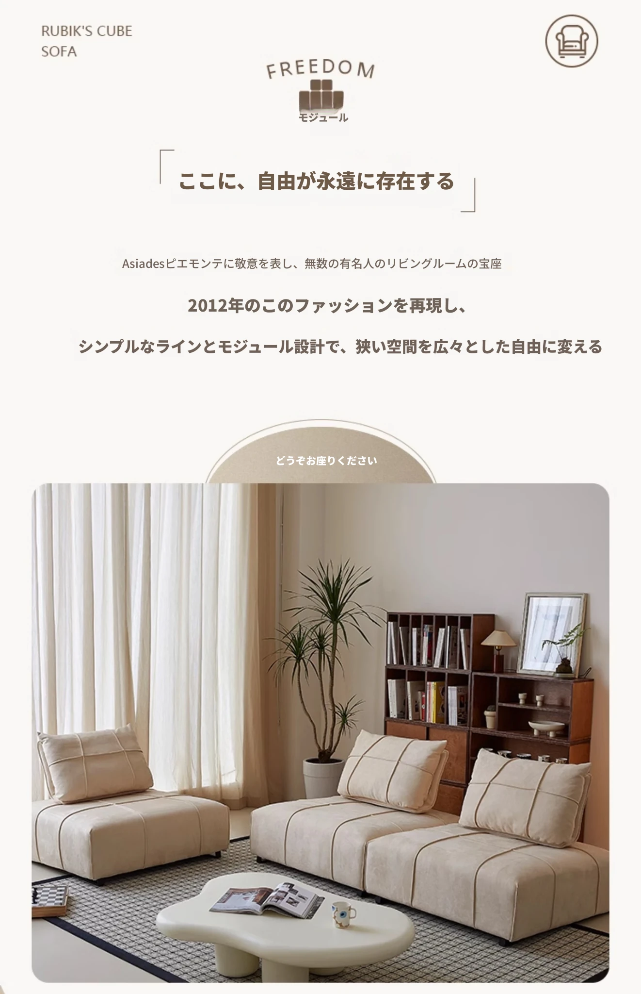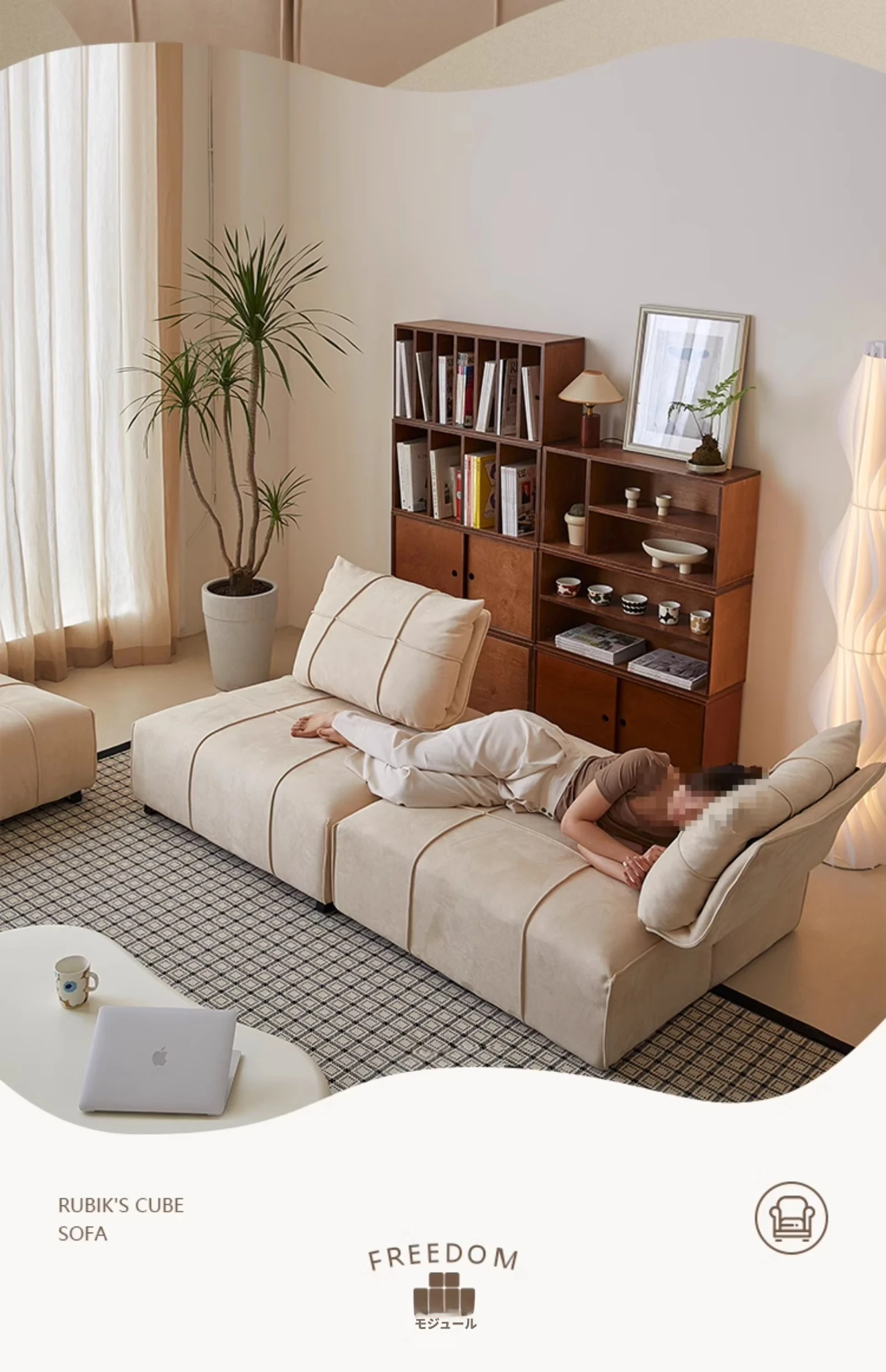 パナマ風シンプル小型タタミソファー|自由に組み合わせ可能な豆腐型デザイン|クリーミーな雰囲気でリラックスできるリビング用|背もたれ付き&スライド式で使い勝手抜群!