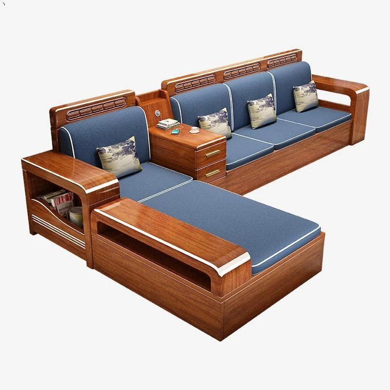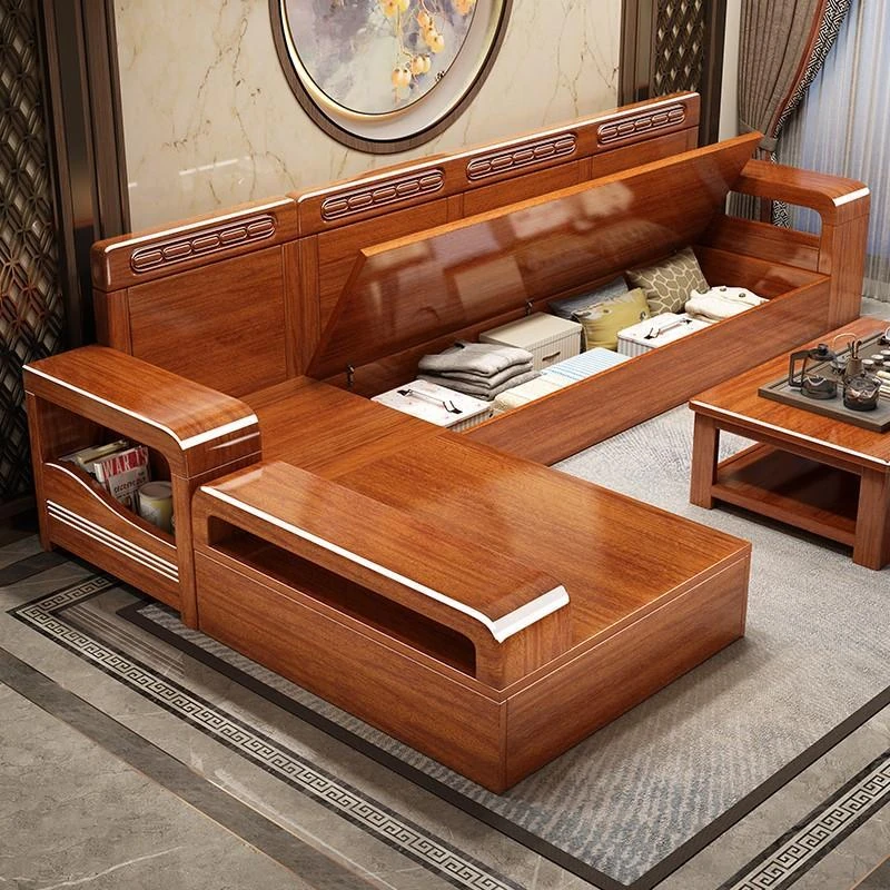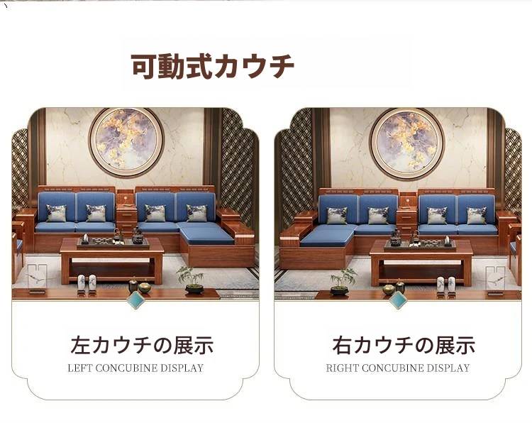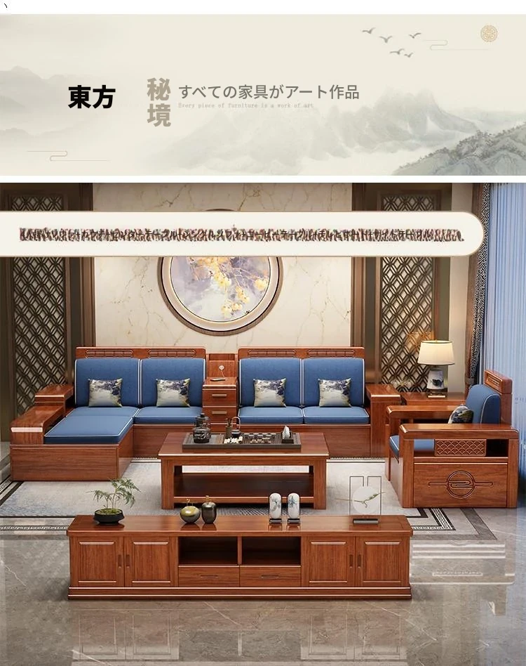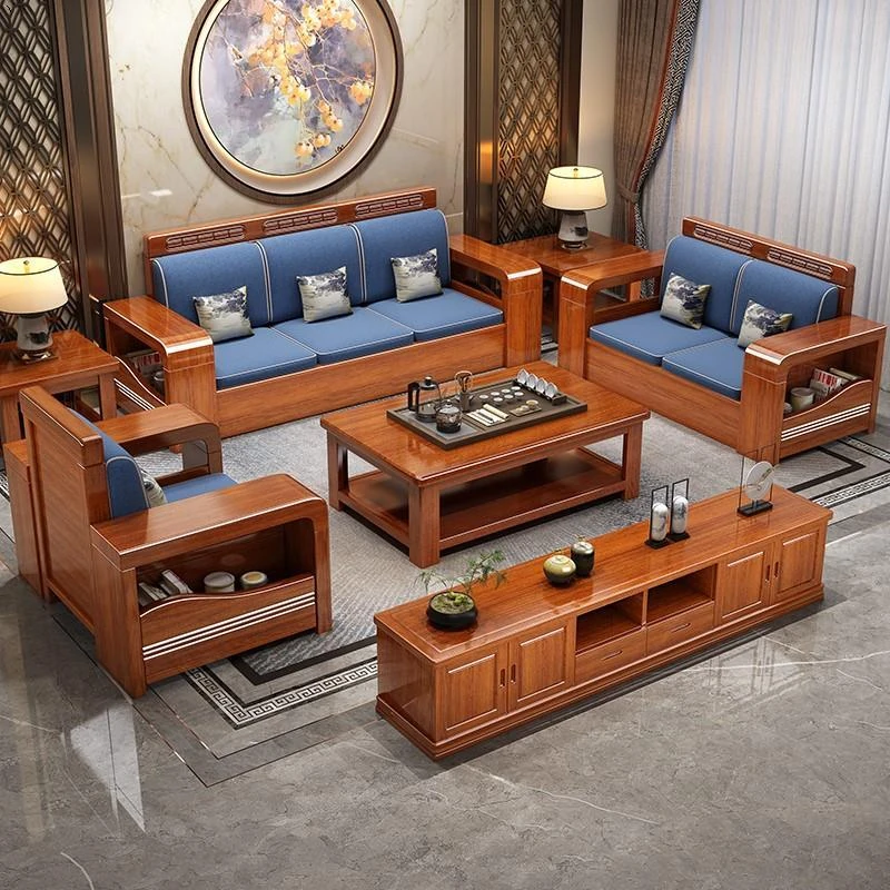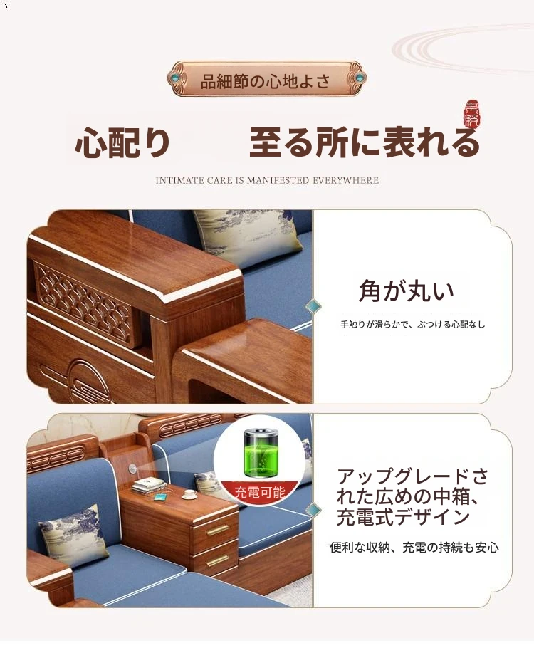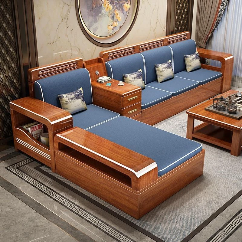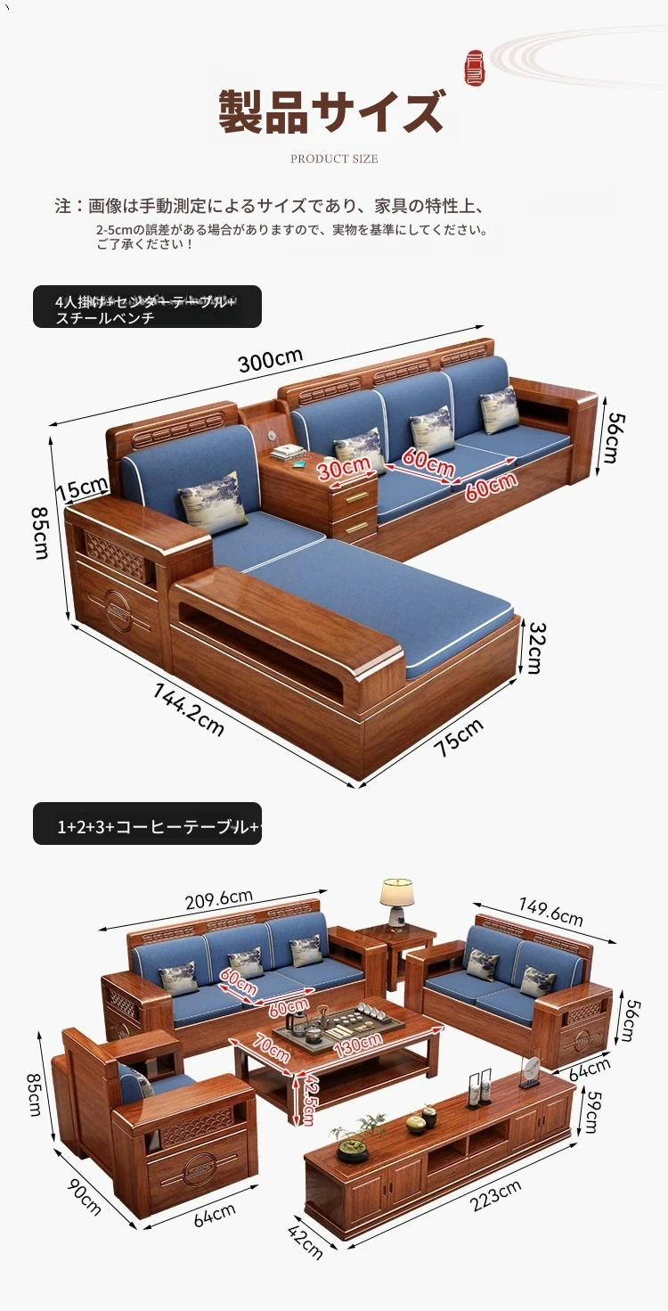 全実木製ソファー|新しい中華スタイルのリビング用|冬夏兼用の収納付きコンパクトな布製木製ソファー|小さな家にぴったり!快適な空間を演出し、スタイリッシュなインテリアを実現します!