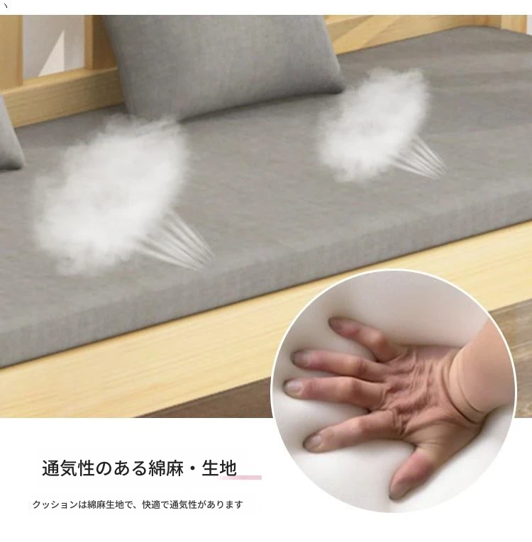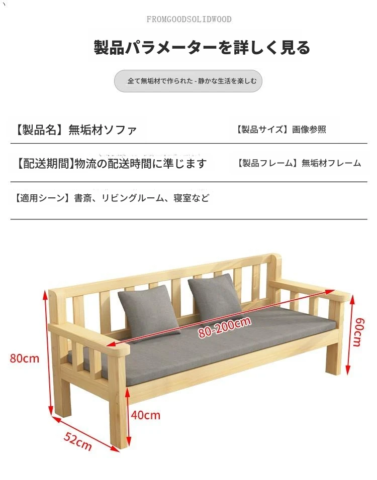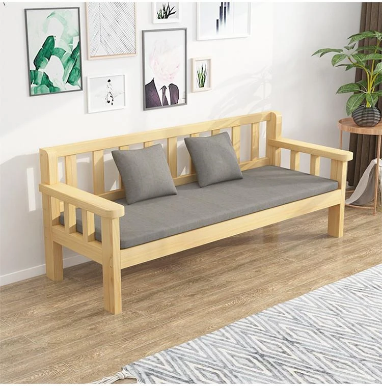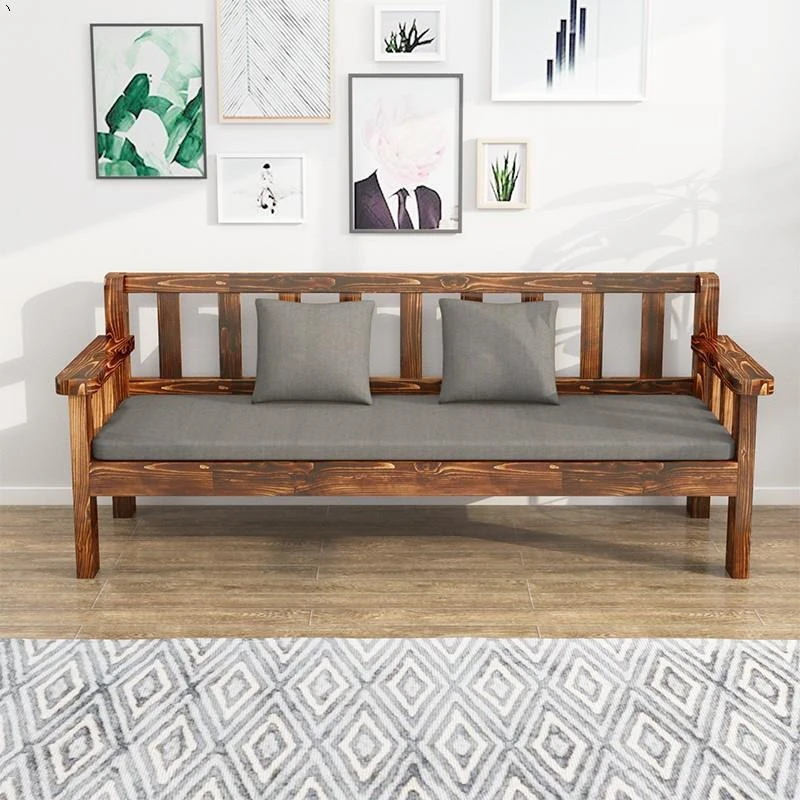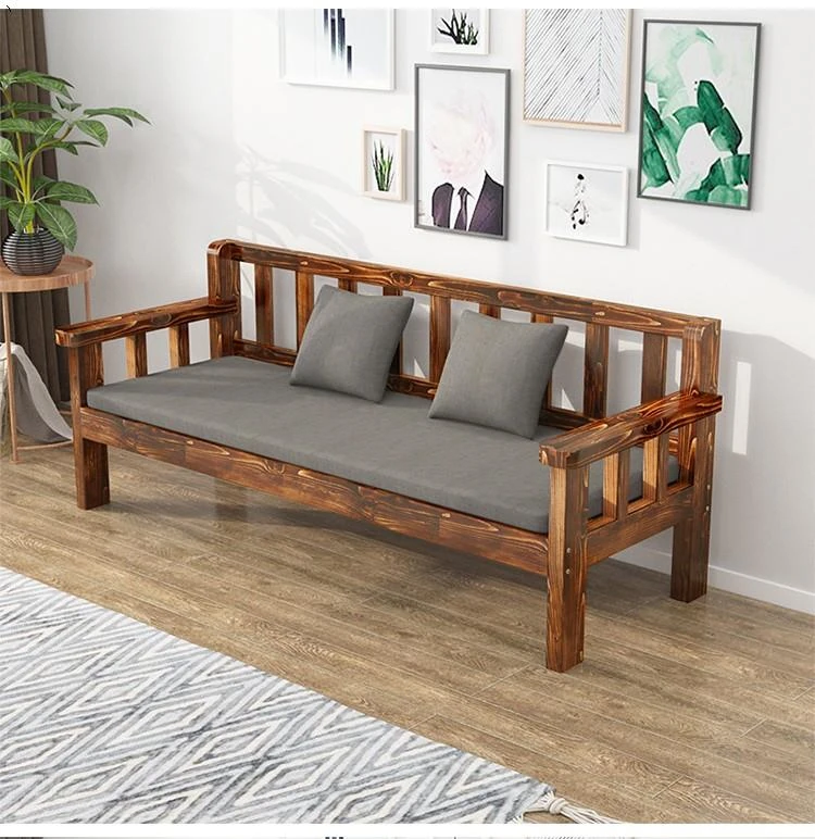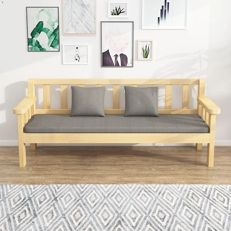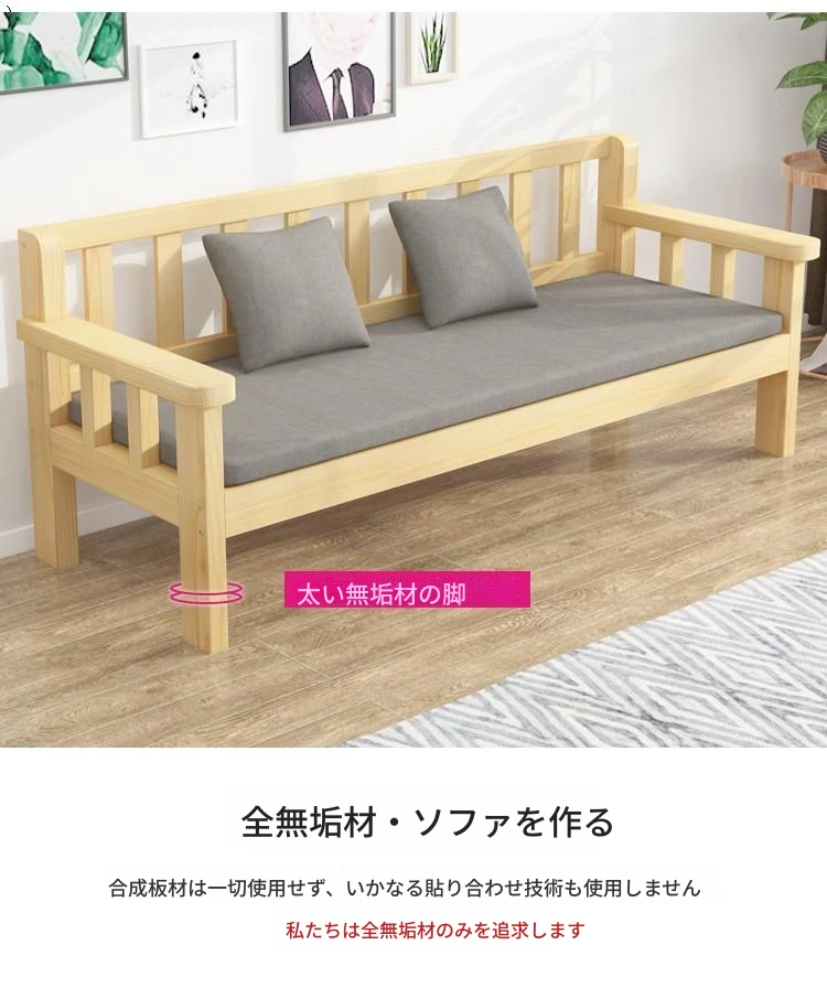 全実木製ソファセット|小型リビングに最適な新中式3人掛けエコノミーウッドソファ|天然木の温もりで心地よい空間を演出!