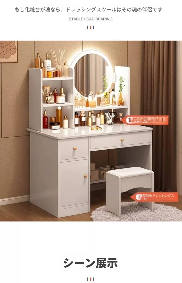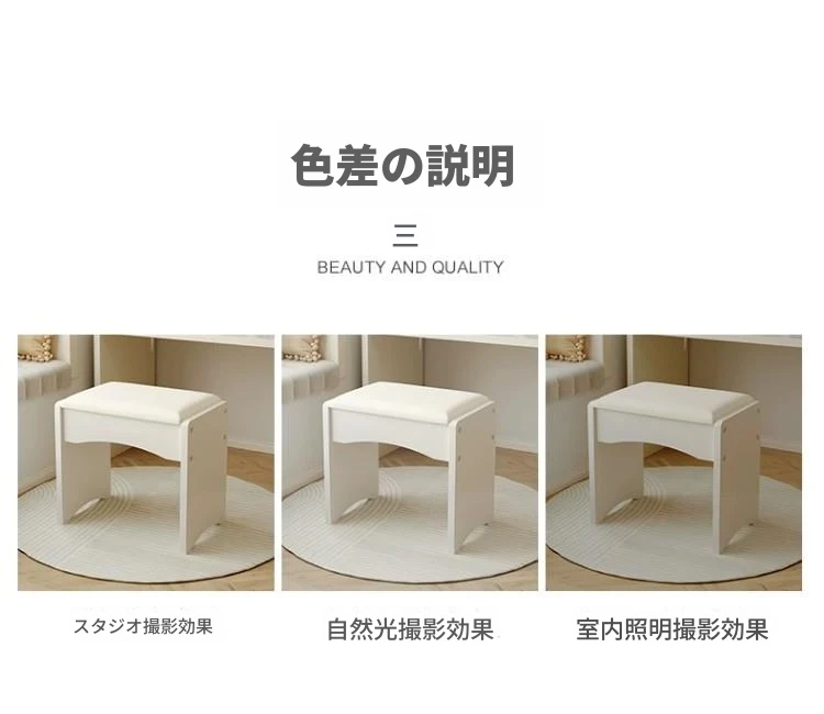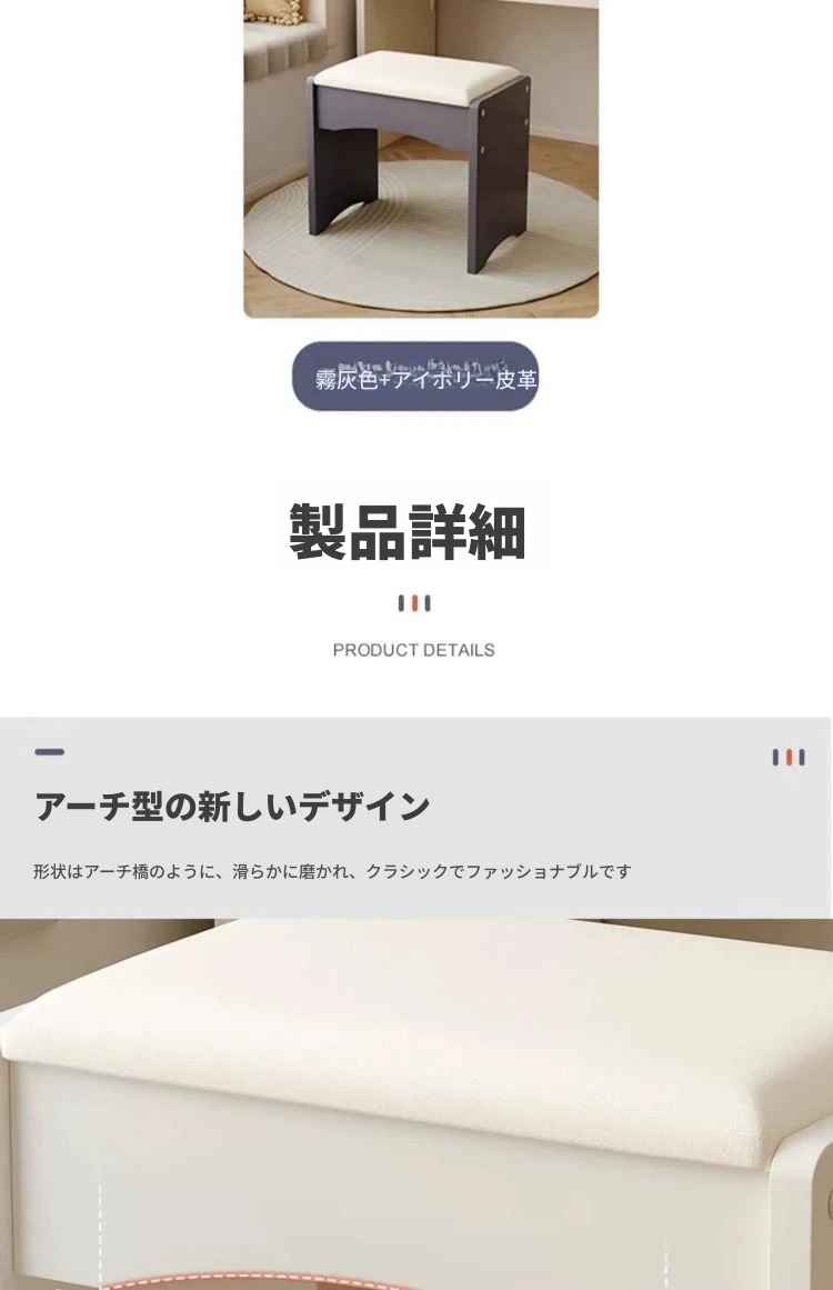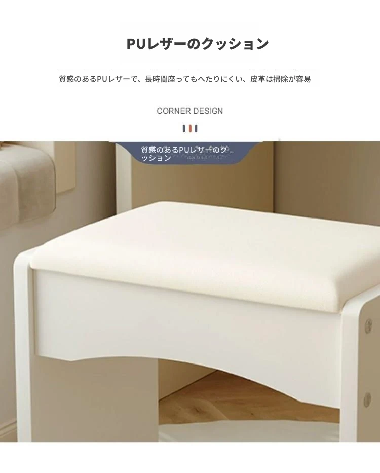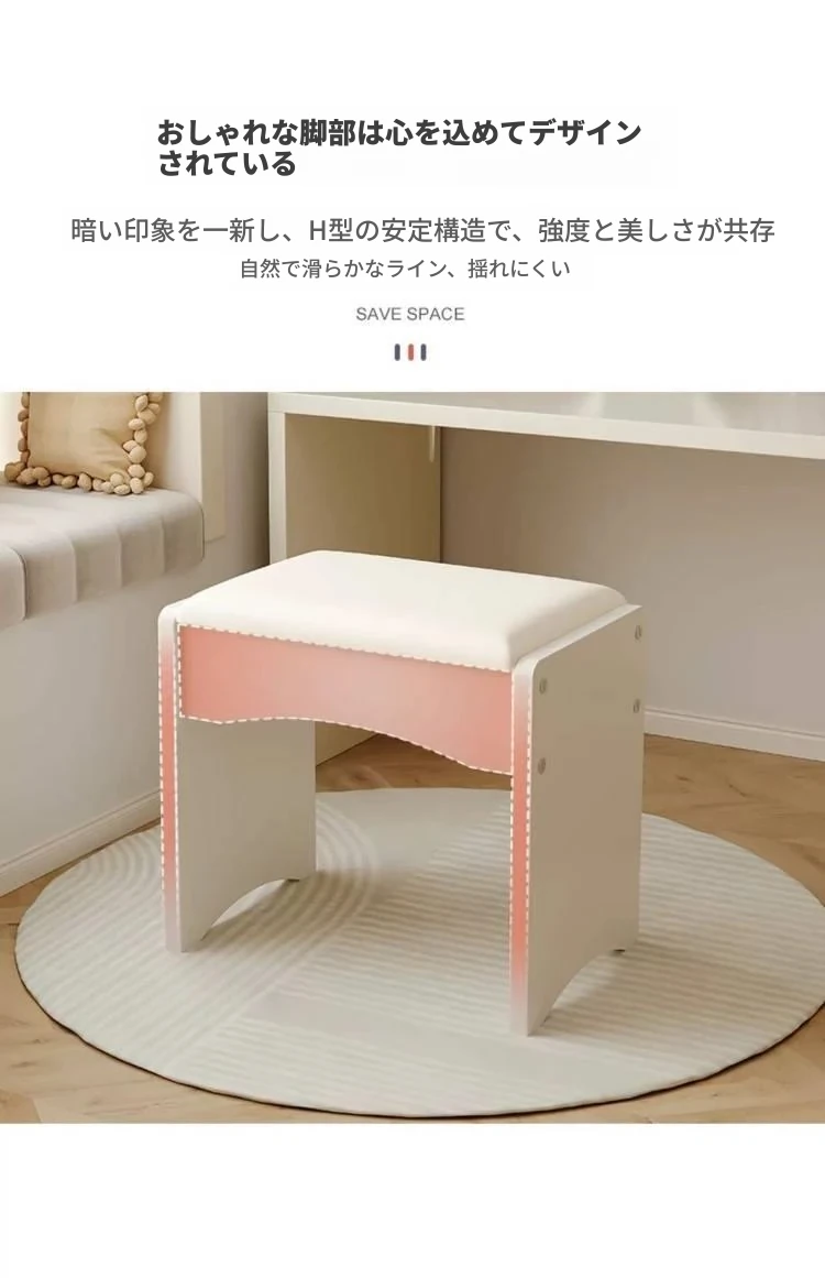 高級感あふれる化粧台椅子|女性にぴったりな軽やかなデザイン|主寝室や寮にも最適|美容・ネイル作業に最適な化粧椅子