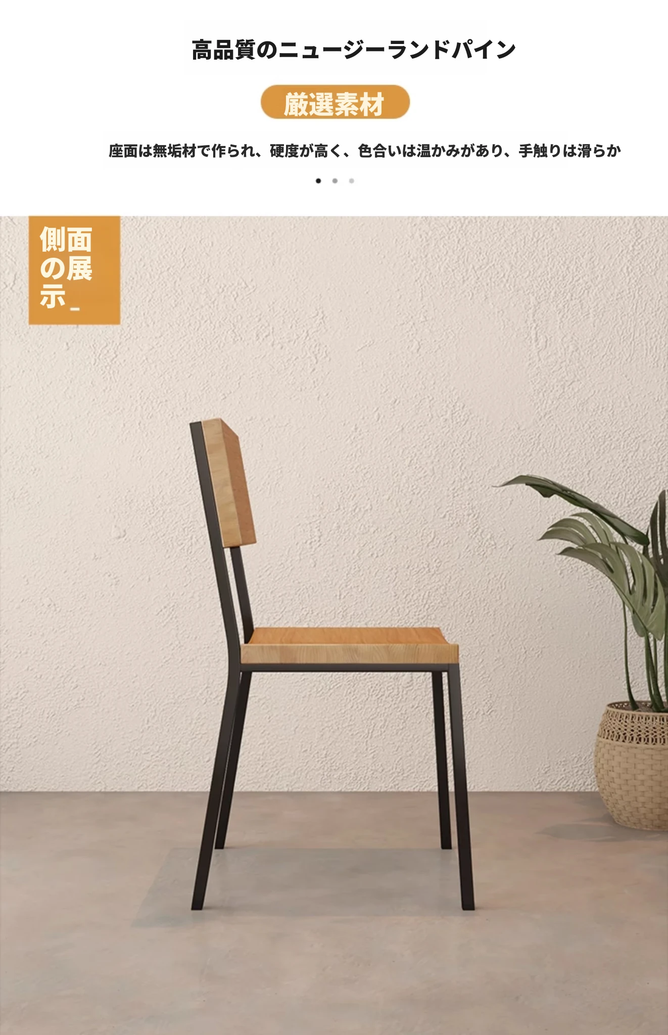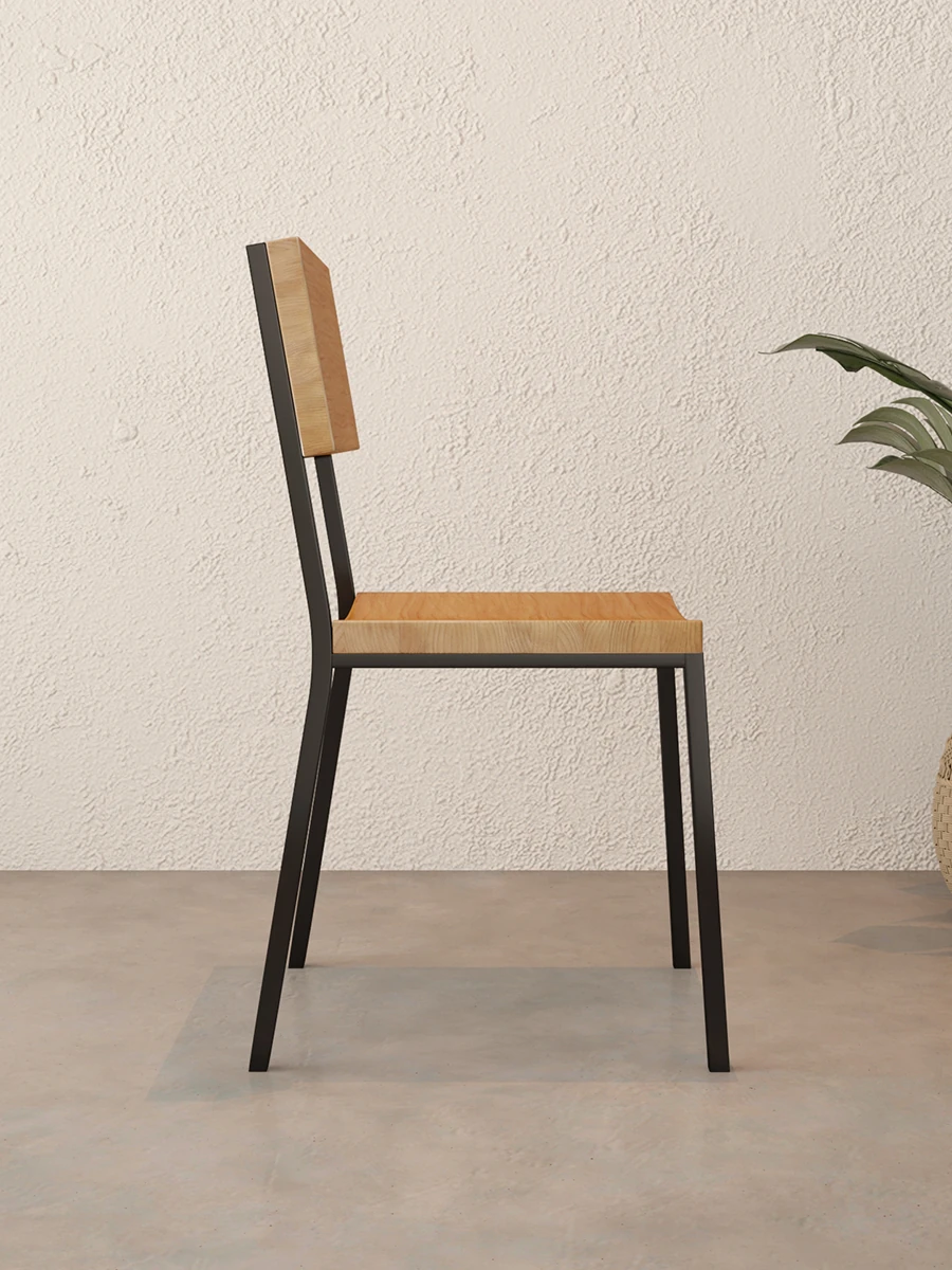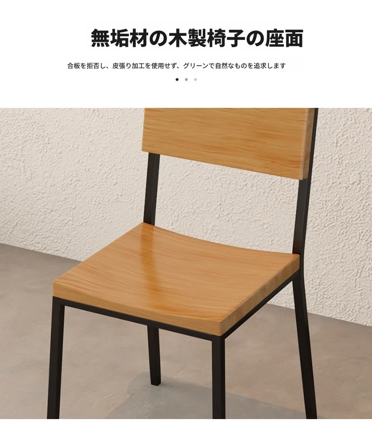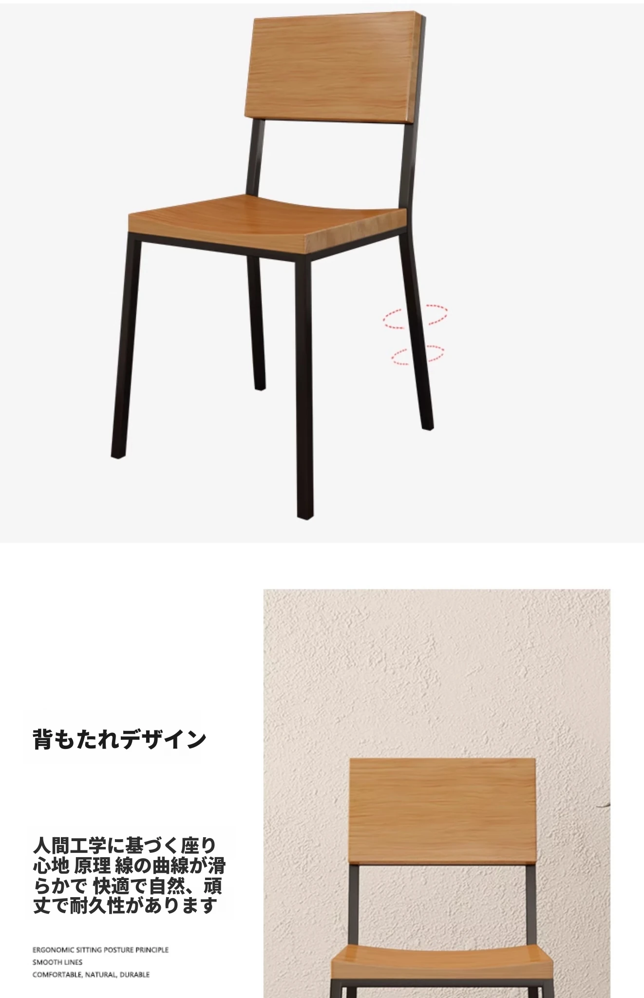 シンプルでモダンな背もたれ付きチェア|カフェやティーショップに最適!鉄製×無垢材のコンビネーションで、スタイリッシュなデザイン。快適な硬めの座り心地で、リラックスしたひとときを提供します!