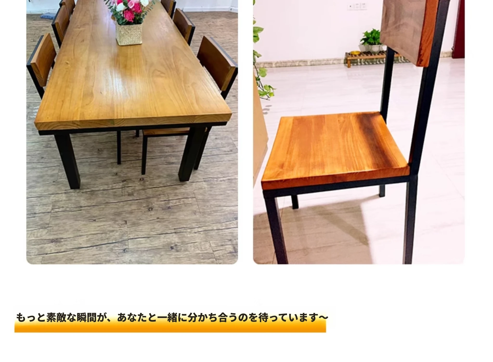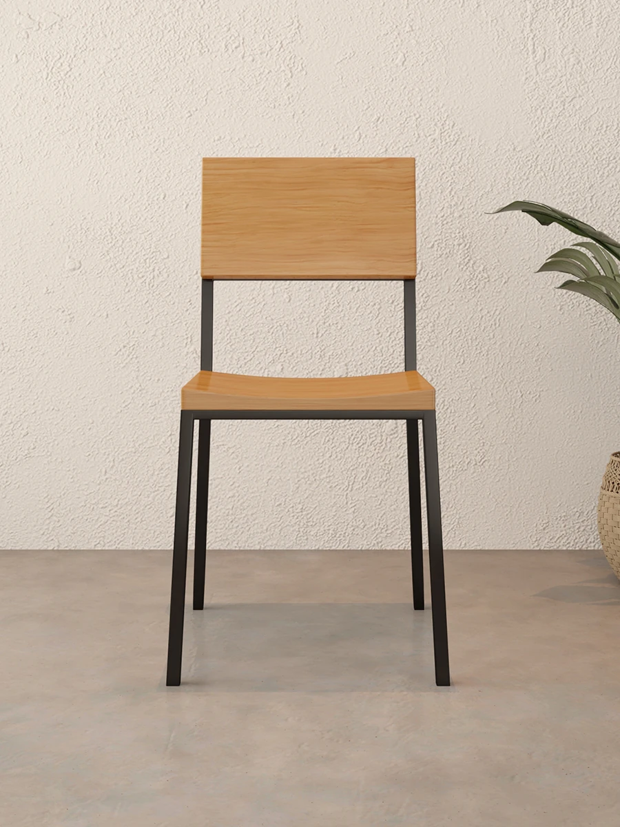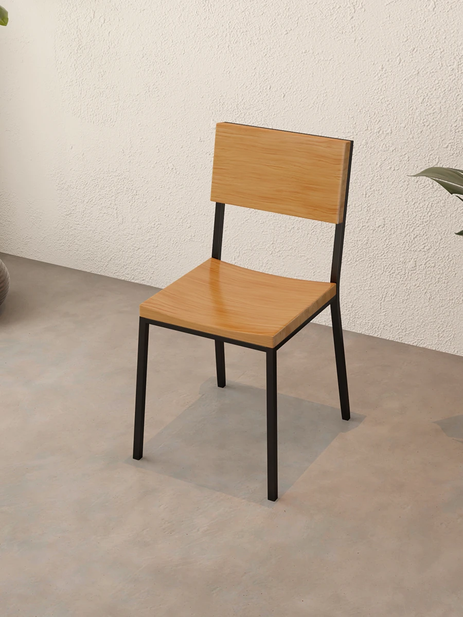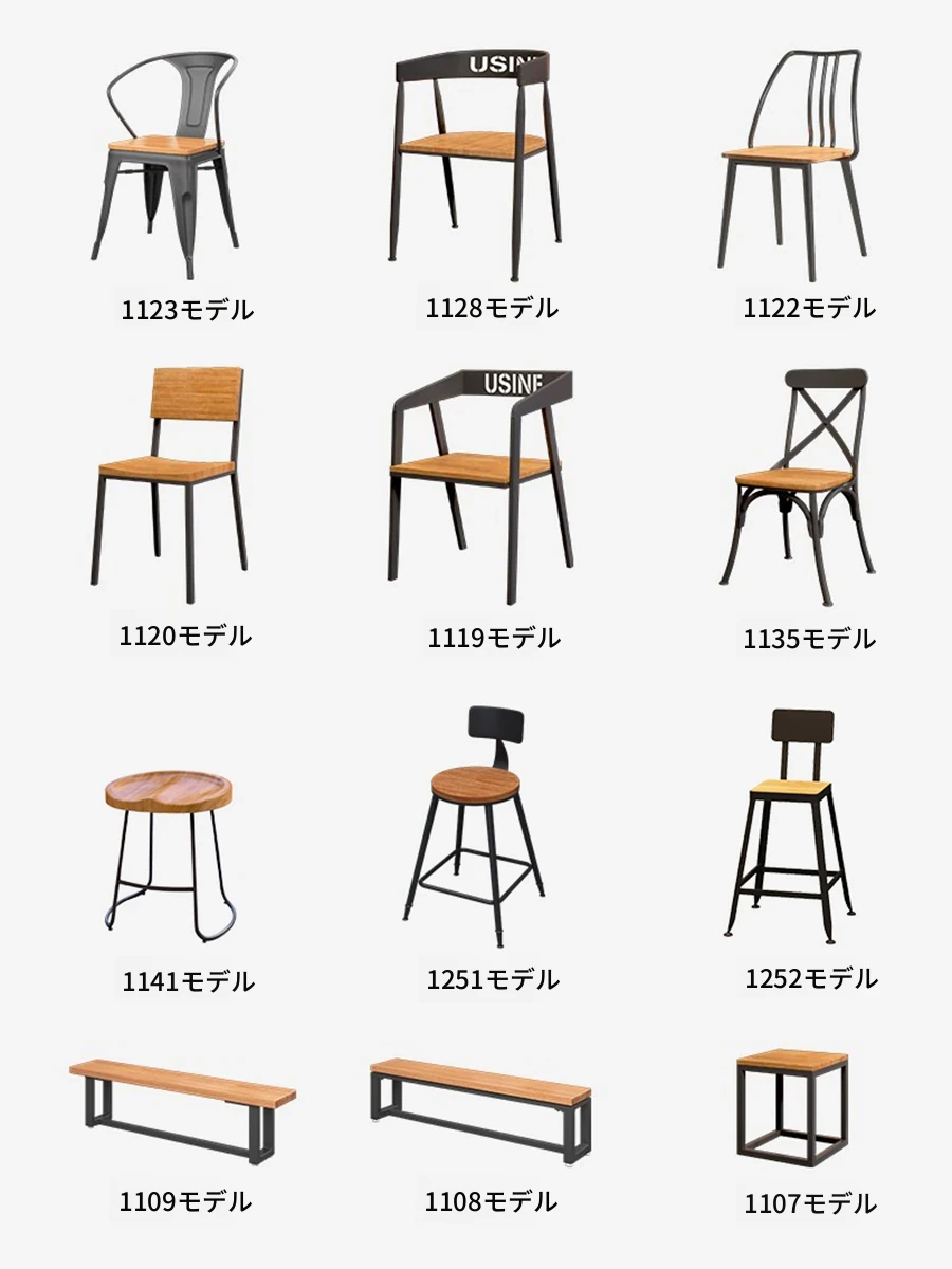 シンプルでモダンな背もたれ付きチェア|カフェやティーショップに最適!鉄製×無垢材のコンビネーションで、スタイリッシュなデザイン。快適な硬めの座り心地で、リラックスしたひとときを提供します!