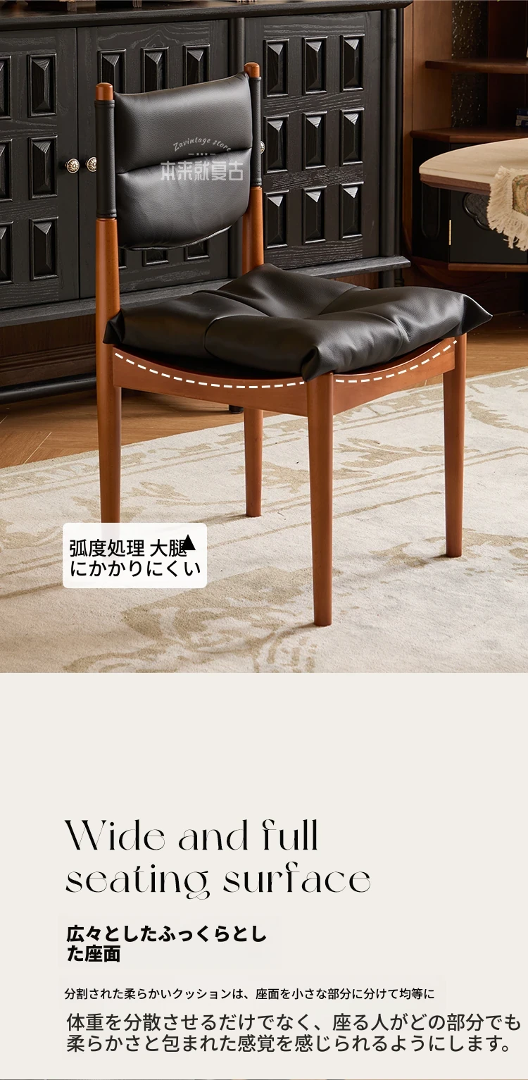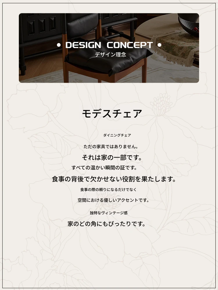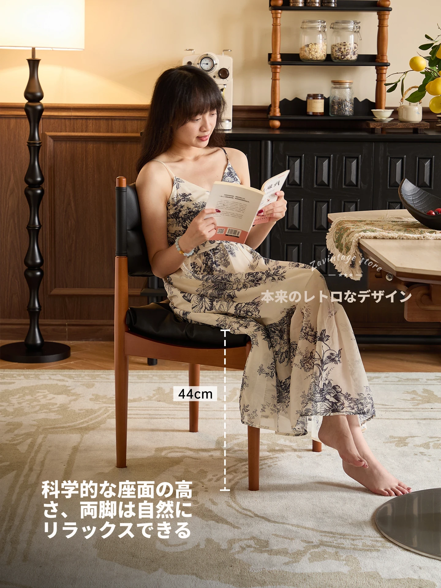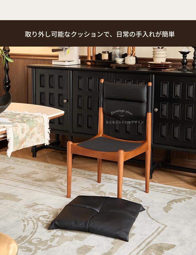 レトロな魅力満載!フレンチヴィンテージデザインのモダスチェア。高品質の無垢材と柔らかいクッション付き背もたれで、快適な座り心地を実現。リラックスできるダイニングチェアとしても最適です。