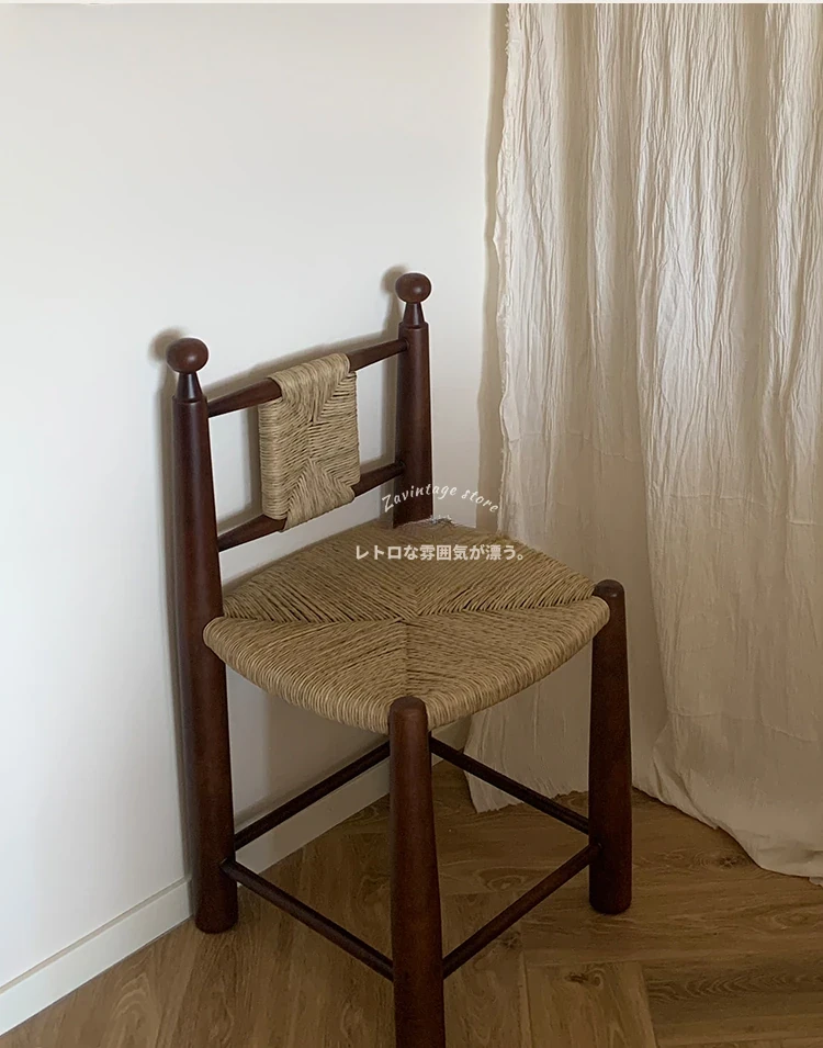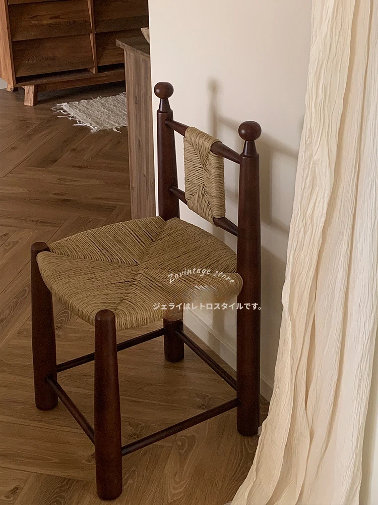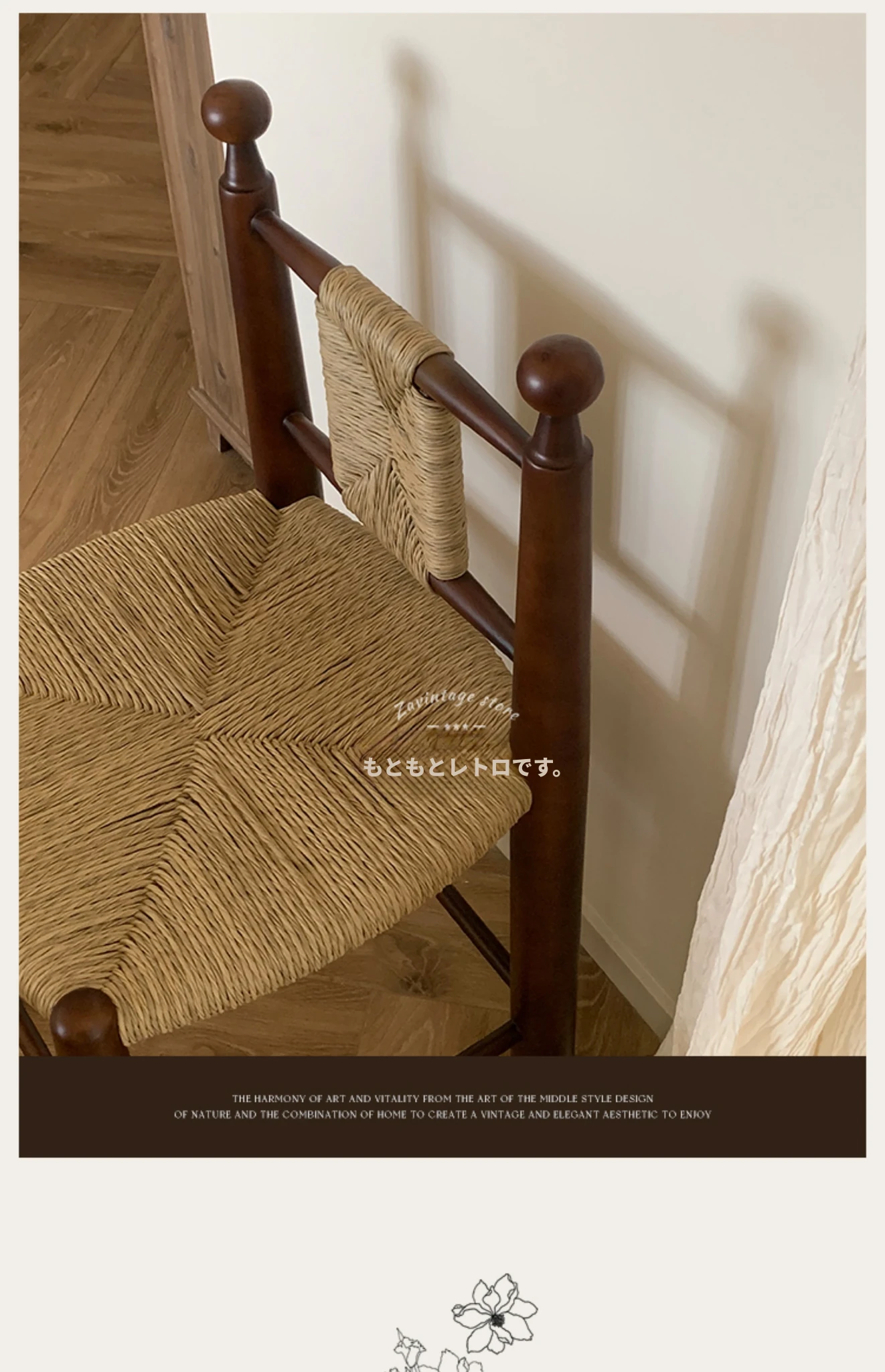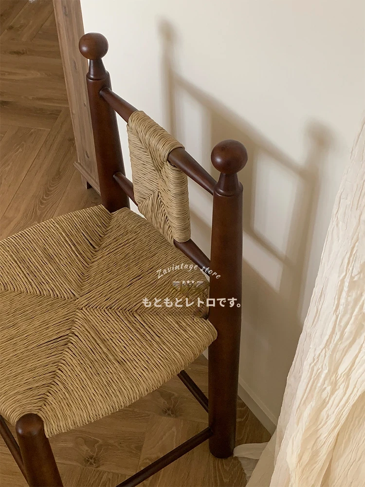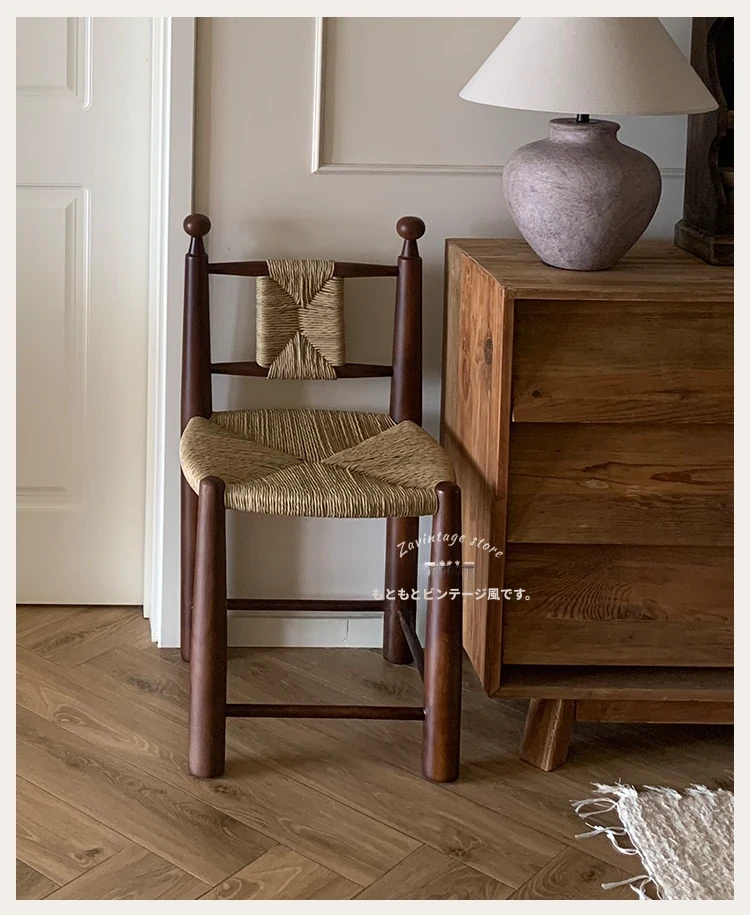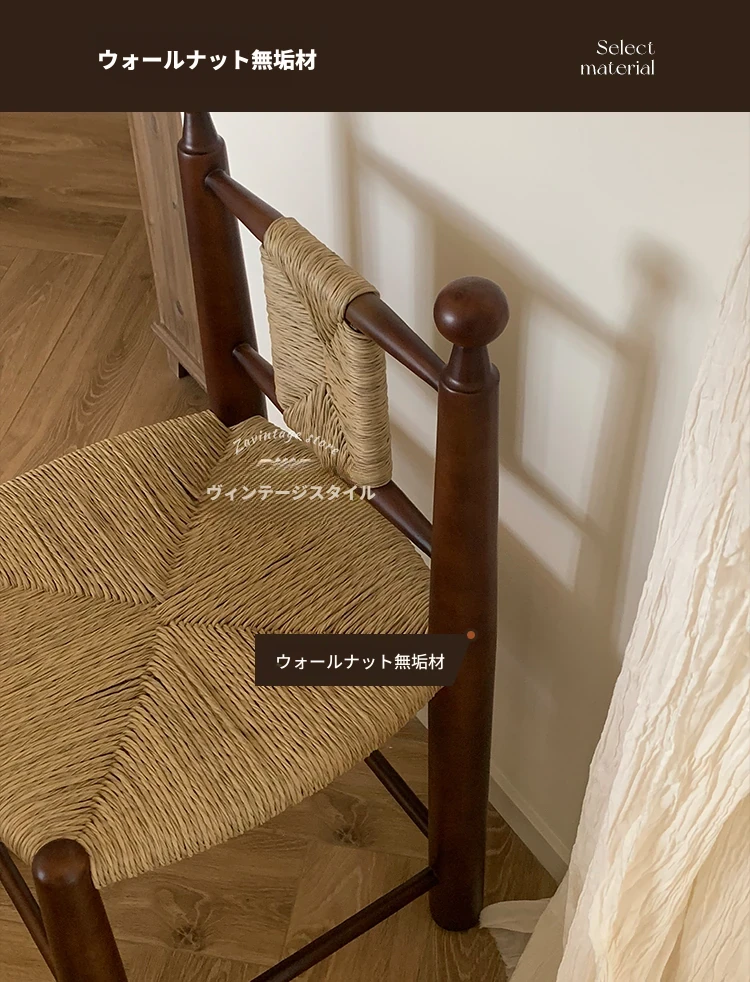 ヴィンテージ風のプリンセスチェア|フレンチスタイルの無垢材とラタン製ダイニングチェア|古風な草編みのデスクやリラックスチェアに最適!優雅で魅力的なインテリアを演出します。