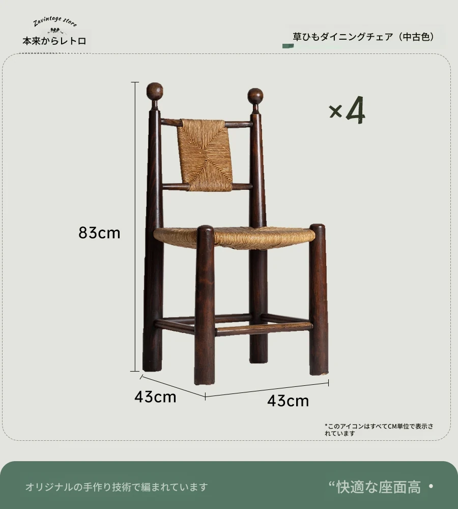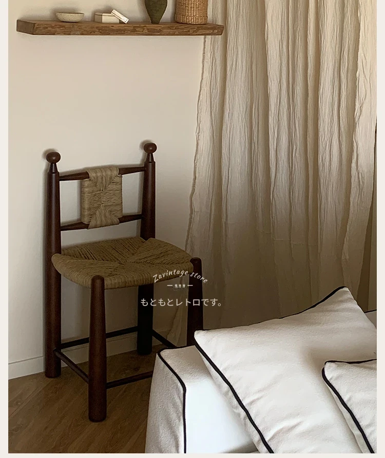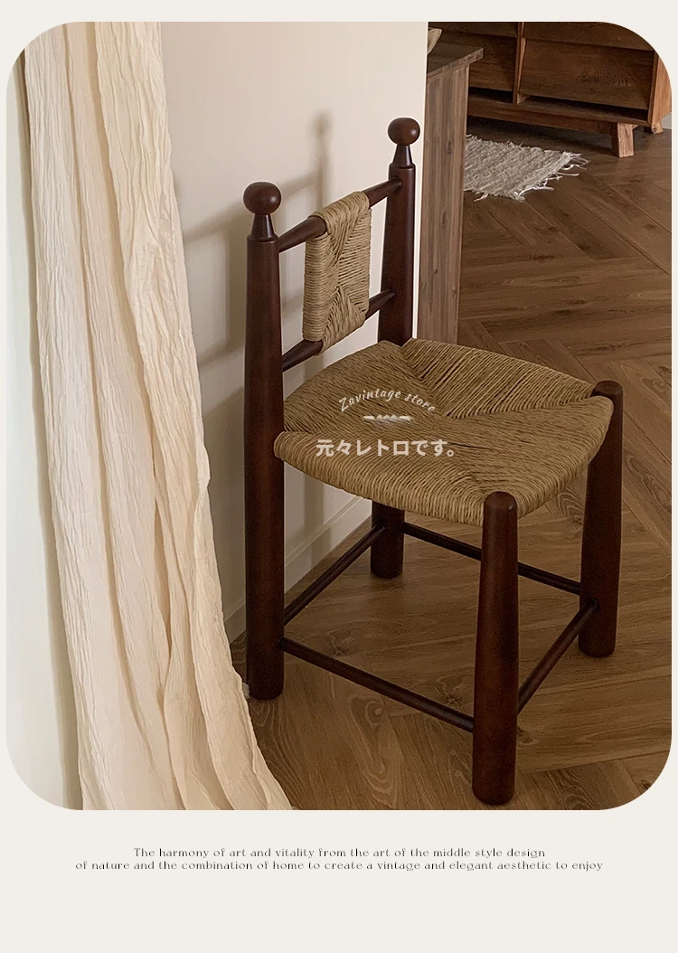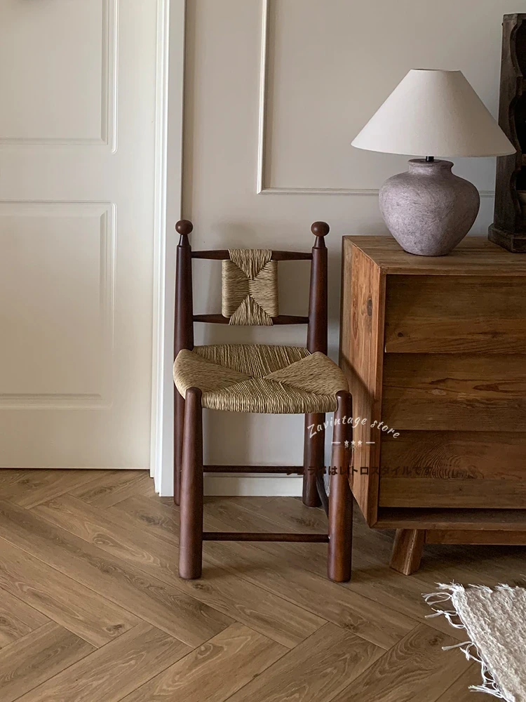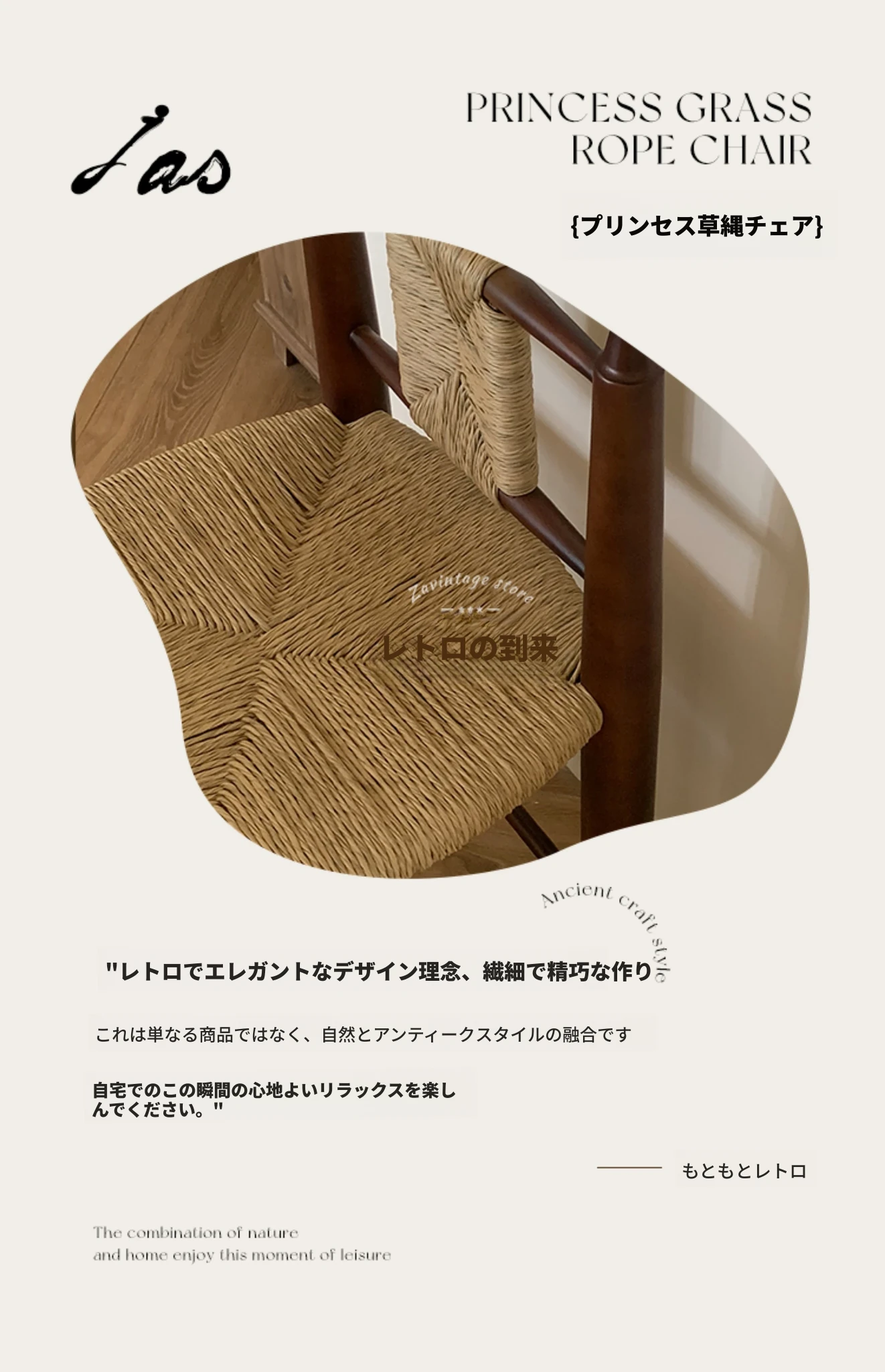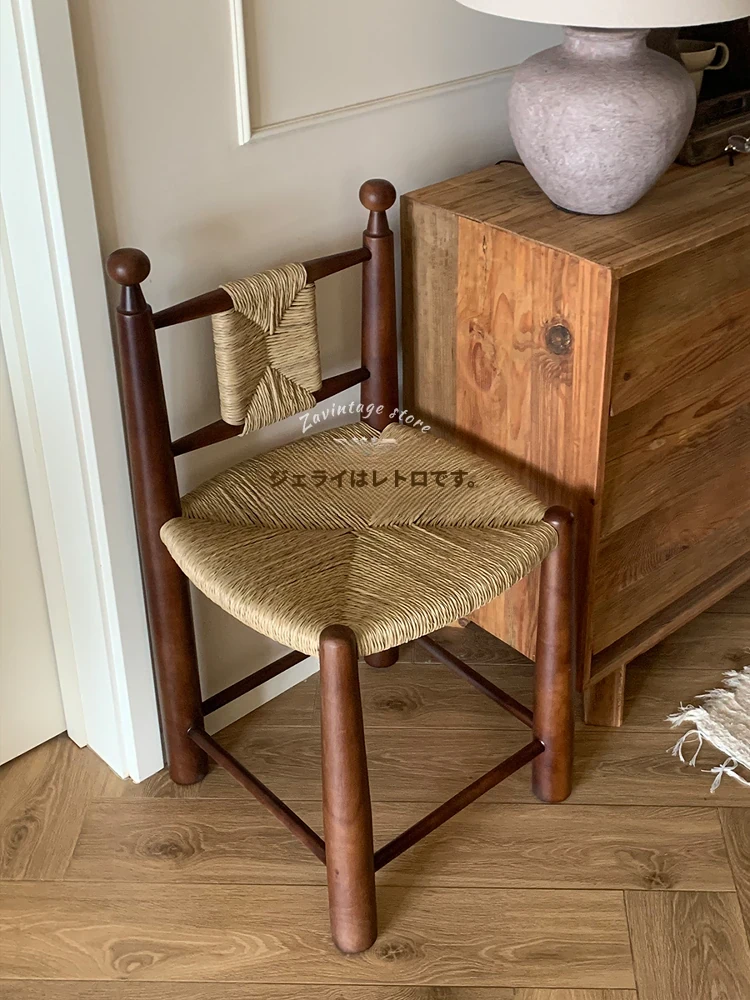 ヴィンテージ風のプリンセスチェア|フレンチスタイルの無垢材とラタン製ダイニングチェア|古風な草編みのデスクやリラックスチェアに最適!優雅で魅力的なインテリアを演出します。