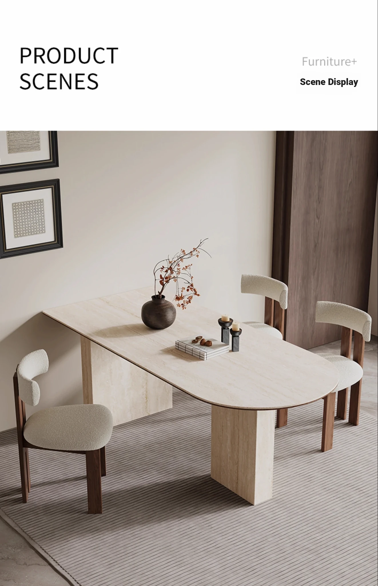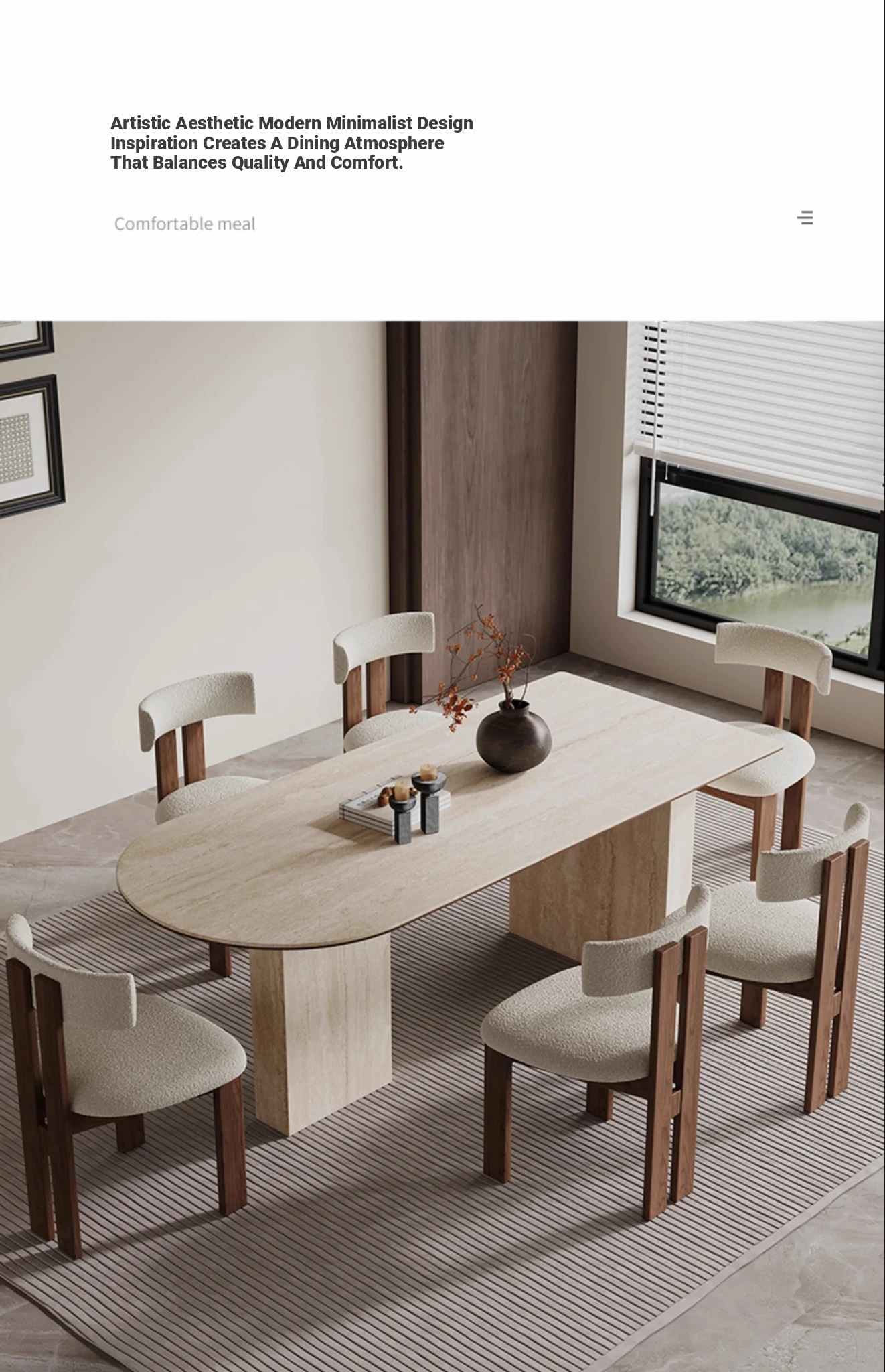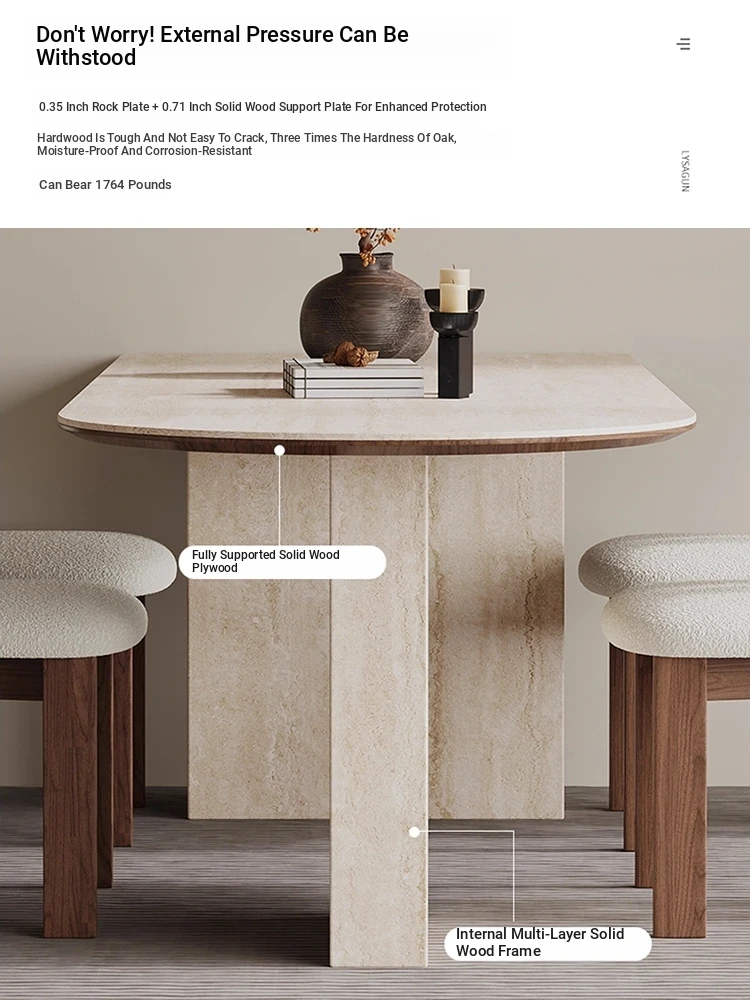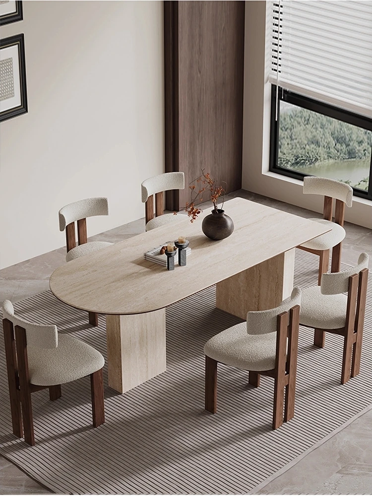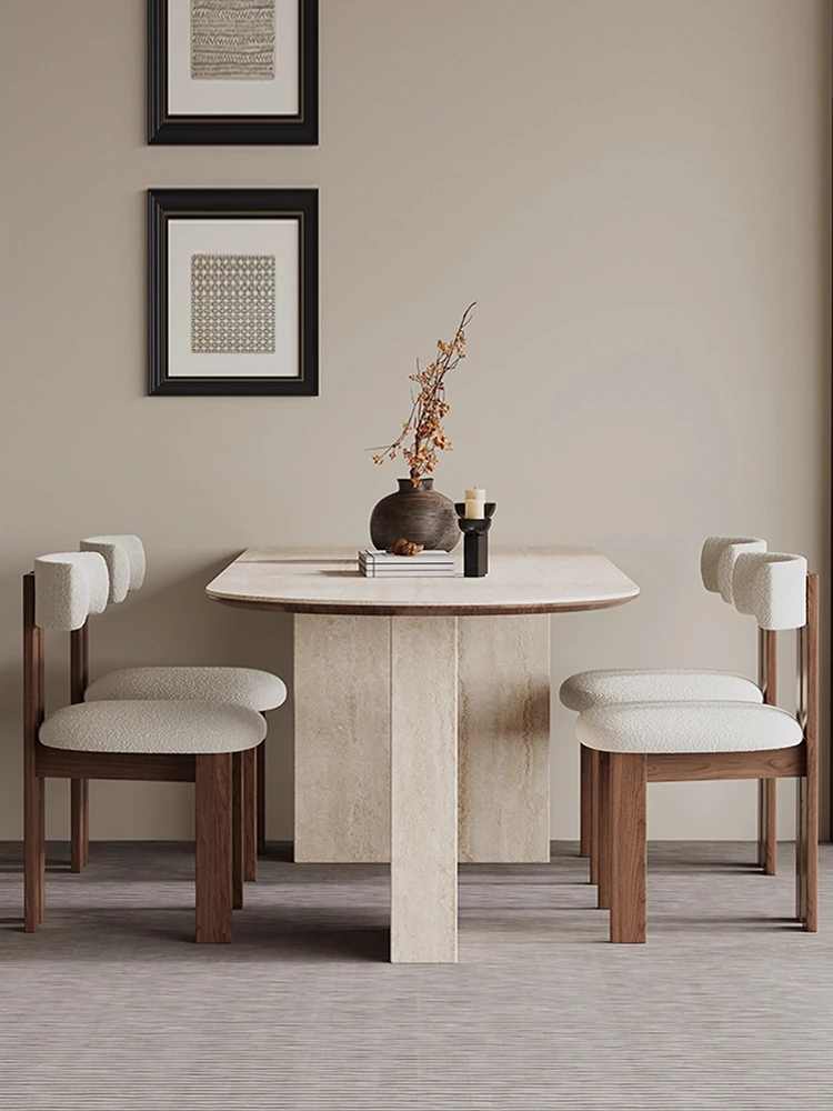 Wabi-Sabi Style Half-Round Stone Dining Table Set - Creative French Vintage Design for Home, Includes Designer Chairs - Perfect for Elegant Dining Experiences